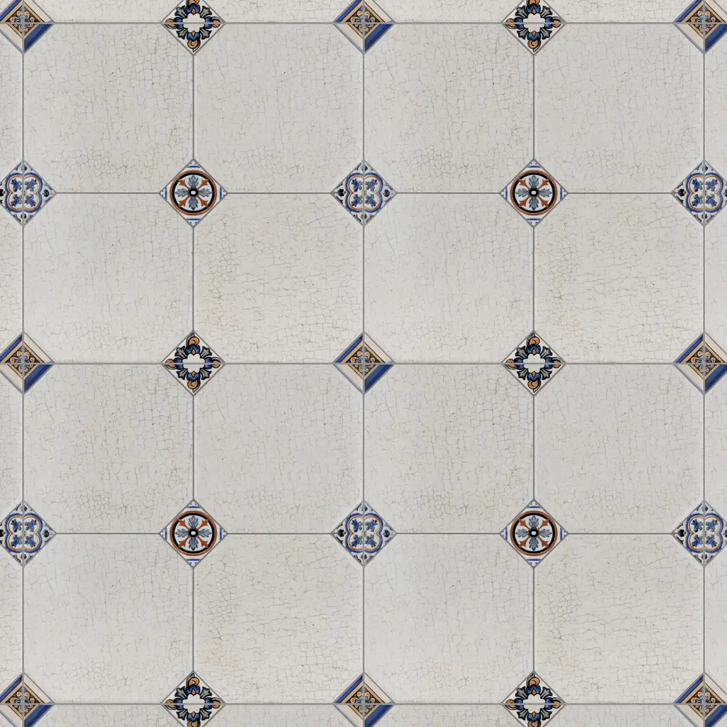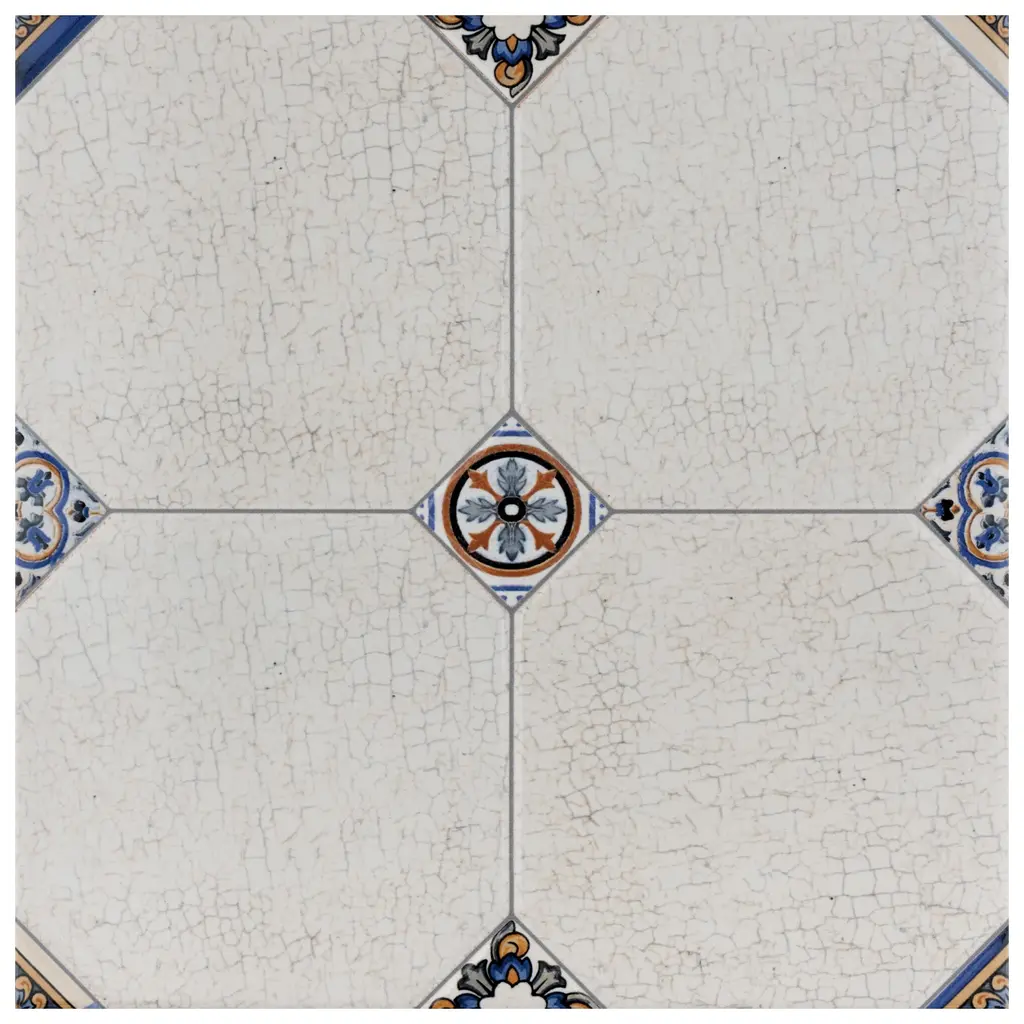 Reflecting traditional Spanish influences, our Manises Jet Blanco Porcelain Floor and Wall Tile mimics the appearance of old-world elegance. Complete with a crackle glaze, this tile offers a worn look accented with geometric designs that gives your space a truly authentic feel. With tones of blue, orange and yellow on a muted white background, it is a perfect addiction to any indoor or outdoor installation. Tile is the better choice for your space. This tile is made from natural ingredients, making it a healthy choice as it is free from allergens, VOCs, formaldehyde and PVC