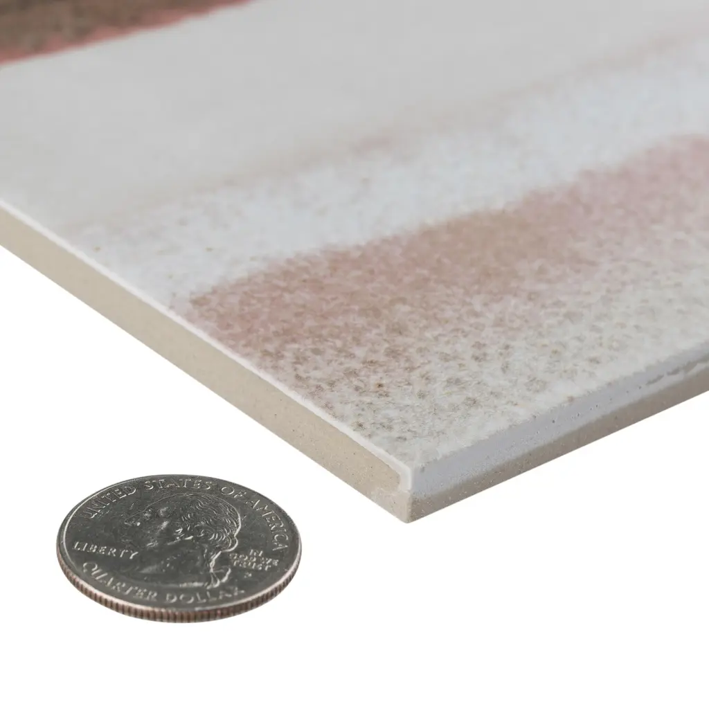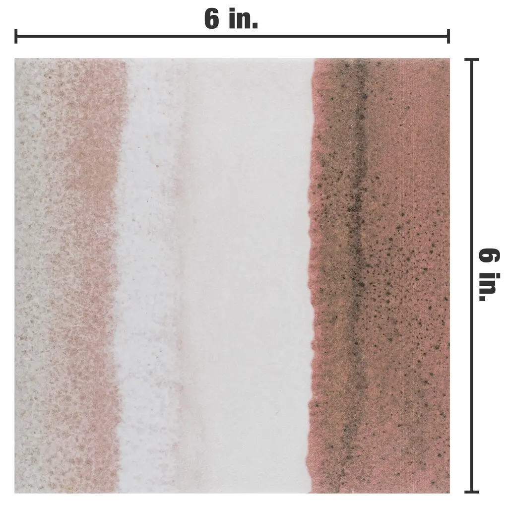 Reinterpreting the beauty of land and sea from an artist's viewpoint, our Matter Canvas Bone Red Porcelain Floor and Wall Tile offers a highly personal and unique view of nature's most beautiful landscapes. This square tile features brushstroke patterns in soft beige, grey, white, and rust red tones that echo the look and feel of sandy beaches, rolling waves and endless horizons at sunset. As a result of refined digital inkjet techniques and color blending, this tile offers exquisite depth and dimension that is further enhanced by its textured, mixed finish surface. Available in thirty print variations that are randomly distributed throughout each case, this tile offers a truly one-of-a-kind look. Its impervious, frost-resistant, and durable features make it an ideal choice for both indoor and outdoor commercial and residential installations including kitchens, bathrooms, backsplashes, showers, and pools. This tile is an ideal choice on its own or paired with other products in our Matter Collection to create a customized installation. Tile is the better choice for your space. This tile is made from natural ingredients, making it a healthy choice as it is free from allergens, VOCs, formaldehyde, and PVC. 6.5 square feet, 25 pieces per case. Case weight is 22.5 lbs. Grade 1, first-quality porcelain tile for floor and wall use 6 in. width x 6 in. length x 0.31 in. thick Glazed, slightly textured finish with a mixed finish and random variation in tone PEI Rating IV has high resistance to abrasion and is suitable for heavy-duty residential and commercial kitchens, hotels, exhibition and sales rooms with some dirt conditions Impervious tiles have a water absorption of less than 0.5% for indoor and outdoor use and are frost resistant This tile is ADA approved for slip resistance with a DCOF value of 0.42 or higher. Completely frost resistant for indoor or outdoor applications; use a latex-modified thinset for acceptable bond strength Please note: A sample of this product may be a partial piece cut from the full size tile in order to provide an affordable and convenient way for customers to judge the quality and finish of this item. Samples are not returnable.