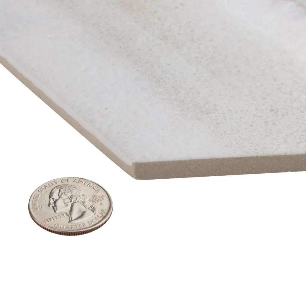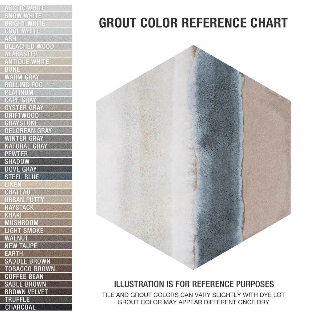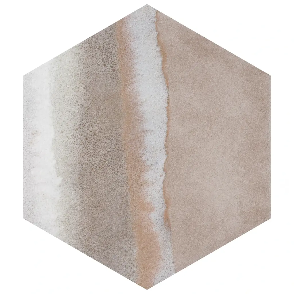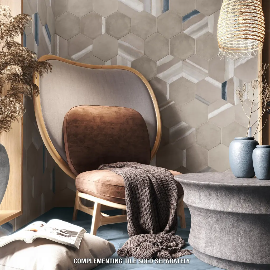 Reinterpreting the beauty of land and sea from an artist's viewpoint, our Matter Canvas Hex Taupe Blue Porcelain Floor and Wall Tile offers a highly personal and unique view of nature's most beautiful landscapes. This hexagon tile features brushstroke patterns in soft pink, beige, blue and white tones that echo the look and feel of sandy beaches, rolling waves and endless horizons. As a result of refined digital inkjet techniques and color blending, this tile offers exquisite depth and dimension that is further enhanced by its textured, mixed finish surface. Available in twenty-six print variations that are randomly distributed throughout each case, this tile offers a truly one-of-a-kind look. Its impervious, frost-resistant, and durable features make it an ideal choice for both indoor and outdoor commercial and residential installations including kitchens, bathrooms, backsplashes, showers, and pools. This tile is an ideal choice on its own or paired with other products in our Matter Collection to create a customized installation. Tile is the better choice for your space. This tile is made from natural ingredients, making it a healthy choice as it is free from allergens, VOCs, formaldehyde, and PVC. 3.8 square feet, 10 pieces per case. Case weight is 14.77 lbs. Grade 1, first-quality porcelain tile for floor and wall use 7.88 in. width x 9 in. length x 0.31 in. thick Glazed, slightly textured finish with a mixed finish and random variation in tone PEI Rating V is suitable for both residential and high-traffic commercial use including extra heavy-duty floors and areas subject to severe pedestrian traffic over sustained periods with some dirt such as shopping centers, airport concourses, public walkways and industrial applications Impervious tiles have a water absorption of less than 0.5% for indoor and outdoor use and are frost resistant This tile is ADA approved for slip resistance with a DCOF value of 0.42 or higher. Completely frost resistant for indoor or outdoor applications; use a latex-modified thinset for acceptable bond strength Please note: A sample of this product may be a partial piece cut from the full size tile in order to provide an affordable and convenient way for customers to judge the quality and finish of this item. Samples are not returnable.