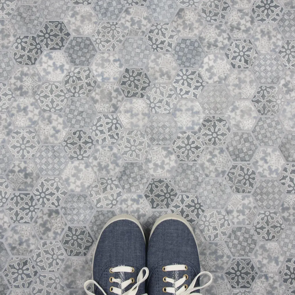 Offering a mosaic look, our Medley 2 in. Hex Slate Blue Porcelain Floor and Wall Tile features a slightly textured, matte finish, providing decorative appeal that adapts to a variety of stylistic contexts. With its impervious, frost-resistant features, this blue hexagon mosaic is an ideal selection for both indoor and outdoor commercial and residential installations, including kitchens, bathrooms, backsplashes, showers, hallways, entryways, patios and fireplace facades. This tile is a perfect choice on its own or paired with other products in the Medley Collection. Tile is the better choice for your space! 10.0 square feet, 10 pieces per case. Case weight is 25.33 lbs. Grade 1, first-quality porcelain tile for floor and wall use 11.13 in. width x 12.63 in. length x 0.27 in. thick mesh-mounted mosaic Glazed, slightly textured finish with a low sheen and slight variation in tone PEI Rating IV has high resistance to abrasion and is suitable for heavy-duty residential and commercial kitchens, hotels, exhibition and sales rooms with some dirt conditions Impervious tiles have a water absorption of less than 0.5% for indoor and outdoor use and are frost resistant This tile has a COF wet rating less than or equal to 0.50 and is considered to have a marginally low skid resistance. This tile is not ADA approved for slip resistance. Completely frost resistant for indoor or outdoor applications; use a latex-modified thinset for acceptable bond strength Please note: A sample of this product may be a partial piece cut from the full size tile in order to provide an affordable and convenient way for customers to judge the quality and finish of this item. Samples are not returnable.