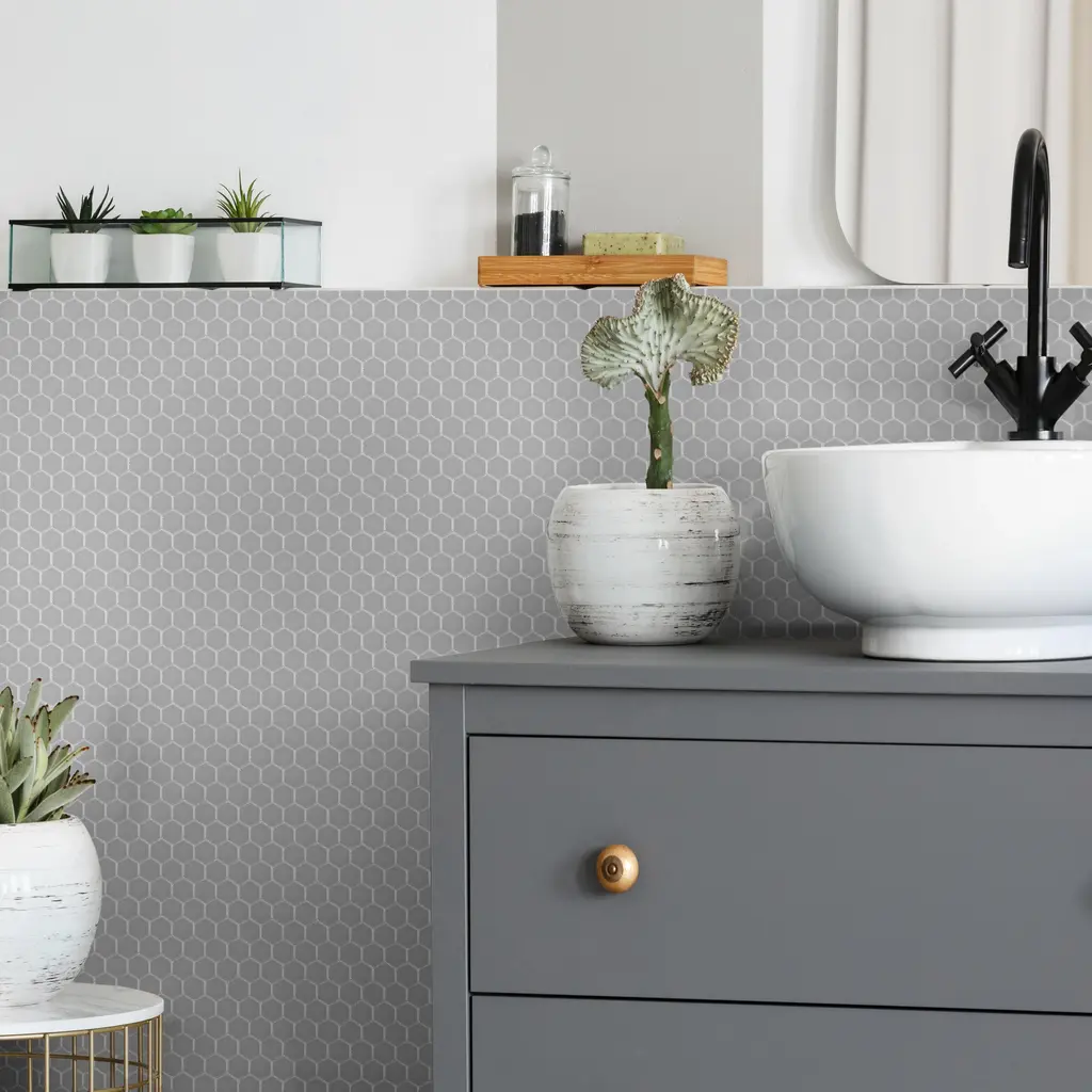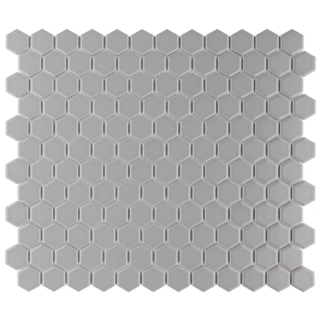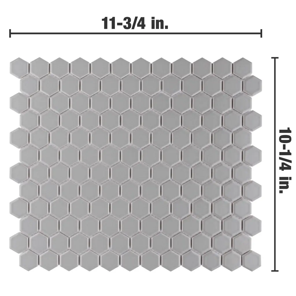 Transform your space into a tribute to retro design with our Metro Hex Matte Light Grey Porcelain Floor and Wall Mosaic Tile. As a modern deviation from the classic mosaic, this fresh option is a throwback to traditional retro design with a contemporary feel. Matte light grey hexagons are arranged on an interlocking mesh to create a seamless installation. This minimalistic geometric porcelain mosaic is unique yet simplistic enough to integrate into any design, ranging from traditional style renovations to modern home projects. Its ADA-compliant, impervious and frost resistant features make this an ideal tile for indoor and outdoor use, including backsplashes, bathrooms, showers, kitchens and fireplace facades. Tile is the better choice for your space. This tile is made from natural ingredients, making it a healthy choice as it is free from allergens, VOCs, formaldehyde and PVC.