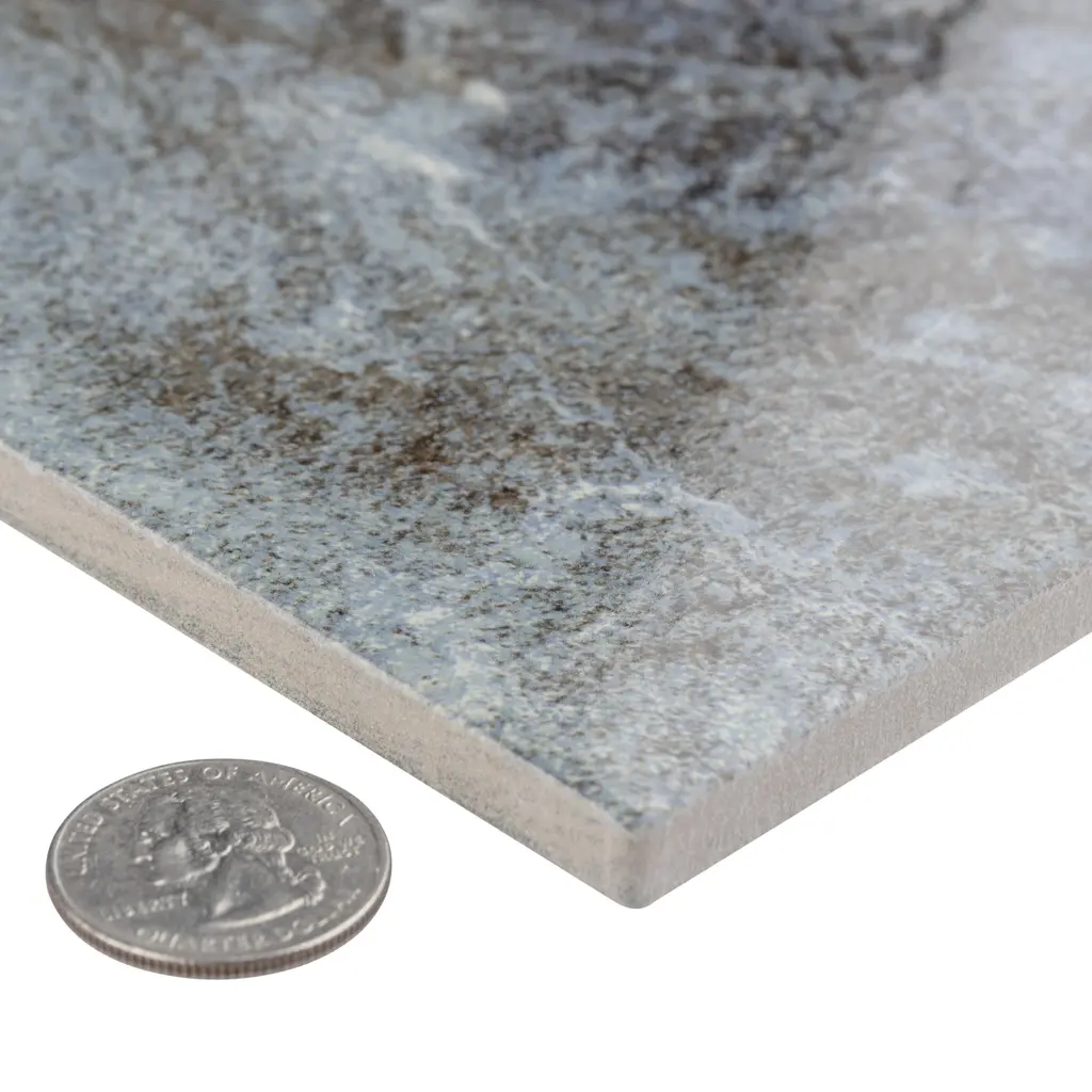 Capture the tranquility of coastal waters with our Ocean Coral Bay Porcelain Floor and Wall Tile. Featuring blue and brown tones over an undulated surface with a glossy finish, this square tile evokes the dynamic appearance of ever-moving ocean waters. Its impervious and frost-resistant features make this porcelain tile an ideal choice for indoor and outdoor floor and wall installations including, kitchens, backsplashes, bathrooms, showers, fireplace facades and patios. It is a perfect choice on its own or coordinated with other colors in our Ocean Collection. Tile is the better choice for your space. This tile is made from natural ingredients, making it a healthy choice as it is free from allergens, VOCs, formaldehyde and PVC. 8.32 square feet, 32 pieces per case. Case weight is 30.11 lbs. Grade 1, first-quality porcelain tile for floor and wall use 6 in. width x 6 in. length x 0.32 in. thick Glazed, slightly textured finish with a high sheen and moderate variation in tone PEI Rating IV has high resistance to abrasion and is suitable for heavy-duty residential and commercial kitchens, hotels, exhibition and sales rooms with some dirt conditions Impervious tiles have a water absorption of less than 0.5% for indoor and outdoor use and are frost resistant This tile is ADA approved for slip resistance with a DCOF value of 0.42 or higher. Completely frost resistant for indoor or outdoor applications; use a latex-modified thinset for acceptable bond strength Please note: Samples are not returnable