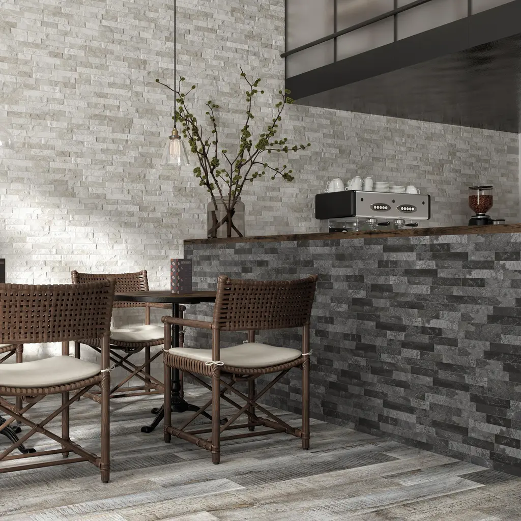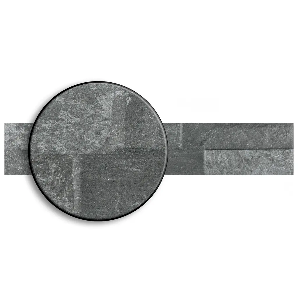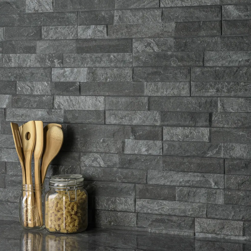 Through the realistic replication of natural stone, our Ordino Black Porcelain Subway Wall Tile transforms any space into a functional and stylish extension of nature. This enlarged rectangular wall tile features an off-set stacked stone pattern in varying shades of slate grey. With a textured three dimensional surface, this unique porcelain panel offers organic, rustic beauty. Available in twenty-four print variations that are randomly scattered throughout each case, the variation throughout each tile mimics an authentic stone appearance. Its impervious and frost-proof features make it an ideal choice for indoor and outdoor wall installations including kitchen backsplashes, shower walls, and fireplace facades. Tile is the better choice for your space. This tile is made from natural ingredients, making it a healthy choice as it is free from allergens, VOCs, formaldehyde and PVC.9.6 square feet, 24 pieces per case. Case weight is 35.27 lbs.Grade 1, first-quality porcelain tile for wall use3.25 in. width x 17.5 in. length x 0.34 in. thickGlazed, medium textured finish with a low sheen and uniform appearance in tonePEI Rating 0 is suitable for wall use onlyImpervious tiles have a water absorption of less than 0.5% for indoor and outdoor use and is frost resistantNo COF value available for this product - please refer to the PEI and DCOF ratings for product durability and resistanceCompletely frost resistant for indoor or outdoor applications; use a latex-modified thinset for acceptable bond strengthCommercial and residential usePlease note: A sample of this product may be a partial piece cut from the full size tile in order to provide an affordable and convenient way for customers to judge the quality and finish of this item. Samples are not returnable.