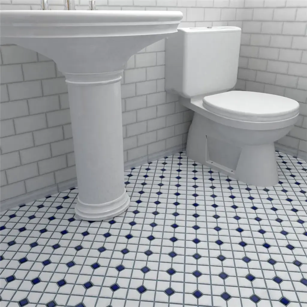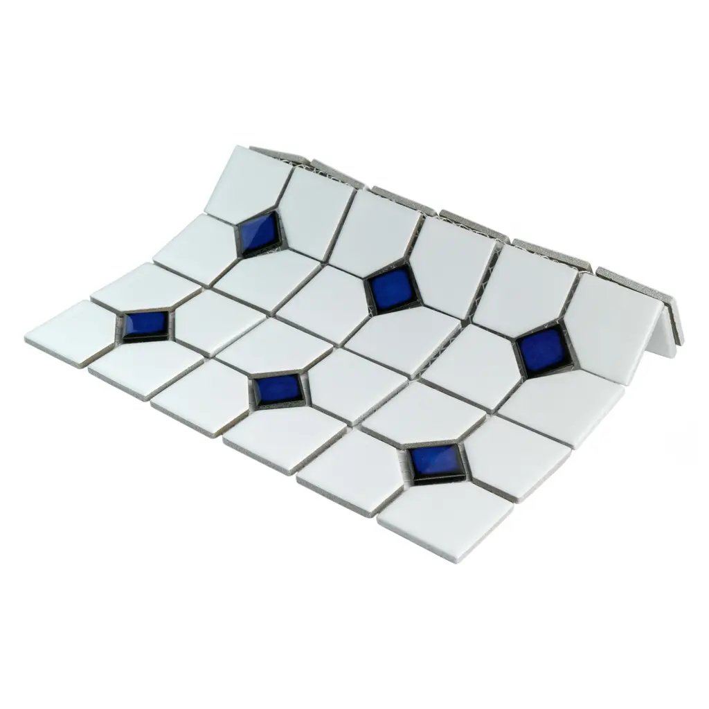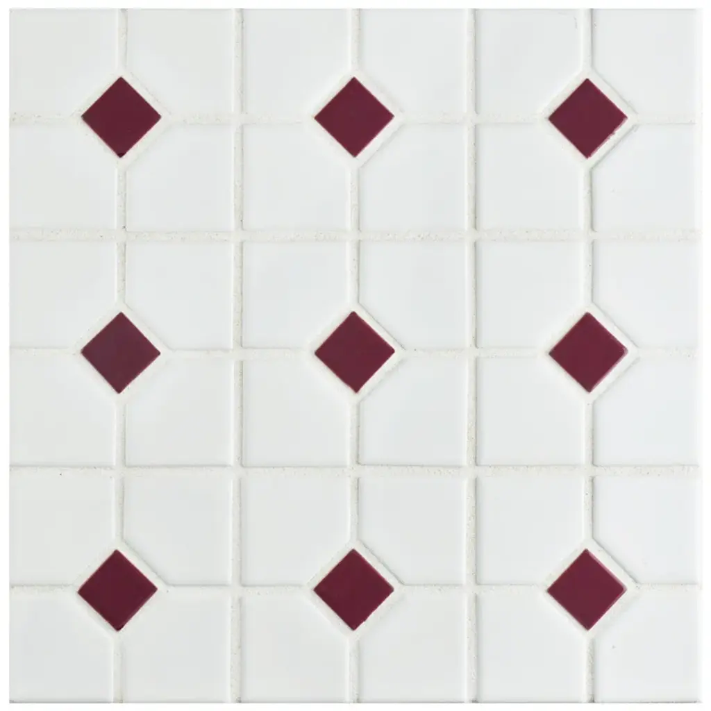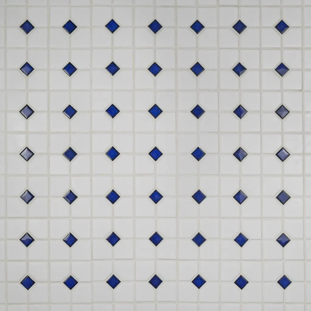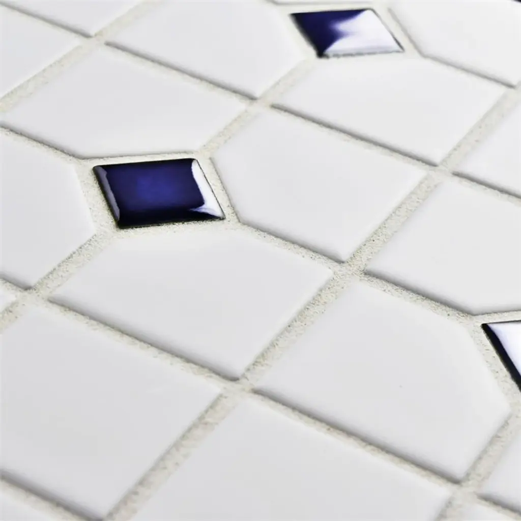 Our Oxford Matte White with Cobalt Dot Porcelain Mosaic Tile offers a traditional look that will fit within any design scheme. The soft matte finish on the white background and glossy finish on the cobalt blue diamonds exudes a classic look that never goes out of style. This mosaic tile has a mesh backing for easy installation. With a water absorption rating of less than 0.5%, this tile is a fit for any space including moisture-heavy or outdoor areas. 9.2 square feet, 10 pieces per case. Case weight is 19.16 lbs. Grade 1, first-quality porcelain tile for floor and wall use 11.38 in. width x 11.38 in. length x 0.23 in. thick mesh-mounted mosaic Glazed, mixed texture with a mixed finish and uniform appearance in tone PEI Rating III is suitable for medium-duty residential floors including kitchens, halls, corridors, balconies, terraces and areas used more often with normal footwear and small amounts of dirt Impervious tiles have a water absorption of less than 0.5% for indoor and outdoor use and are frost resistant This tile has a COF wet rating greater than 0.60 to 0.79 which is considered skid resistant for indoor and outdoor use. This tile is ADA approved for slip resistance. Completely frost resistant for indoor or outdoor applications; use a latex-modified thinset for acceptable bond strength Please note: A sample of this product may be a partial piece cut from the full size tile in order to provide an affordable and convenient way for customers to judge the quality and finish of this item. Samples are not returnable.