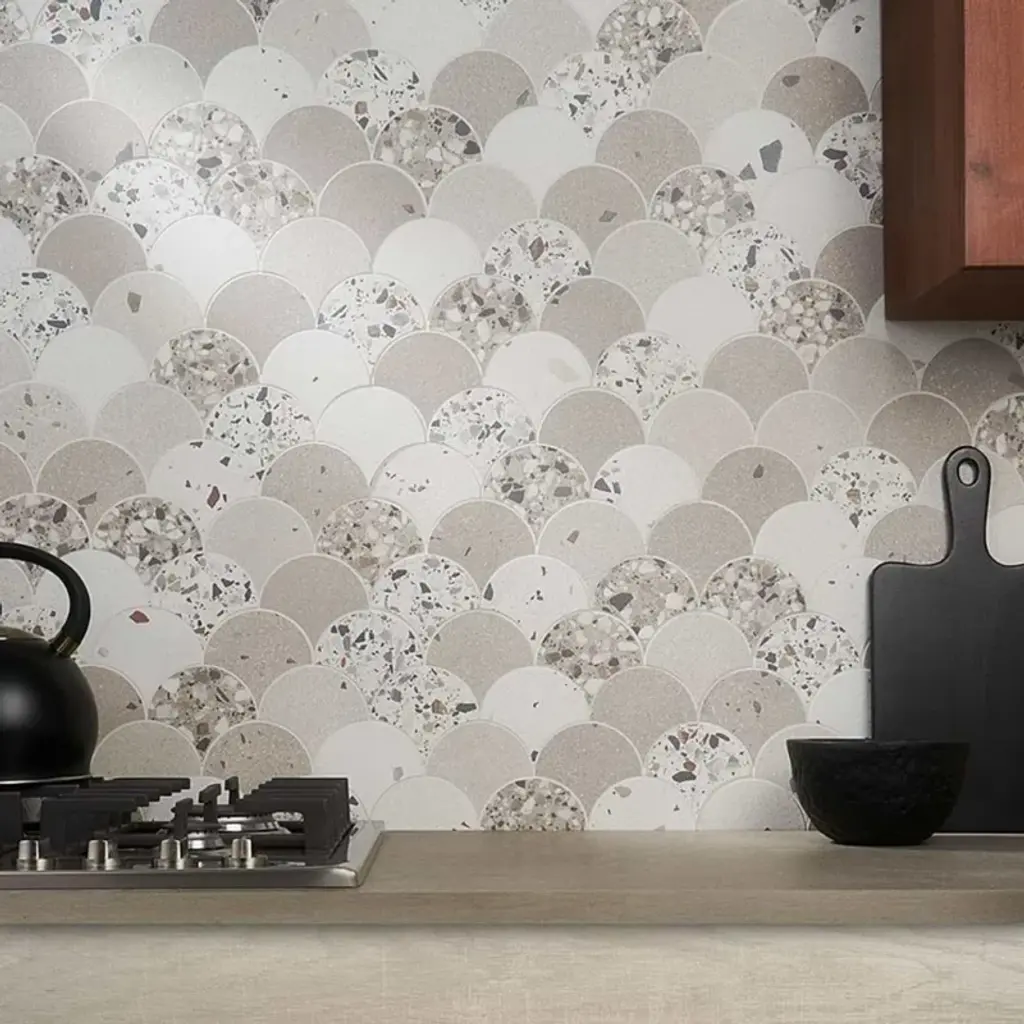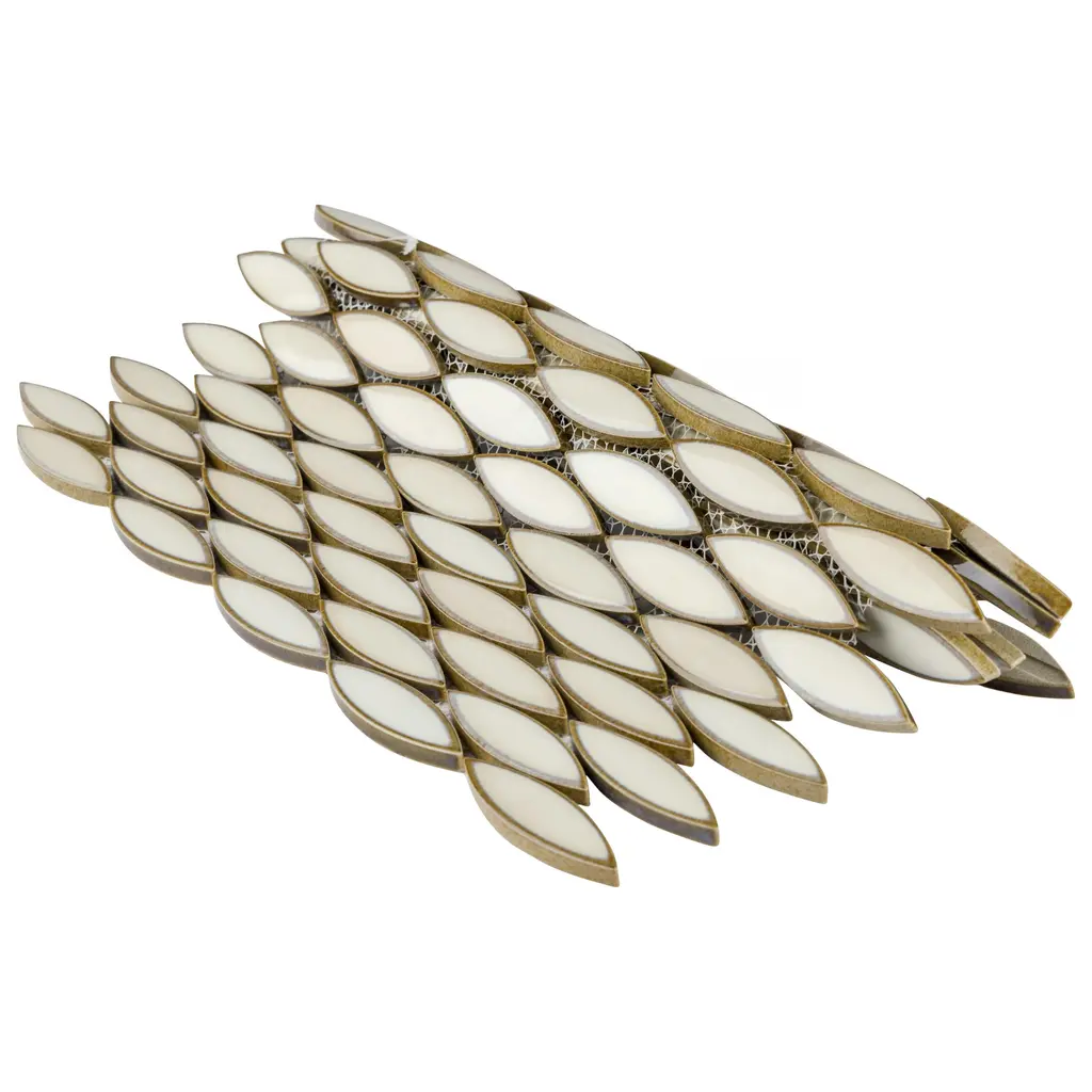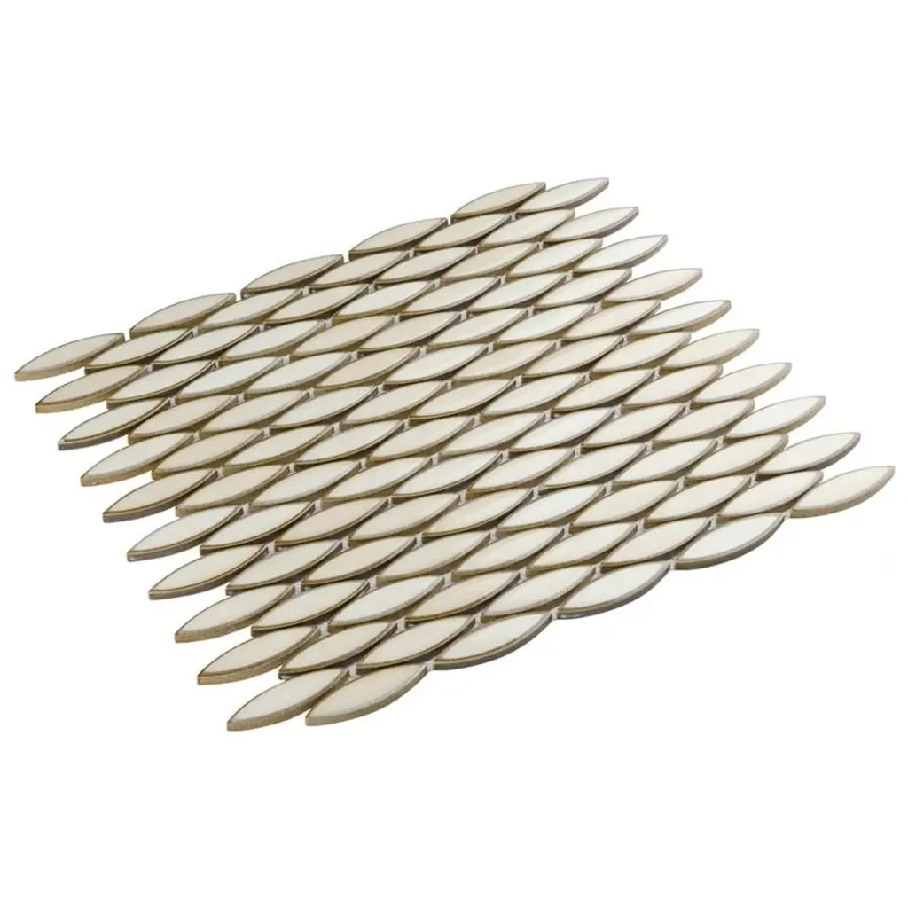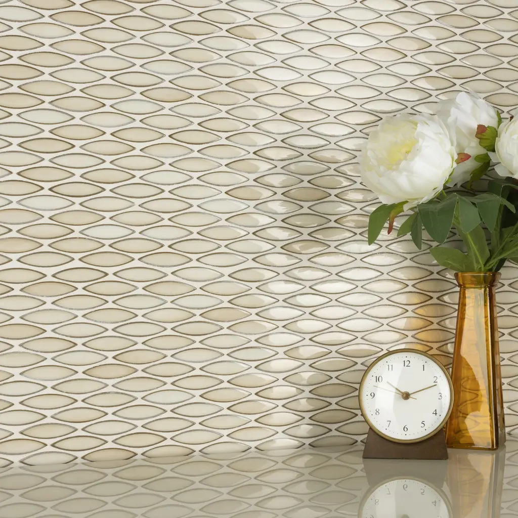 Our Pescado Glossy Crema Porcelain Mosaic Floor and Wall Tile captures the timeless appeal of mosaic tile in a modern geometric format. Featuring a visually rich reactive glaze with an eye-drop effect, these elongated oval tiles have soft hues of beige, cream and white that blend to taupe around the edges. This floor and wall tile creates the subtle illusion of movement through a pleasing mixture of warm-toned tints with additional depth provided by the smooth, high glossy finish. Its impervious and frost-resistant features make this an ideal tile for both indoor and outdoor residential use, including kitchen backsplashes, bathrooms, showers and accent walls. This tile is a perfect choice on its own or paired with other products in the Pescado Collection. Tile is the better choice for your space. This tile is made from natural ingredients, making it a healthy choice as it is free from allergens, VOCs, formaldehyde and PVC. 1.06 square feet per piece, each piece sold individually. Piece weight equals 2.2 lbs. Grade 1, first-quality porcelain tile for floor and wall use 12 in. width x 12.5 in. length x 0.25 in. thick mesh-mounted mosaic Glazed, smooth finish with a high sheen and moderate variation in tone PEI Rating I is suitable for light-duty residential floors, bathrooms and bedrooms without direct access from outside; no scratching dirt can be present Impervious tiles have a water absorption of less than 0.5% for indoor and outdoor use and are frost resistant This tile is not ADA approved for slip resistance with a DCOF value less than 0.42. Completely frost resistant for indoor or outdoor applications; use a latex-modified thinset for acceptable bond strength Please note: A sample of this product may be a partial piece cut from the full size tile in order to provide an affordable and convenient way for customers to judge the quality and finish of this item. Samples are not returnable.