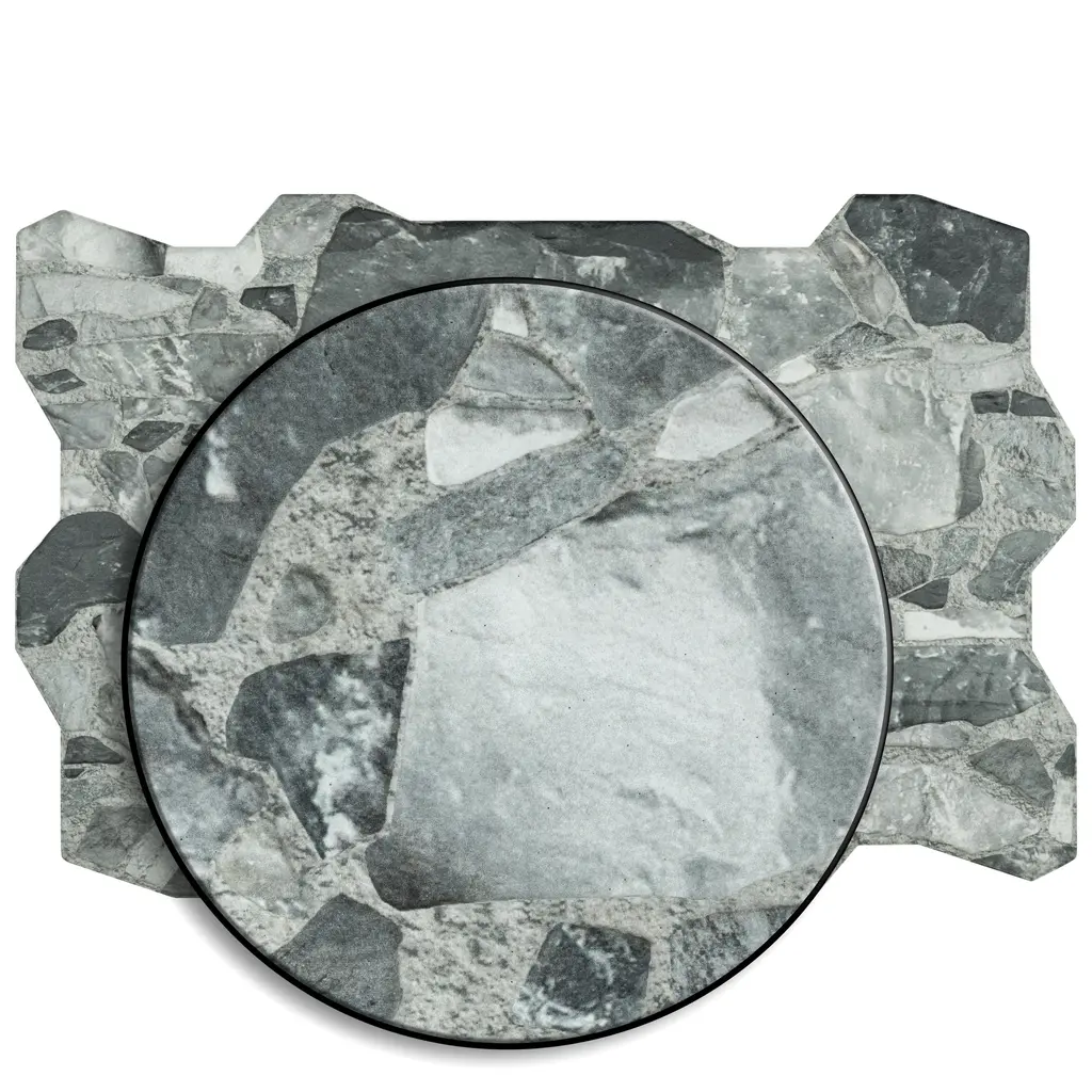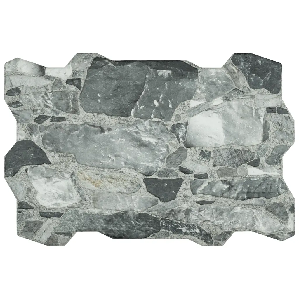 Modeling a stone look, our Rambla Grafito Porcelain Floor and Wall Tile features a slightly textured, matte finish, providing decorative appeal that adapts to a variety of stylistic contexts. Containing 4 different print variations that are randomly distributed throughout each case, this gray rectangle tile offers a one-of-a-kind look. With its impervious, frost-resistant features, this tile is an ideal selection for a variety of spaces including indoor and outdoor residential installations, kitchens, bathrooms, backsplashes, showers, hallways and fireplace facades. Discover more products from the Merola Tile Rambla Collection to complete your design. To ensure optimal results, please consult with your installer and review the product specifications to confirm that this tile meets the specific needs of your project. 14.04 square feet, 6 pieces per case. Case weight is 54.95 lbs. Grade 1, first-quality porcelain tile for floor and wall use 14.63 in. width x 22.75 in. length x 0.39 in. thick Glazed, slightly textured finish with a low sheen and moderate variation in tone PEI Rating III is suitable for medium-duty residential floors including kitchens, halls, corridors, balconies, terraces and areas used more often with normal footwear and small amounts of dirt Impervious tiles have a water absorption of less than 0.5% for indoor and outdoor use and are frost resistant This tile is ADA approved for slip resistance with a DCOF value of 0.42 or higher. Completely frost resistant for indoor or outdoor applications; use a latex-modified thinset for acceptable bond strength Please note: A sample of this product may be a partial piece cut from the full size tile in order to provide an affordable and convenient way for customers to judge the quality and finish of this item. Samples are not returnable.