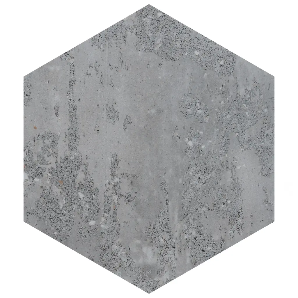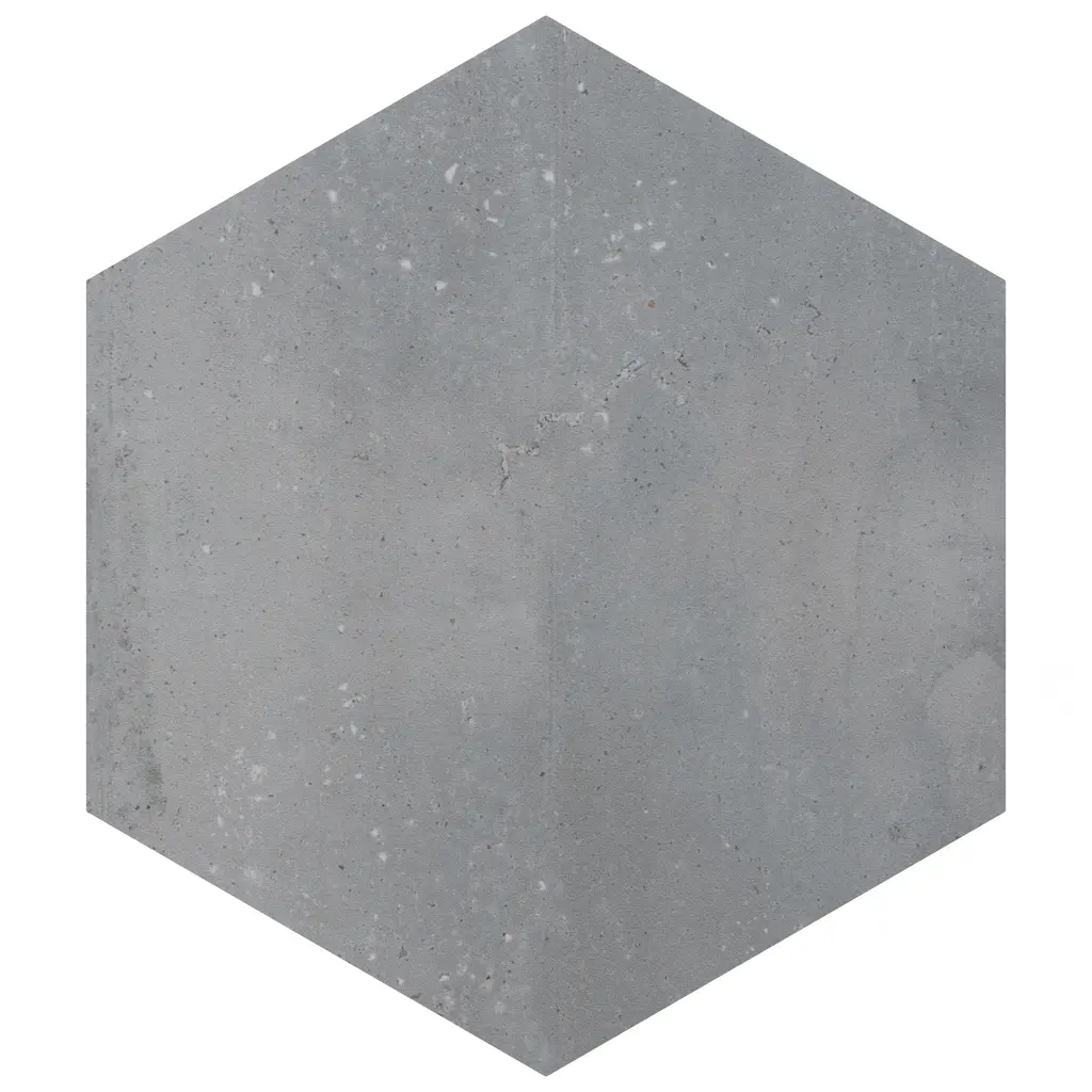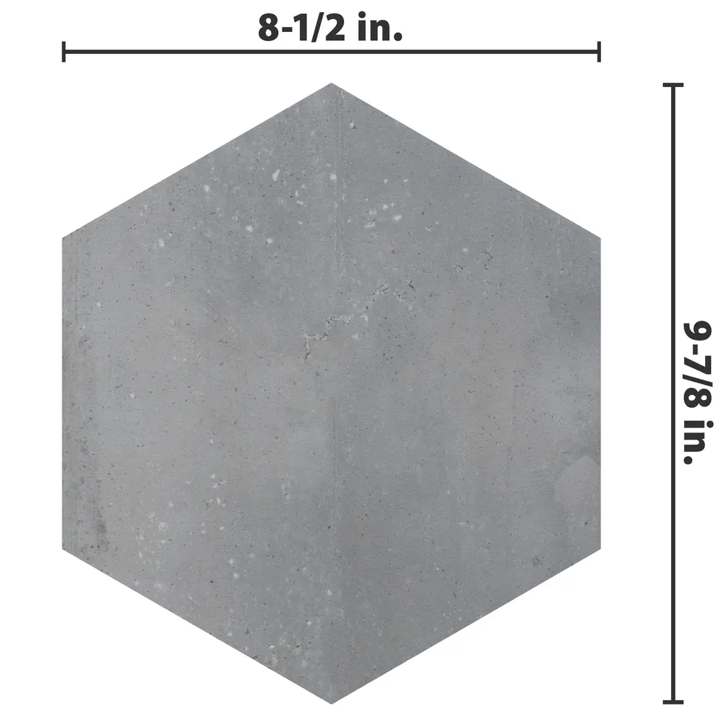 Replicating a terrazzo look, our Recycle Hex Antique Porcelain Floor and Wall Tile features a medium textured, mixed finish, providing decorative appeal that adapts to a variety of stylistic contexts. Containing 36 different print variations that are randomly distributed throughout each case, this gray hexagon tile offers a one-of-a-kind look. With its impervious, frost-resistant features, this tile is an ideal selection for both indoor and outdoor commercial and residential installations, including kitchens, bathrooms, backsplashes, showers, hallways, entryways, patios and fireplace facades. This tile is a perfect choice on its own or paired with other products in the Recycle Collection. Tile is the better choice for your space! 4.05 square feet, 9 pieces per case. Case weight is 18.63 lbs. Grade 1, first-quality porcelain tile for floor and wall use 8.5 in. width x 9.88 in. length x 0.39 in. thick Glazed, medium textured finish with a mixed finish and moderate variation in tone PEI Rating IV has high resistance to abrasion and is suitable for heavy-duty residential and commercial kitchens, hotels, exhibition and sales rooms with some dirt conditions Impervious tiles have a water absorption of less than 0.5% for indoor and outdoor use and are frost resistant This tile is ADA approved for slip resistance with a DCOF value of 0.42 or higher. Completely frost resistant for indoor or outdoor applications; use a latex-modified thinset for acceptable bond strength Please note: A sample of this product may be a partial piece cut from the full size tile in order to provide an affordable and convenient way for customers to judge the quality and finish of this item. Samples are not returnable.