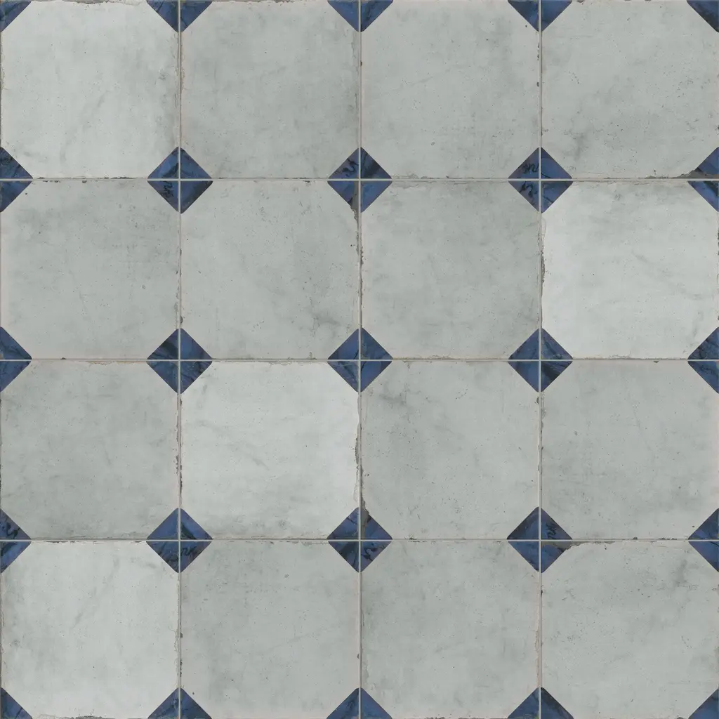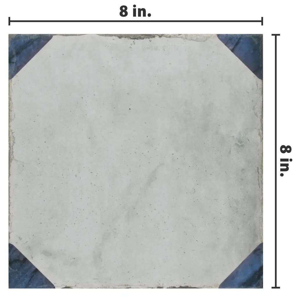 Modeling a geometric look, our Renaissance Deco Indigo Corner Porcelain Floor and Wall Tile features a slightly textured, matte finish, providing decorative appeal that adapts to a variety of stylistic contexts. Containing 15 different print variations that are randomly distributed throughout each case, this white square tile offers a one-of-a-kind look. With its impervious, frost-resistant features, this tile is an ideal selection for both indoor and outdoor residential installations, including bathrooms, backsplashes, showers, hallways and fireplace facades. This tile is a perfect choice on its own or paired with other products in the Renaissance Collection. Tile is the better choice for your space! 6.3 square feet, 14 pieces per case. Case weight is 24.54 lbs. Grade 1, first-quality porcelain tile for floor and wall use 7.88 in. width x 7.88 in. length x 0.35 in. thick Glazed, slightly textured finish with a low sheen and slight variation in tone PEI Rating II is suitable for all interior walls and light foot traffic such as powder rooms Impervious tiles have a water absorption of less than 0.5% for indoor and outdoor use and are frost resistant This tile is ADA approved for slip resistance with a DCOF value of 0.42 or higher. Completely frost resistant for indoor or outdoor applications; use a latex-modified thinset for acceptable bond strength Please note: A sample of this product may be a partial piece cut from the full size tile in order to provide an affordable and convenient way for customers to judge the quality and finish of this item. Samples are not returnable.