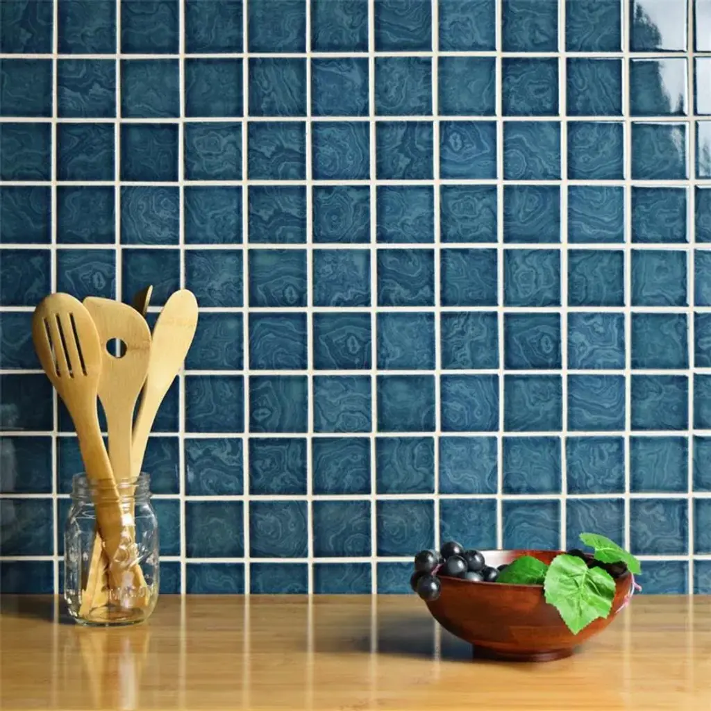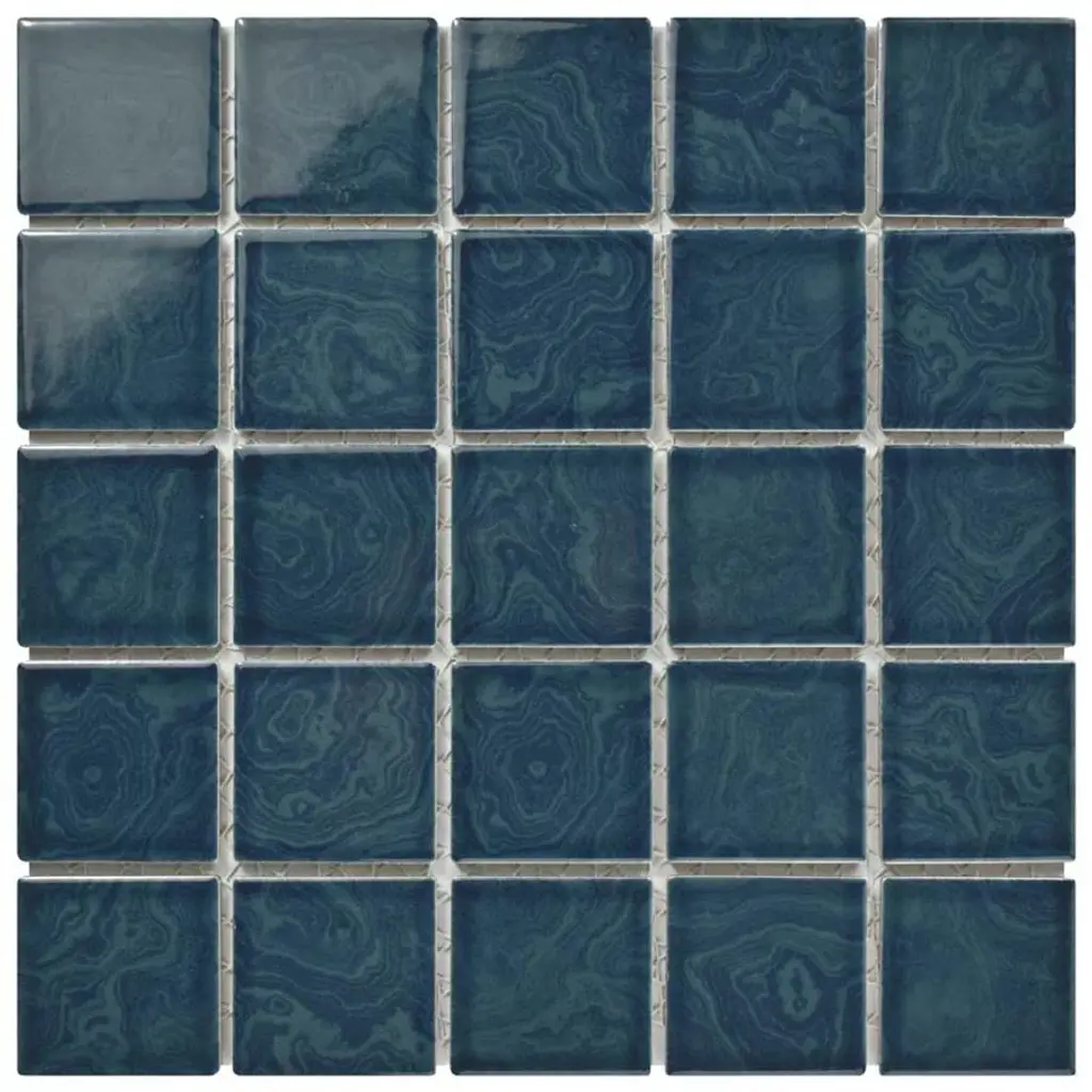 Reminiscent of mineralized geodes, our Resort Coral Blue Porcelain Mosaic Tile features varying shades of muted blue with a coral blue base glaze that has slate striations flowing throughout each chip, creating the look of geodes. An illusion of additional depth and dimension is created by a smooth and sleek glossy glaze that creates a unique design. Made of porcelain, this mosaic is best for walls or light traffic floors in both indoor and outdoor settings, including showers, powder room floors, and backsplashes. Tile is the better choice for your space. This tile is made from natural ingredients, making it a healthy choice as it is free from allergens, VOCs, formaldehyde and PVC. 10.2 square feet, 10 pieces per case. Case weight is 22 lbs. Grade 1, first-quality porcelain tile for floor and wall use 12 in. width x 12 in. length x 0.18 in. thick mesh-mounted mosaic Glazed, smooth finish with a high sheen and slight variation in tone PEI Rating II is suitable for all interior walls and light foot traffic such as powder rooms Impervious tiles have a water absorption of less than 0.5% for indoor and outdoor use and are frost resistant This tile is not ADA approved for slip resistance with a DCOF value less than 0.42. Completely frost resistant for indoor or outdoor applications; use a latex-modified thinset for acceptable bond strength Please note: A sample of this product may be a partial piece cut from the full size tile in order to provide an affordable and convenient way for customers to judge the quality and finish of this item. Samples are not returnable.