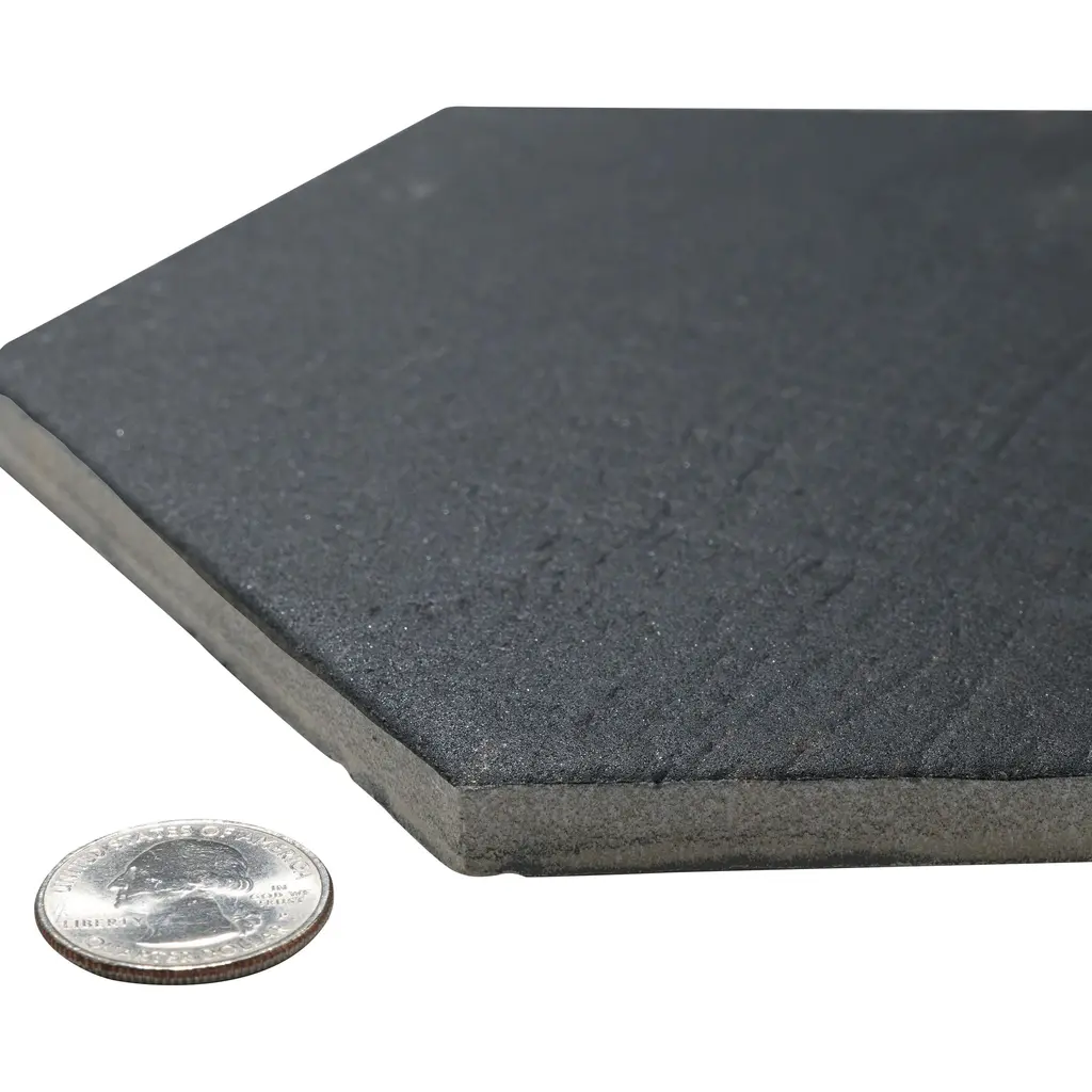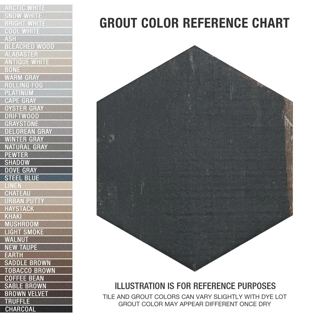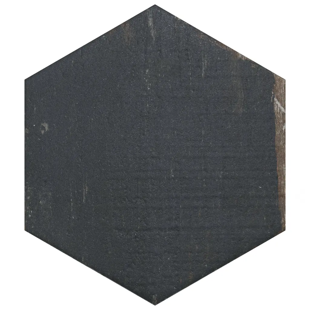 Replicating a wood look, our Retro Mini Hex Nero Porcelain Floor and Wall Tile features a slightly textured, matte finish, providing decorative appeal that adapts to a variety of stylistic contexts. Containing 12 different print variations that are randomly distributed throughout each case, this black hexagon tile offers a one-of-a-kind look. With its impervious, frost-resistant features, this tile is an ideal selection for both indoor and outdoor residential installations, including bathrooms, backsplashes, showers, hallways and fireplace facades. This tile is a perfect choice on its own or paired with other products in the Retro Collection. Tile is the better choice for your space! 11.16 square feet, 36 pieces per case. Case weight is 49.6 lbs. Grade 1, first-quality porcelain tile for floor and wall use 7 in. width x 8 in. length x 0.39 in. thick Glazed, slightly textured finish with a low sheen and slight variation in tone PEI Rating II is suitable for all interior walls and light foot traffic such as powder rooms Impervious tiles have a water absorption of less than 0.5% for indoor and outdoor use and are frost resistant This tile is ADA approved for slip resistance with a DCOF value of 0.42 or higher. Completely frost resistant for indoor or outdoor applications; use a latex-modified thinset for acceptable bond strength Please note: A sample of this product may be a partial piece cut from the full size tile in order to provide an affordable and convenient way for customers to judge the quality and finish of this item. Samples are not returnable.