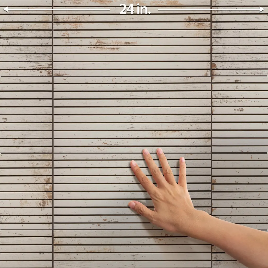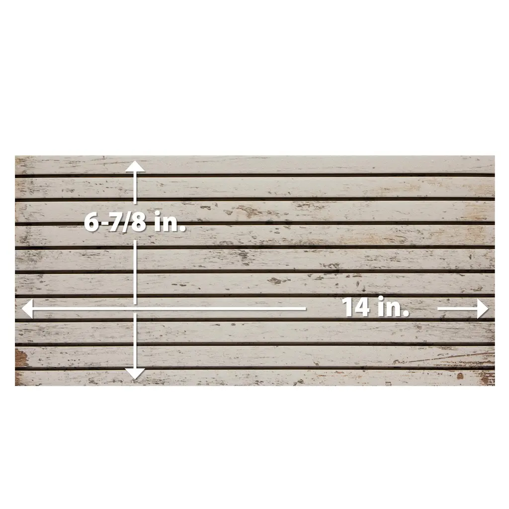 Replicating a wood look, our Retro Strata Blanc Porcelain Floor and Wall Tile features a medium textured, matte finish, providing decorative appeal that adapts to a variety of stylistic contexts. Inspired by painted, distressed wood, the Retro Strata subseries features an updated fluted look and matte finish, offering a bespoke, nostalgic charm that adds depth and detail to contemporary interiors, creating a cozy, stylish, and personalized ambiance. Containing 14 different print variations that are randomly distributed throughout each case, this white rectangle tile offers a one-of-a-kind look. With its impervious, frost-resistant features, this tile is an ideal selection for both indoor and outdoor commercial and residential installations, including kitchens, bathrooms, backsplashes, showers, hallways, entryways, patios and fireplace facades. This tile is a perfect choice on its own or paired with other products in the Retro Collection. Tile is the better choice for your space! 11.2 square feet, 16 pieces per case. Case weight is 50.09 lbs. Grade 1, first-quality porcelain tile for floor and wall use 6.88 in. width x 14 in. length x 0.39 in. thick Glazed, medium textured finish with a low sheen and slight variation in tone PEI Rating IV has high resistance to abrasion and is suitable for heavy-duty residential and commercial kitchens, hotels, exhibition and sales rooms with some dirt conditions Impervious tiles have a water absorption of less than 0.5% for indoor and outdoor use and are frost resistant This tile is ADA approved for slip resistance with a DCOF value of 0.42 or higher. Completely frost resistant for indoor or outdoor applications; use a latex-modified thinset for acceptable bond strength Please note: A sample of this product may be a partial piece cut from the full size tile in order to provide an affordable and convenient way for customers to judge the quality and finish of this item. Samples are not returnable