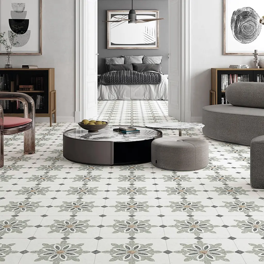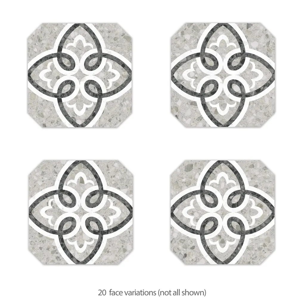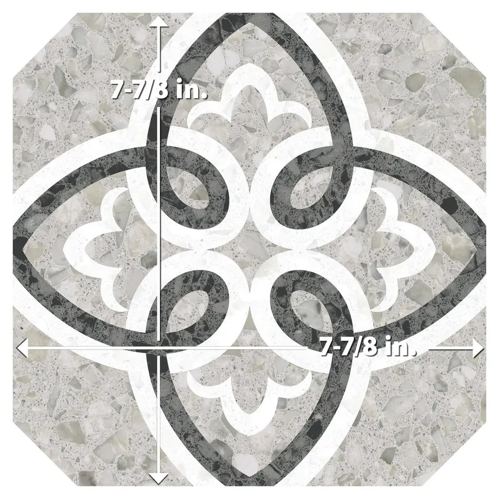 Replicating a terrazzo look, our Riviera Octagon Garde Gris Porcelain Floor and Wall Tile features a slightly textured, matte finish, providing decorative appeal that adapts to a variety of stylistic contexts. Containing 20 different print variations that are randomly distributed throughout each case, this gray octagon tile offers a one-of-a-kind look. With its impervious, frost-resistant features, this tile is an ideal selection for a variety of spaces including indoor and outdoor residential installations, kitchens, bathrooms, backsplashes, showers, hallways, pools and fireplace facades. Discover more products from the Merola Tile Riviera Collection to complete your design. To ensure optimal results, please consult with your installer and review the product specifications to confirm that this tile meets the specific needs of your project.