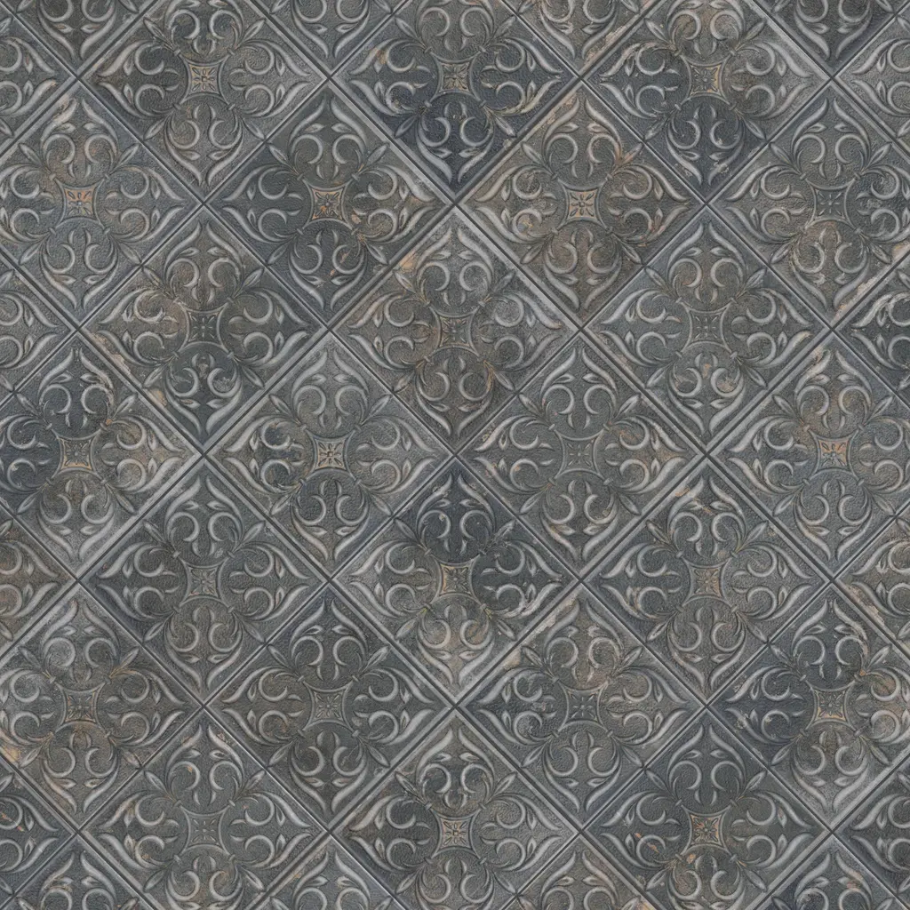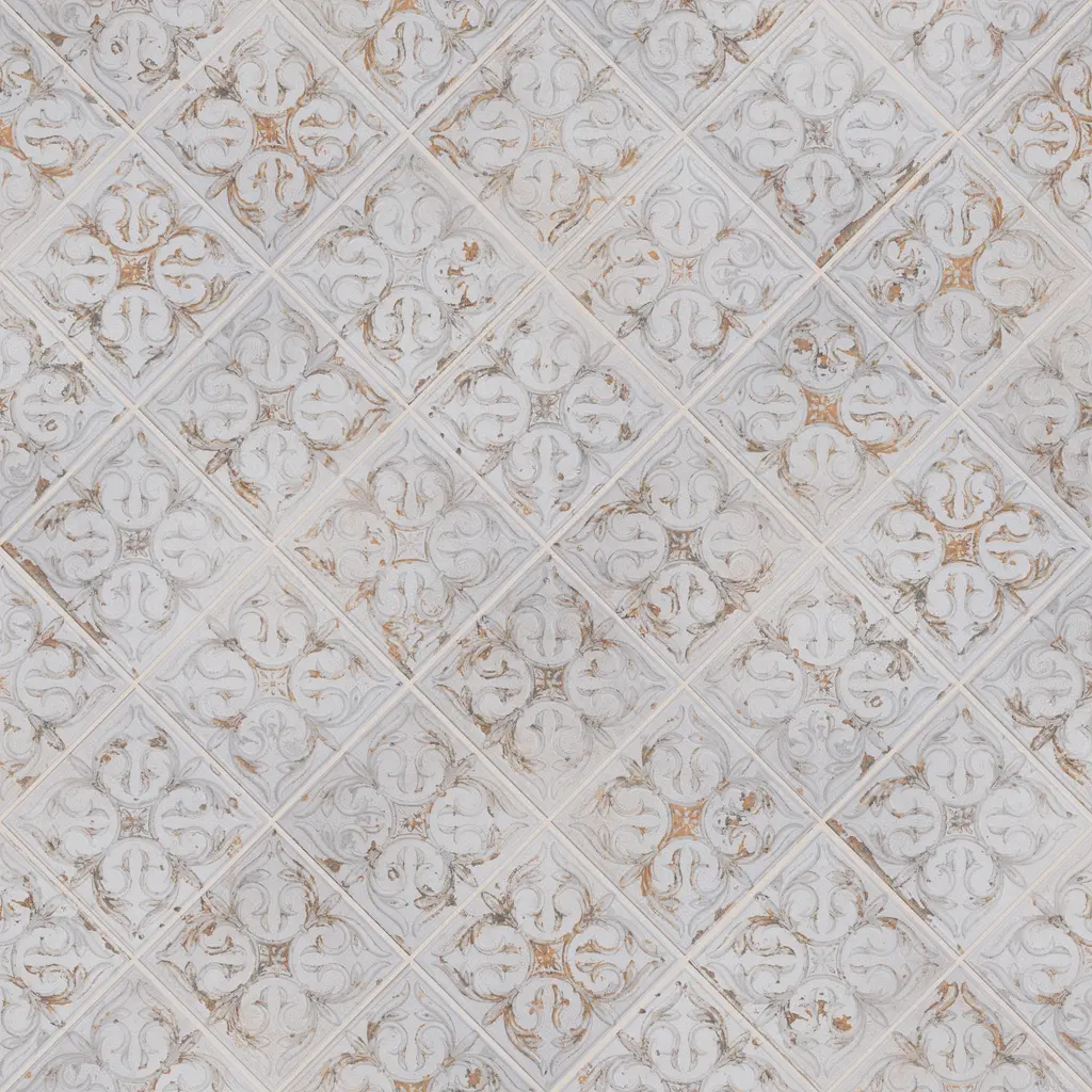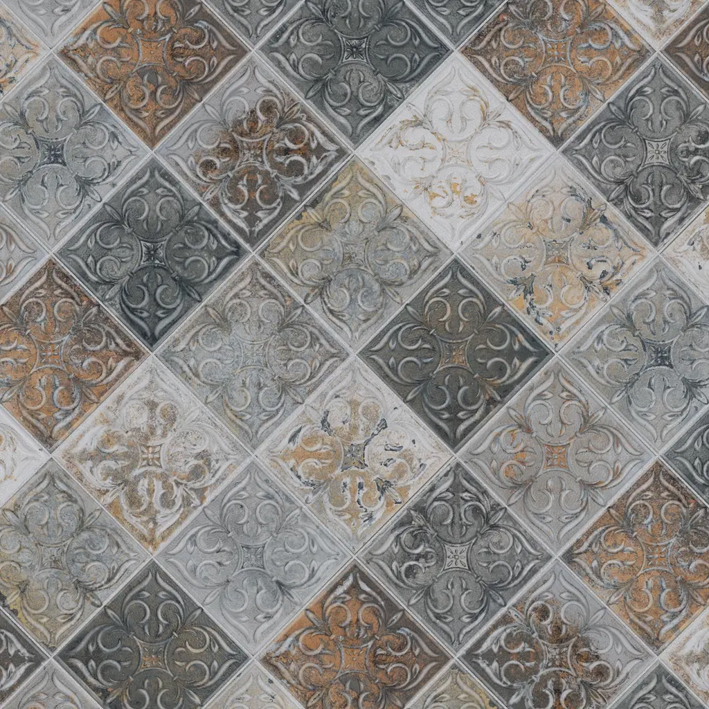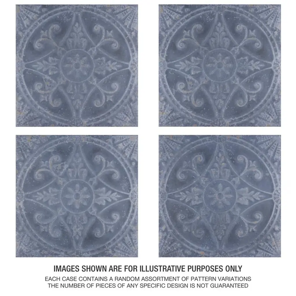 Our Saja Cyan Ceramic Floor and Wall Tile is inspired directly by a series of rusted metallic molds that were originally used to shape ceiling plaster moldings. Named after the Saja River in Spain, this tile features raised floral motifs that are reminiscent of tin ceiling tiles in faded periwinkle blue and taupe tones. Designed by interior architect and furniture designer Francisco Segarra, this tile is a true reflection of vintage industrial design. Realistic imitations of scuffs and spots that are the marks of well-loved, worn, century-old tile bring rustic charm to any interior setting. These rustic scuffs and spots convince that this tile is truly aged. Available in 7 print variations that are randomly scattered throughout each case, the variation throughout each tile mimics an authentic aged appearance. Its glazed and durable features make it an ideal choice for indoor installations including kitchens, bathrooms, showers, backsplashes, and fireplace facades. Tile is the better choice for your space. This tile is made from natural ingredients, making it a healthy choice as it is free from allergens, VOCs, formaldehyde, and PVC.