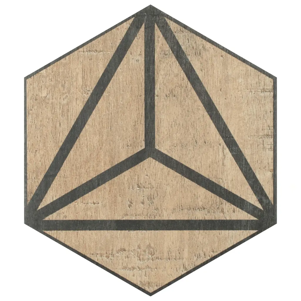 Modeling a geometric look, our Sawnwood Tribeka Hex Brown Porcelain Floor and Wall Tile features a slightly textured, matte finish, providing decorative appeal that adapts to a variety of stylistic contexts. Containing 42 different print variations that are randomly distributed throughout each case, this beige hexagon tile offers a one-of-a-kind look. With its impervious, frost-resistant features, this tile is an ideal selection for a variety of spaces including indoor and outdoor residential installations, kitchens, bathrooms, backsplashes, showers, hallways, pools and fireplace facades. This tile is a perfect choice on its own or with other products in the Merola Tile, Sawnwood Collection. To ensure optimal results, please consult with your installer and review the product specifications to confirm that this tile meets the specific needs of your project.