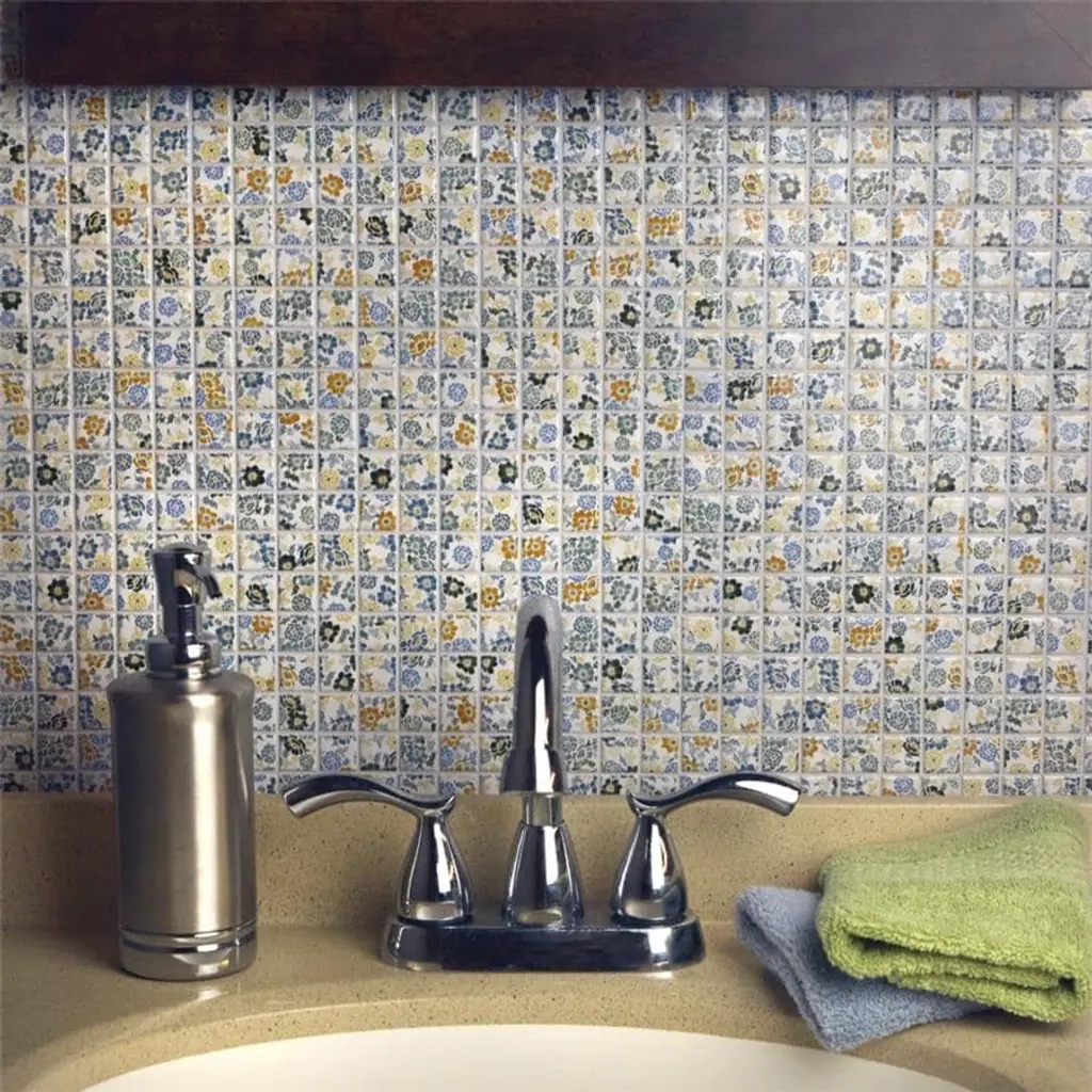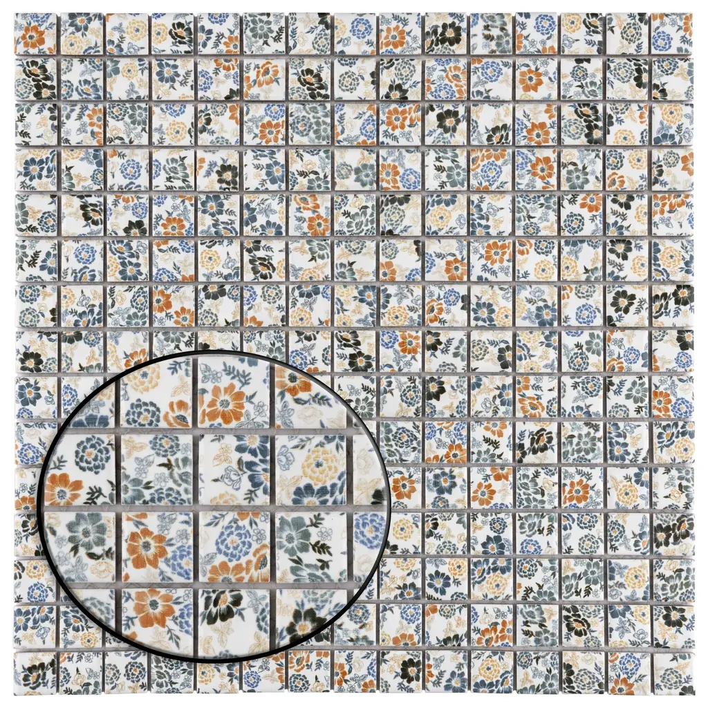 Bring a modern aesthetic into your living space with our Spring Flower Porcelain Mosaic Tile. This unique floral-patterned mosaic tile has a glazed, medium-shine surface and incorporates square tiles to provide a contemporary look. The strong mesh backing material makes for easy installation and the durable porcelain material and impervious water absorption rating make this mosaic a great choice for indoor and outdoor applications. Tile is the better choice for your space. This tile is made from natural ingredients, making it a healthy choice as it is free from allergens, VOCs, formaldehyde and PVC. 10.2 square feet, 10 pieces per case. Case weight is 21 lbs. Grade 1, first-quality porcelain tile for floor and wall use 12 in. width x 12 in. length x 0.23 in. thick mesh-mounted mosaic Glazed, smooth finish with a medium sheen and slight variation in tone PEI Rating II is suitable for all interior walls and light foot traffic such as powder rooms Impervious tiles have a water absorption of less than 0.5% for indoor and outdoor use and are frost resistant This tile has a COF wet rating less than or equal to 0.50 and is considered to have a marginally low skid resistance. This tile is not ADA approved for slip resistance. Completely frost resistant for indoor or outdoor applications; use a latex-modified thinset for acceptable bond strength Please note: A sample of this product may be a partial piece cut from the full size tile in order to provide an affordable and convenient way for customers to judge the quality and finish of this item. Samples are not returnable.