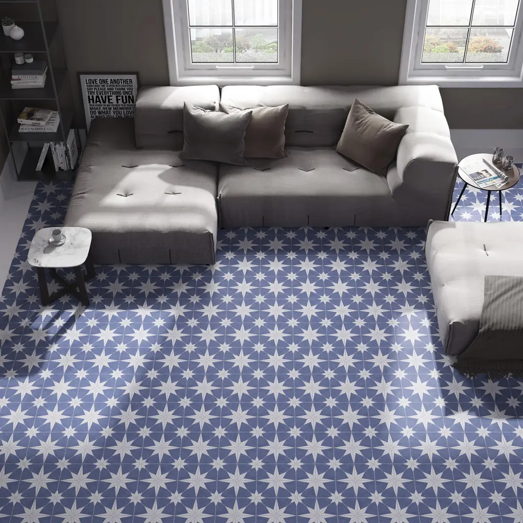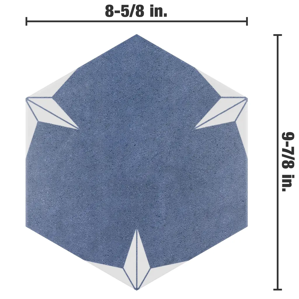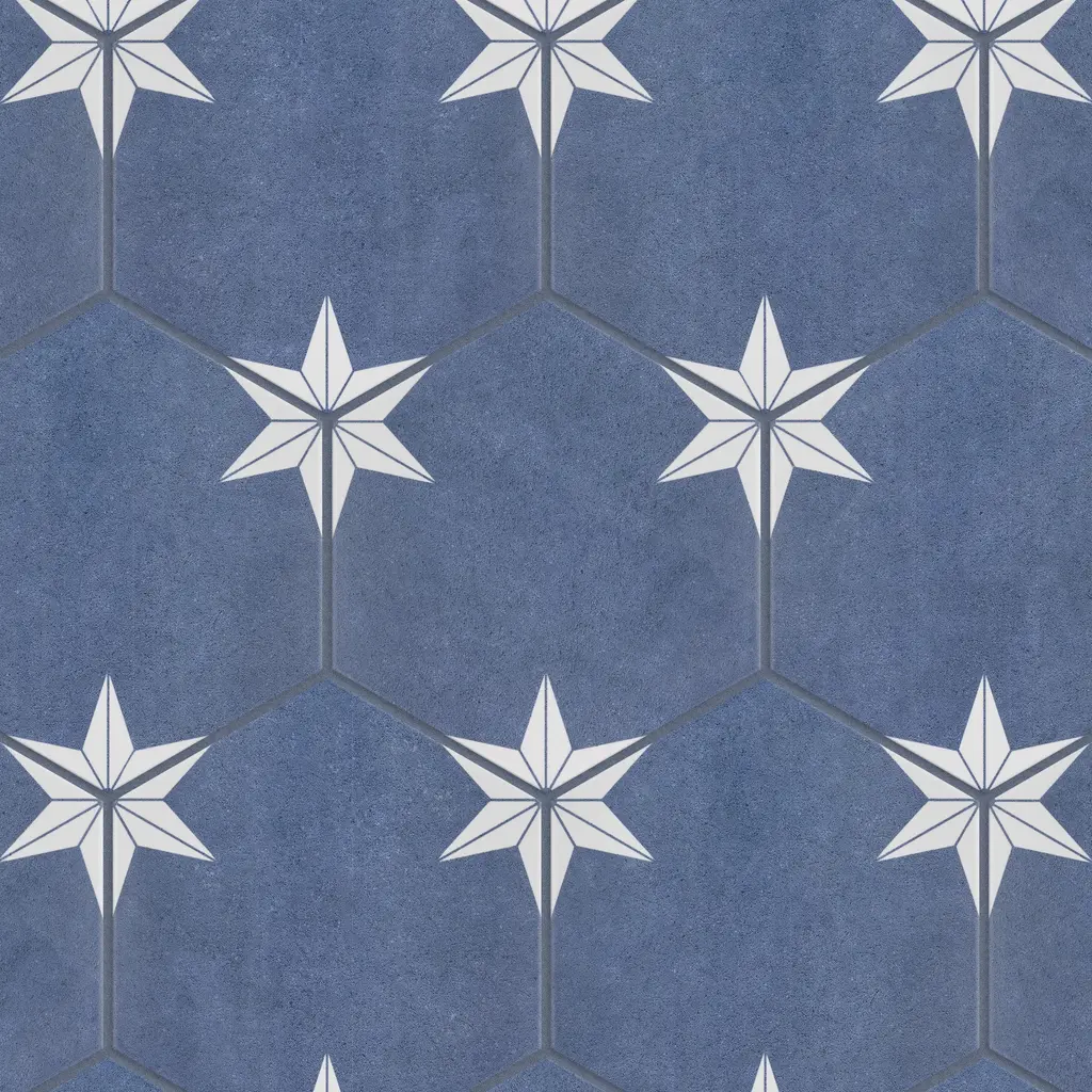 Capturing the appearance of a patterned look, our Stella Hex Day Porcelain Floor and Wall Tile features a smooth, satin finish, providing decorative appeal that adapts to a variety of stylistic contexts. With its impervious, frost-resistant features, this blue hexagon tile is an ideal selection for a variety of spaces including indoor and outdoor residential installations, kitchens, bathrooms, backsplashes, showers, hallways, pools and fireplace facades. This tile is a perfect choice on its own or with other products in the Merola Tile, Stella Collection. To ensure optimal results, please consult with your installer and review the product specifications to confirm that this tile meets the specific needs of your project.