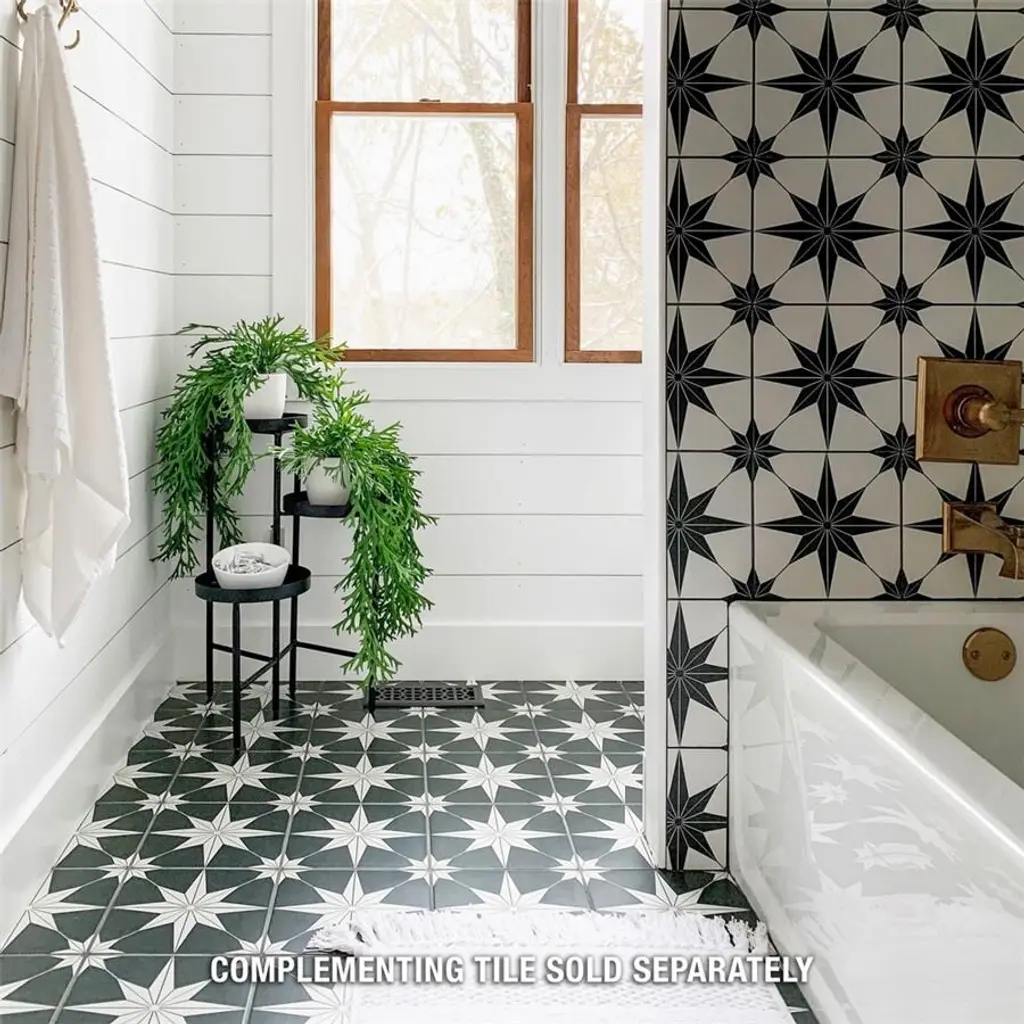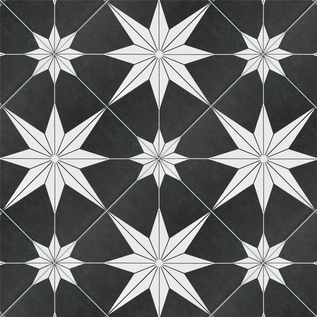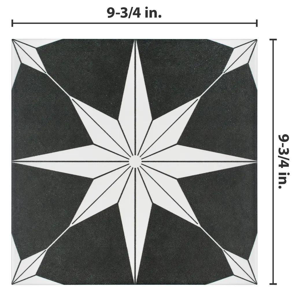 Capturing the appearance of a patterned look, our Stella Night Porcelain Floor and Wall Tile features a smooth, satin finish, providing decorative appeal that adapts to a variety of stylistic contexts. With its impervious, frost-resistant features, this black square tile is an ideal selection for a variety of spaces including indoor and outdoor residential installations, kitchens, bathrooms, backsplashes, showers, hallways, pools and fireplace facades. This tile is a perfect choice on its own or with other products in the Merola Tile, Stella Collection. To ensure optimal results, please consult with your installer and review the product specifications to confirm that this tile meets the specific needs of your project.