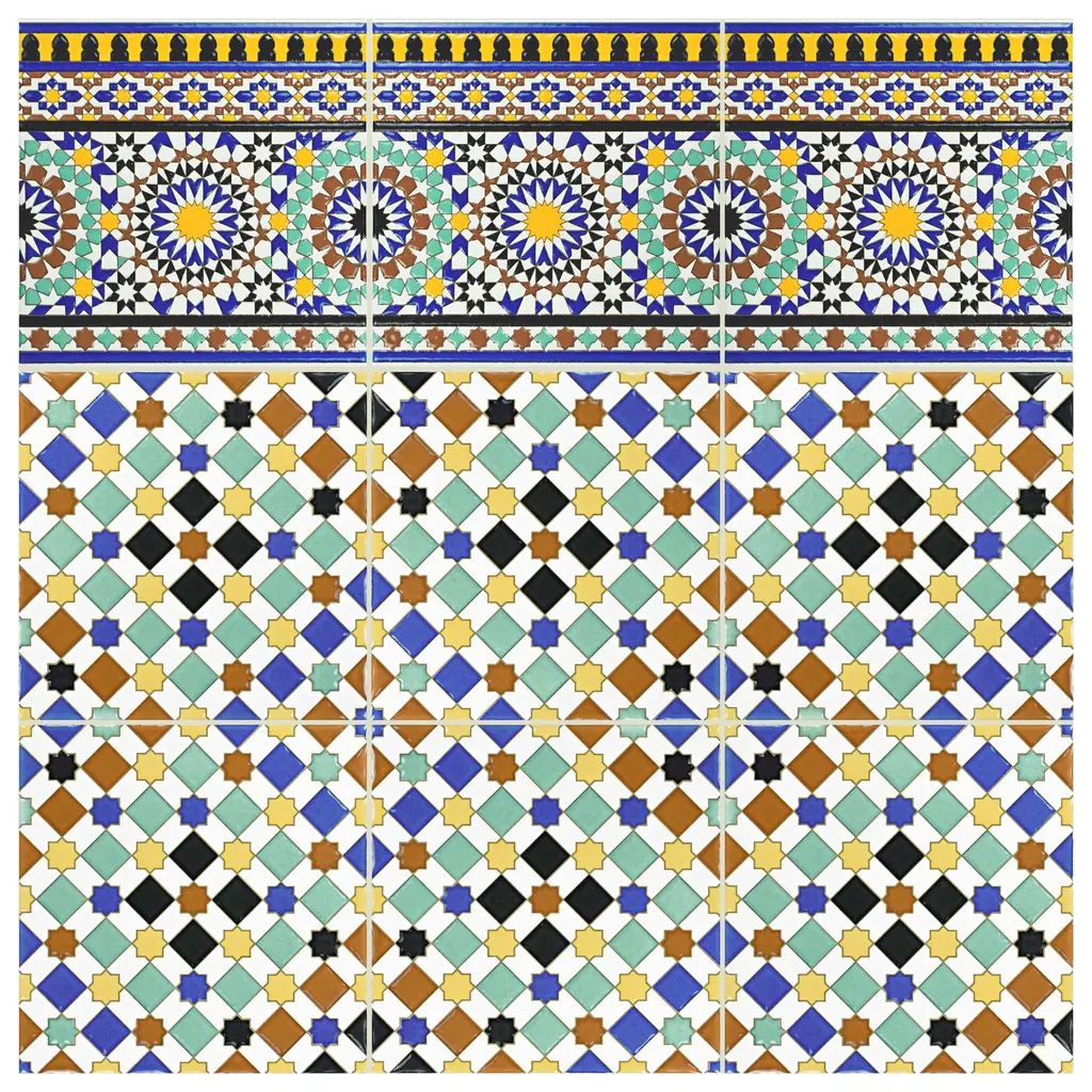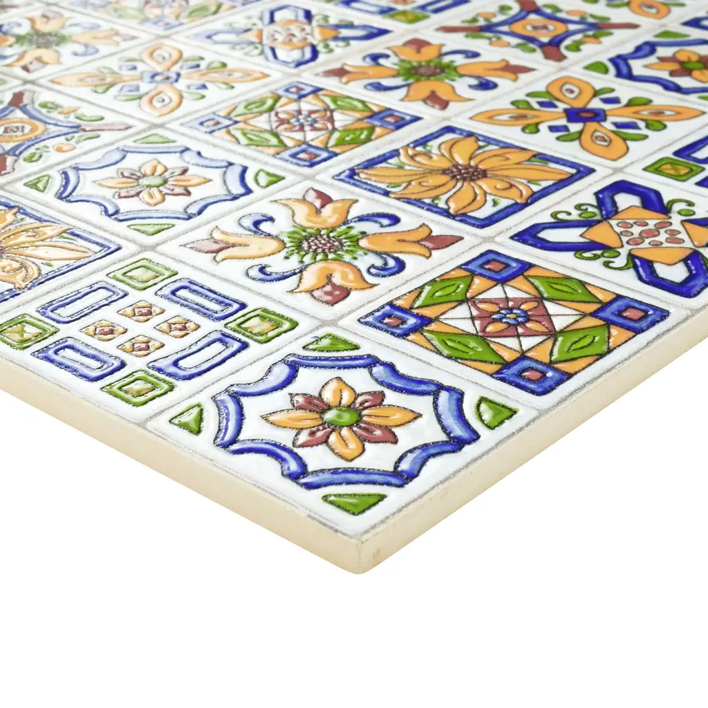 Translating from German to technician of the color, our Techniker Der Farbe Ceramic Wall Tile lives up to the name. Featuring a stunning patchwork of intricate designs inspired by traditional Spanish tile, this ceramic slab offers the complexity of a mosaic. With vibrant shades of royal blue, sunset orange, deep red and lime green set on an off-white background are intensified by the unique third-fire glaze. Faux grout lines created by the glaze craft separation between each square throughout, defining the irregular edges that offers this tile stunning authenticity of aged Spanish tile. Intended for wall-use only, it is great for using as a cohesive look or for pairing with other tiles. This wall tile is best suited for showers, backsplashes and fireplaces. Tile is the better choice for your space. This tile is made from natural ingredients, making it a healthy choice as it is free from allergens, VOCs, formaldehyde and PVC. 0.97 square foot per piece, each piece sold individually. Piece weight equals 2.5 lbs. Grade 1, first-quality ceramic tile for wall use 11.75 in. width x 11.75 in. length x 0.29 in. thick Glazed, smooth finish with a high sheen and slight variation in tone PEI Rating 0 is suitable for wall use only Non-Vitreous tiles have water absorption of more than 7% for indoor use DCOF value is not available for this product. Please reference the PEI and MOHS rating for installation. Not frost resistant Please note: Samples are not returnable