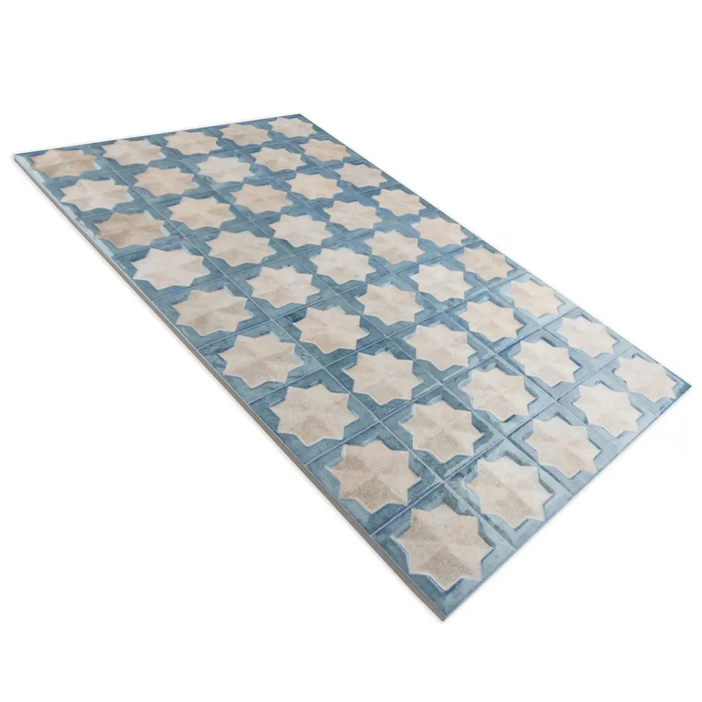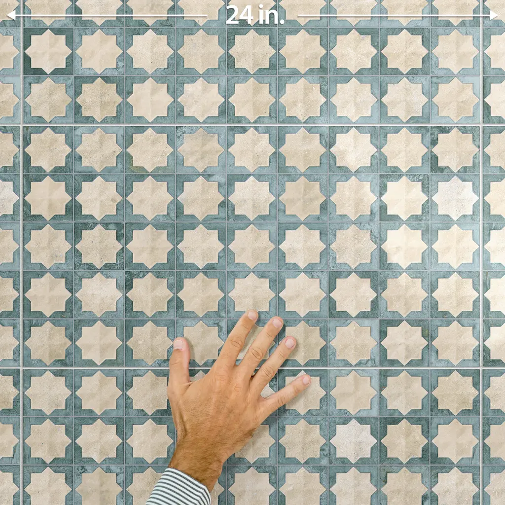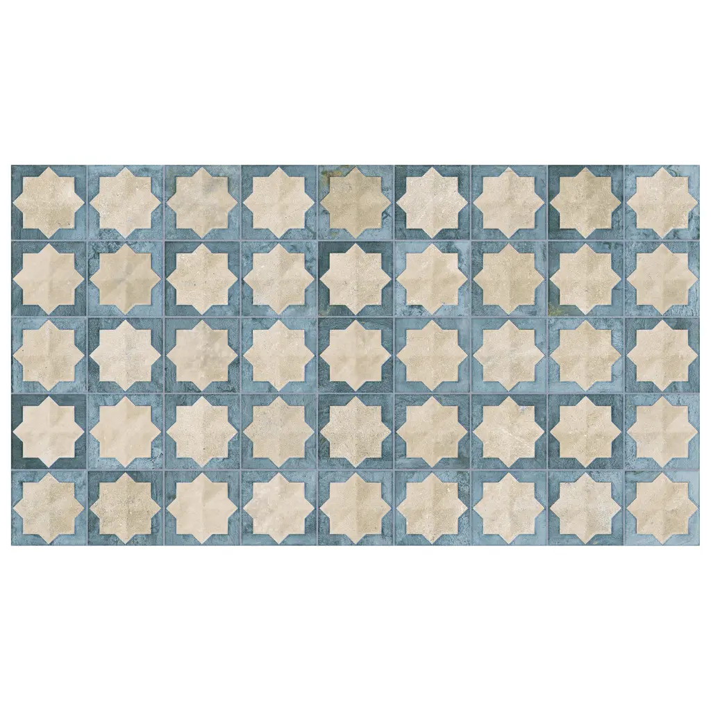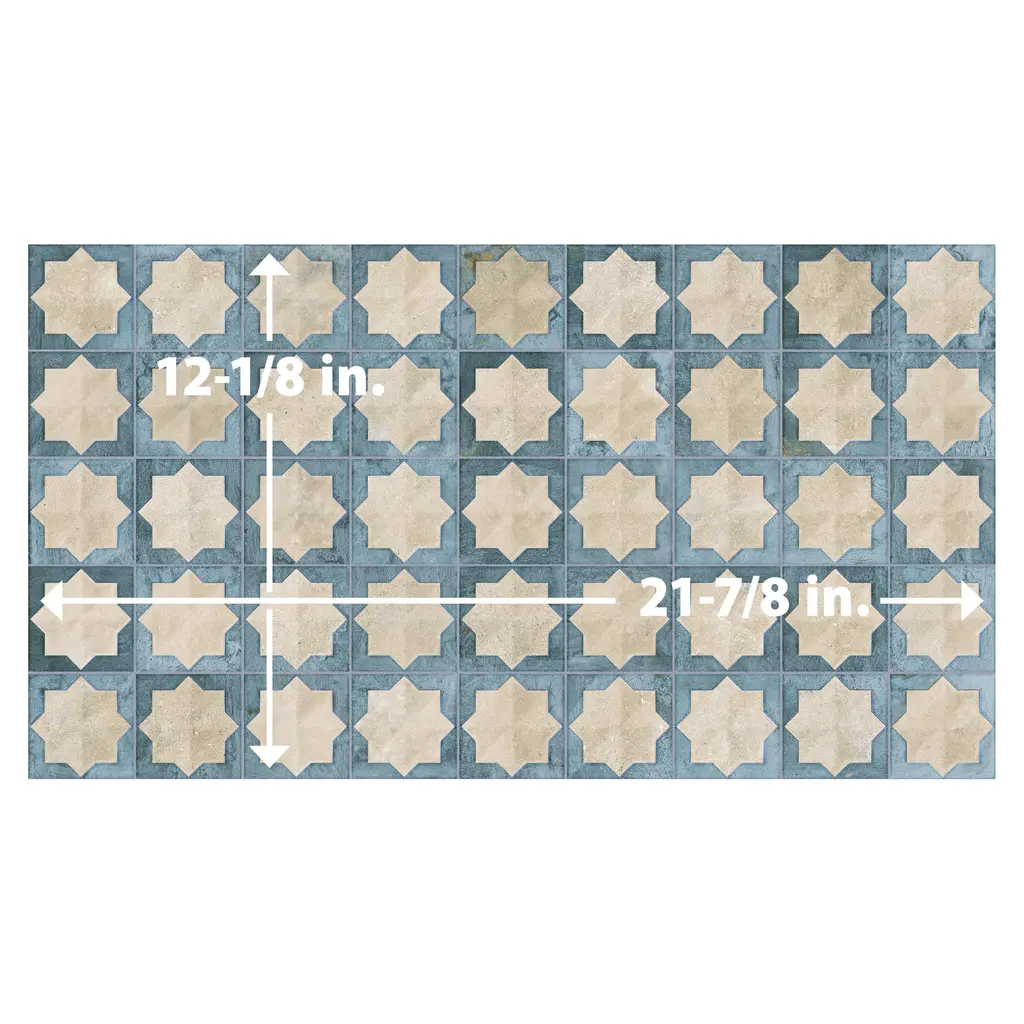 Replicating a terra cotta look, our Tetuan Astre Arena Aqua Porcelain Wall Tile features a mixed textured finish, providing decorative appeal that adapts to a variety of stylistic contexts. Capture the essence of Moroccan art and architecture with the Tetuan Porcelain Tile Collection, featuring a matte-gloss contrast, Zellige-inspired star wall tiles and matte terracotta floor tiles, both with the latest glazing technologies for a dual-textured experience. Containing 8 different print variations that are randomly distributed throughout each case, this beige rectangle tile offers a one-of-a-kind look. With its impervious, frost-resistant features, this tile is an ideal selection for both indoor and outdoor commercial and residential installations, including kitchens, bathrooms, backsplashes, showers, hallways and fireplace facades. This tile is a perfect choice on its own or paired with other products in the Tetuan Collection. Tile is the better choice for your space! 13.02 square feet, 7 pieces per case. Case weight is 60.6 lbs. Grade 1, first-quality porcelain tile for wall use 12.13 in. width x 21.88 in. length x 0.35 in. thick Glazed, mixed texture with a mixed finish and slight variation in tone PEI Rating 0 is suitable for wall use only Impervious tiles have a water absorption of less than 0.5% for indoor and outdoor use and are frost resistant DCOF value is not available for this product. Please reference the PEI and MOHS rating for installation. Completely frost resistant for indoor or outdoor applications; use a latex-modified thinset for acceptable bond strength Please note: Samples are not returnable