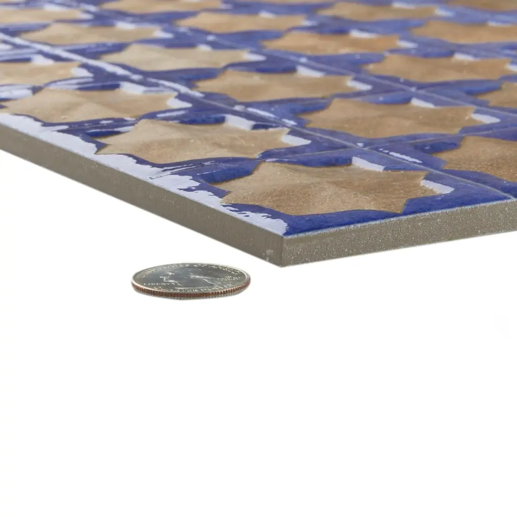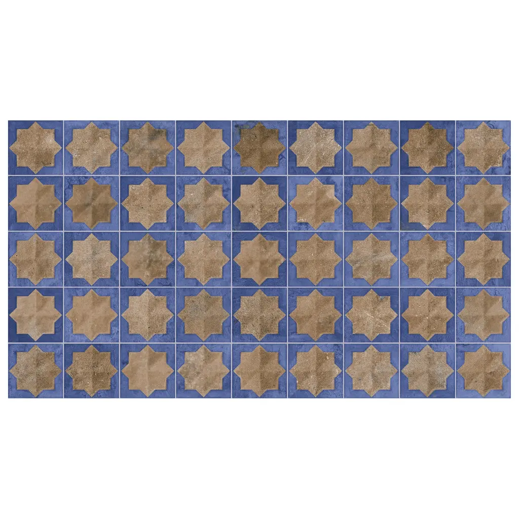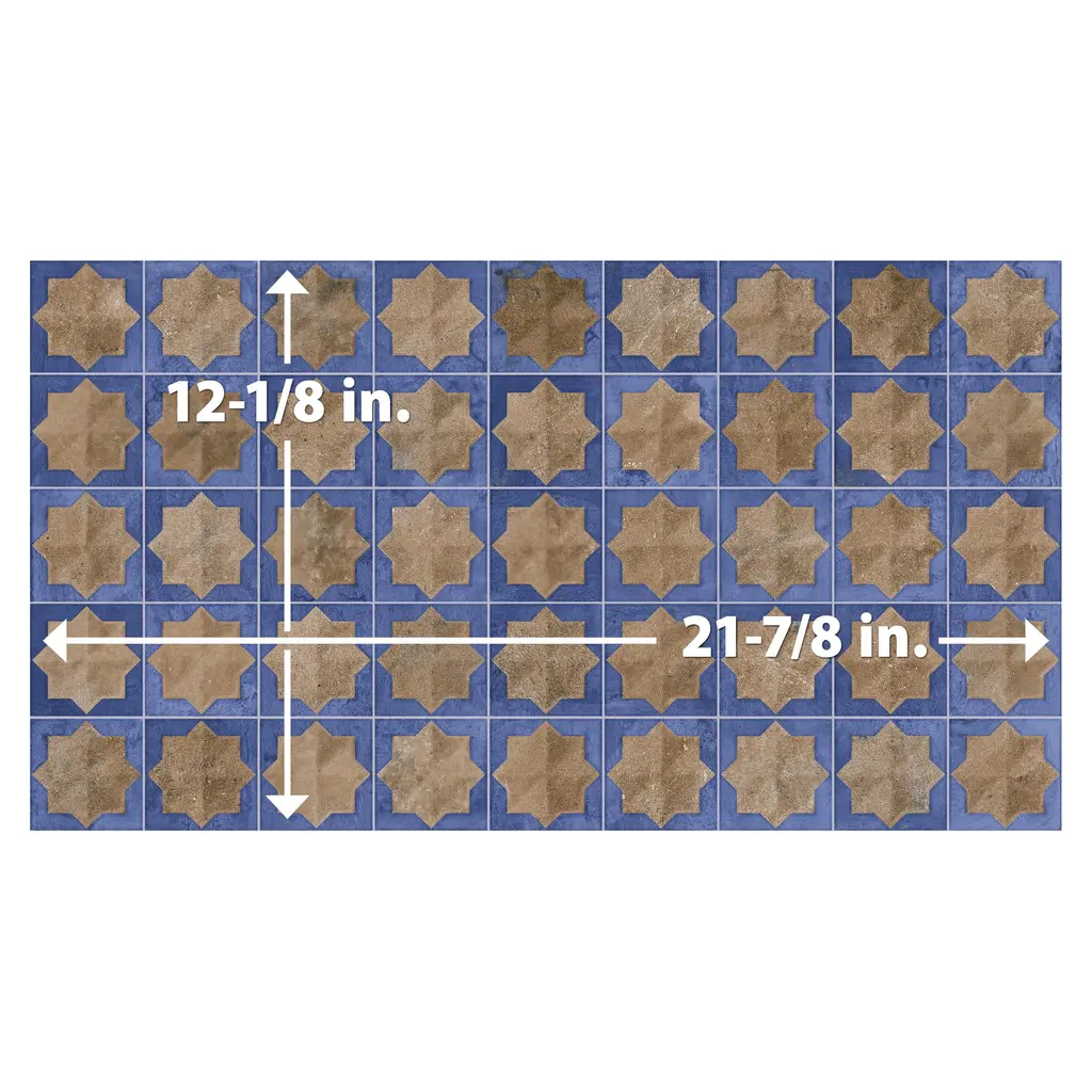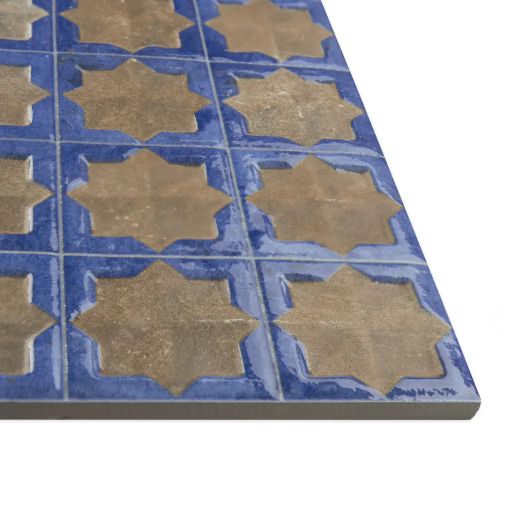 Replicating a terra cotta look, our Tetuan Astre Terra Cobalt Porcelain Wall Tile features a mixed textured finish, providing decorative appeal that adapts to a variety of stylistic contexts. Capture the essence of Moroccan art and architecture with the Tetuan Porcelain Tile Collection, featuring a matte-gloss contrast, Zellige-inspired star wall tiles and matte terracotta floor tiles, both with the latest glazing technologies for a dual-textured experience. Containing 8 different print variations that are randomly distributed throughout each case, this brown rectangle tile offers a one-of-a-kind look. With its impervious, frost-resistant features, this tile is an ideal selection for both indoor and outdoor commercial and residential installations, including kitchens, bathrooms, backsplashes, showers, hallways and fireplace facades. This tile is a perfect choice on its own or paired with other products in the Tetuan Collection. Tile is the better choice for your space! 13.02 square feet, 7 pieces per case. Case weight is 60.6 lbs. Grade 1, first-quality porcelain tile for wall use 12.13 in. width x 21.88 in. length x 0.35 in. thick Glazed, mixed texture with a mixed finish and slight variation in tone PEI Rating 0 is suitable for wall use only Impervious tiles have a water absorption of less than 0.5% for indoor and outdoor use and are frost resistant DCOF value is not available for this product. Please reference the PEI and MOHS rating for installation. Completely frost resistant for indoor or outdoor applications; use a latex-modified thinset for acceptable bond strength Please note: Samples are not returnable