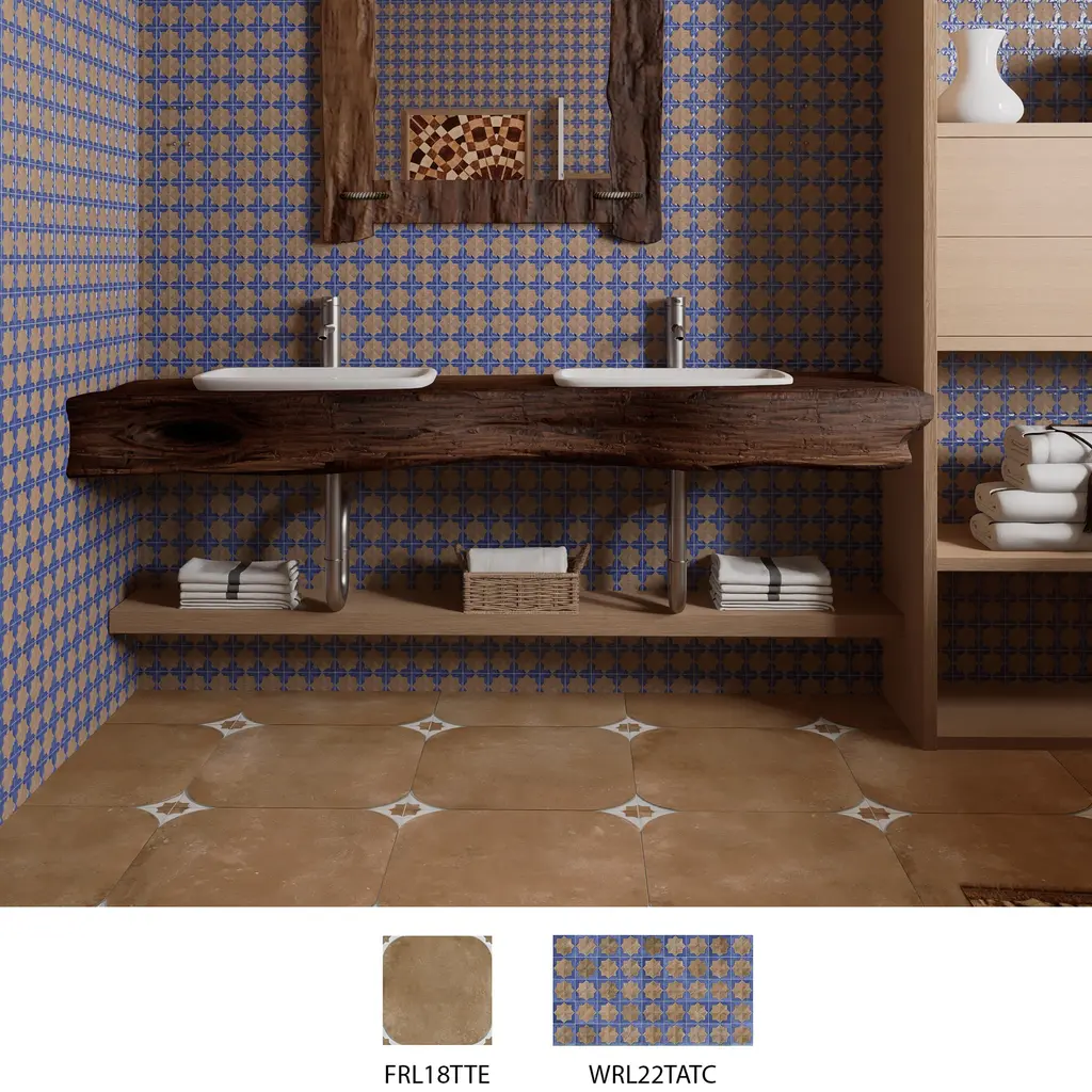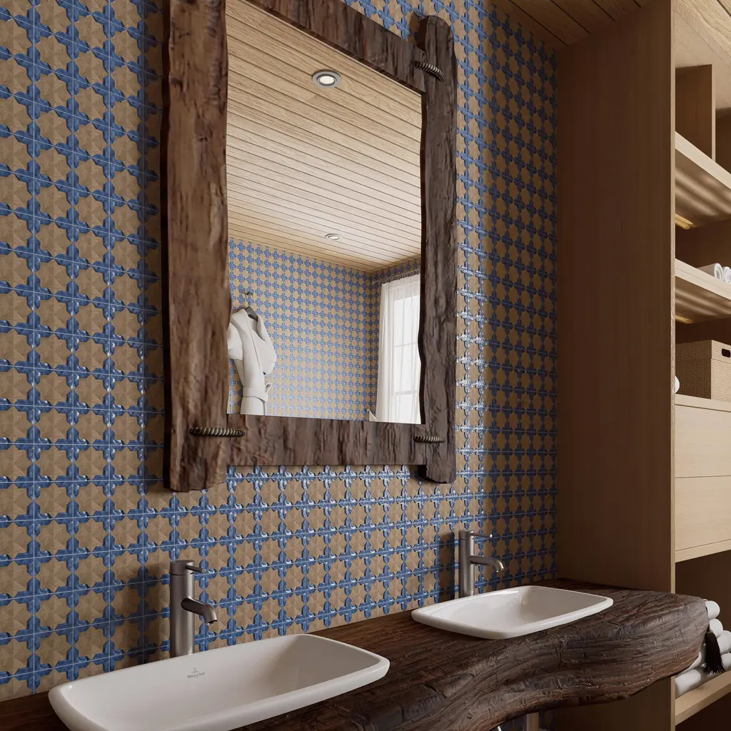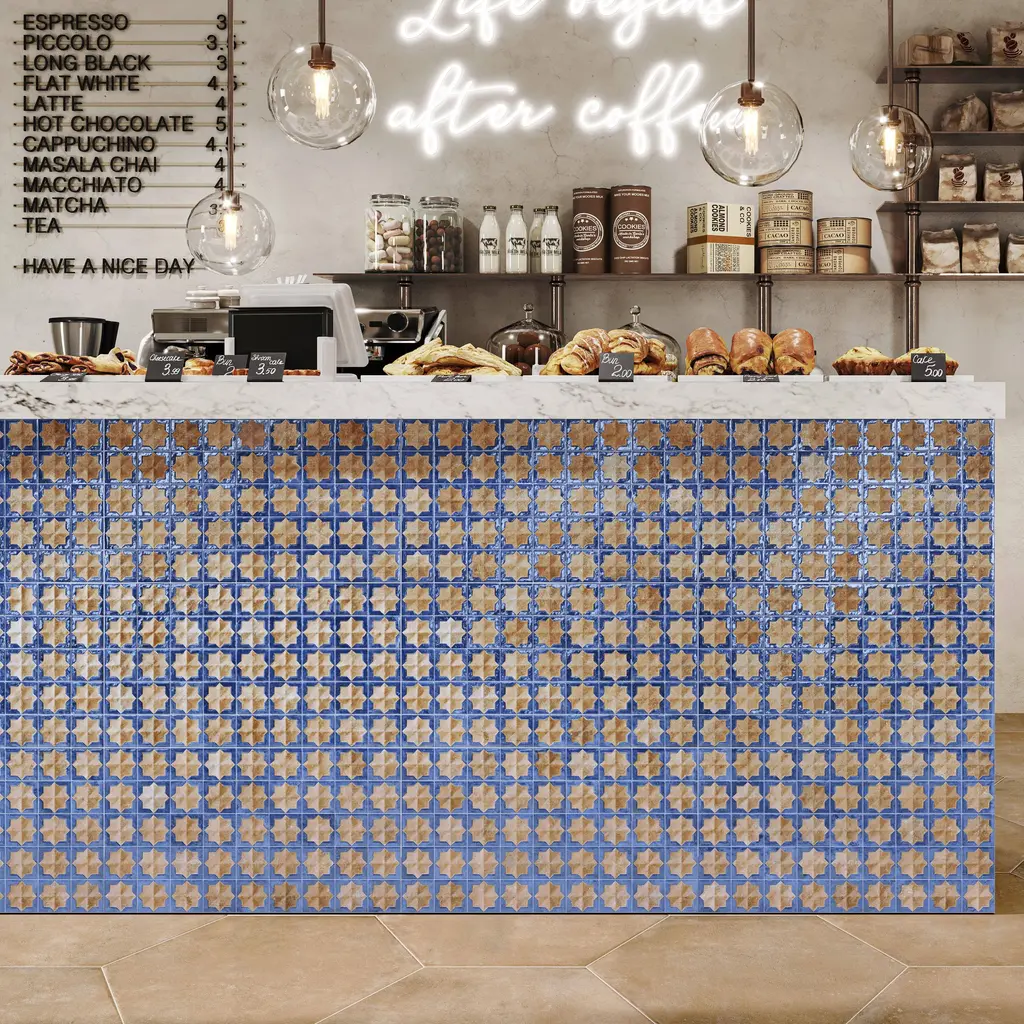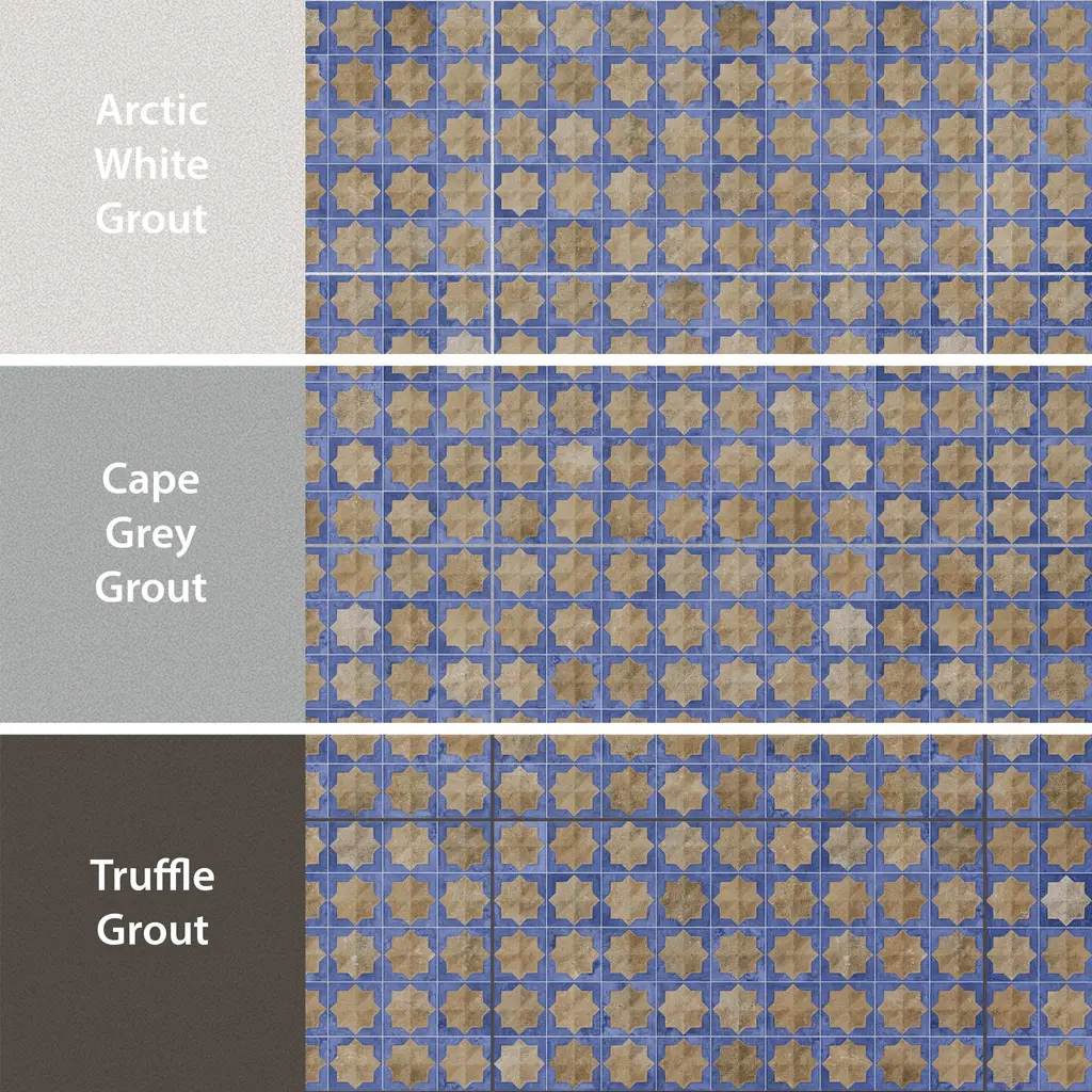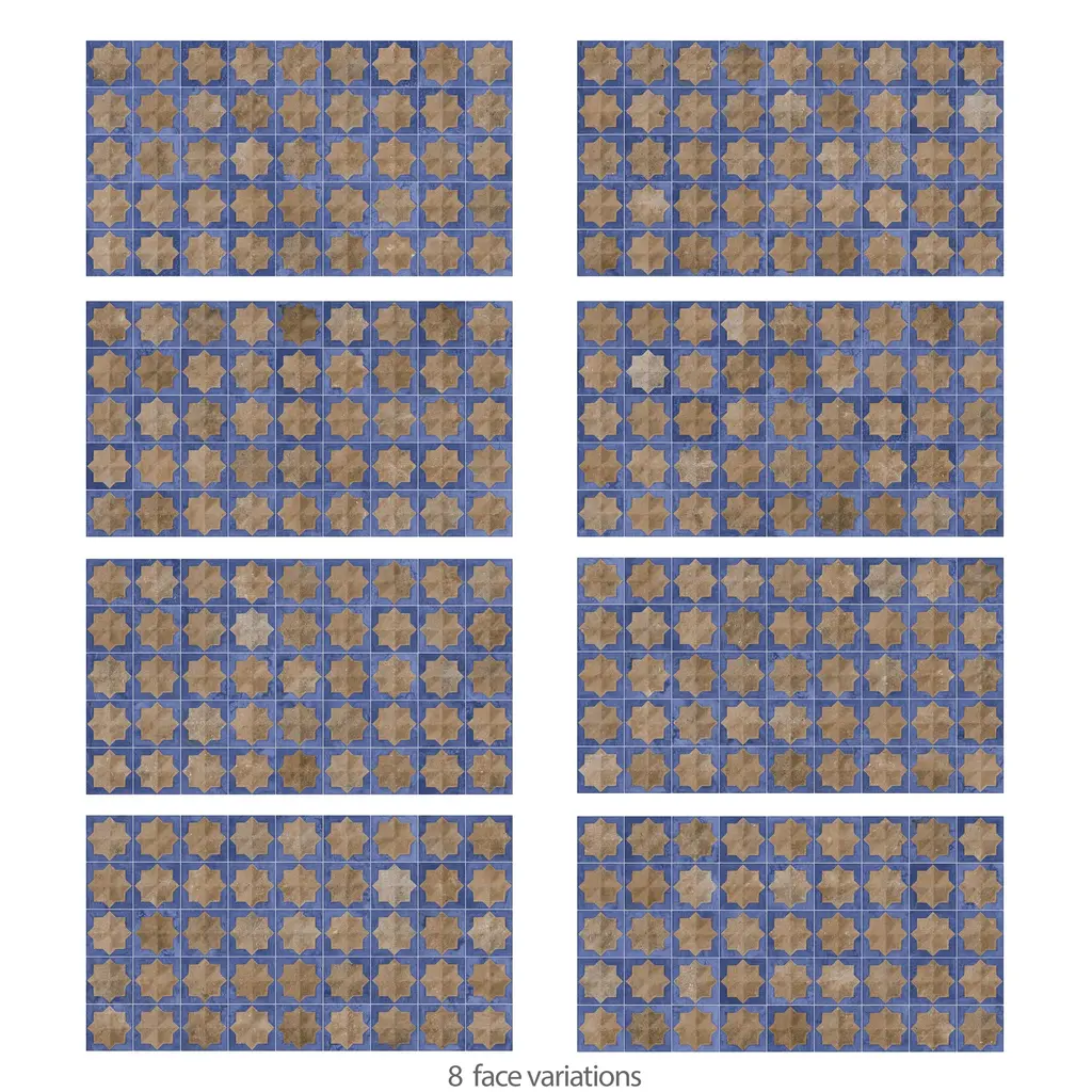 Replicating a terra cotta look, our Tetuan Astre Terra Cobalt Porcelain Wall Tile features a mixed textured finish, providing decorative appeal that adapts to a variety of stylistic contexts. Capture the essence of Moroccan art and architecture with the Tetuan Porcelain Tile Collection, featuring a matte-gloss contrast, Zellige-inspired star wall tiles and matte terracotta floor tiles, both with the latest glazing technologies for a dual-textured experience. Containing 8 different print variations that are randomly distributed throughout each case, this brown rectangle tile offers a one-of-a-kind look. With its impervious, frost-resistant features, this tile is an ideal selection for both indoor and outdoor commercial and residential installations, including kitchens, bathrooms, backsplashes, showers, hallways and fireplace facades. This tile is a perfect choice on its own or paired with other products in the Tetuan Collection. Tile is the better choice for your space! 13.02 square feet, 7 pieces per case. Case weight is 60.6 lbs. Grade 1, first-quality porcelain tile for wall use 12.13 in. width x 21.88 in. length x 0.35 in. thick Glazed, mixed texture with a mixed finish and slight variation in tone PEI Rating 0 is suitable for wall use only Impervious tiles have a water absorption of less than 0.5% for indoor and outdoor use and are frost resistant DCOF value is not available for this product. Please reference the PEI and MOHS rating for installation. Completely frost resistant for indoor or outdoor applications; use a latex-modified thinset for acceptable bond strength Please note: Samples are not returnable