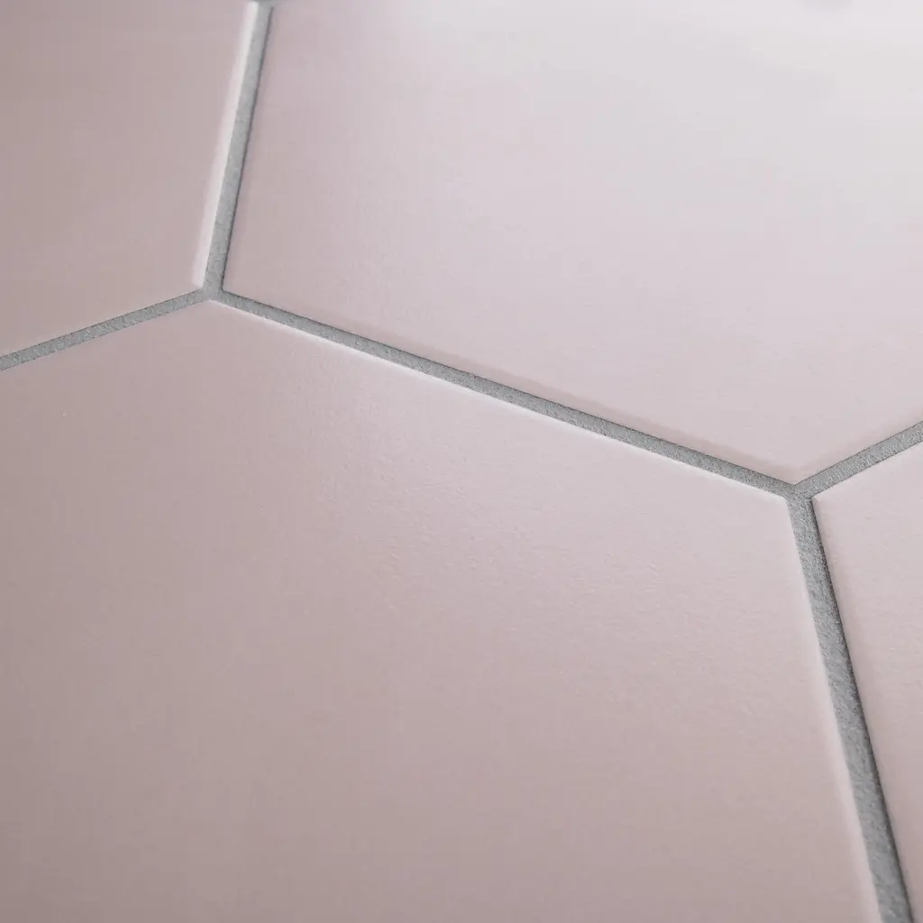 Offering a simplistic look, our Textile Basic Hex Rose Porcelain Floor and Wall Tile features a smooth, satin finish, providing decorative appeal that adapts to a variety of stylistic contexts. With its impervious, frost-resistant features, this pink hexagon tile is an ideal selection for a variety of spaces including indoor and outdoor residential installations, kitchens, bathrooms, backsplashes, showers, hallways, pools and fireplace facades. This tile is a perfect choice on its own or with other products in the Merola Tile, Textile Collection. To ensure optimal results, please consult with your installer and review the product specifications to confirm that this tile meets the specific needs of your project.