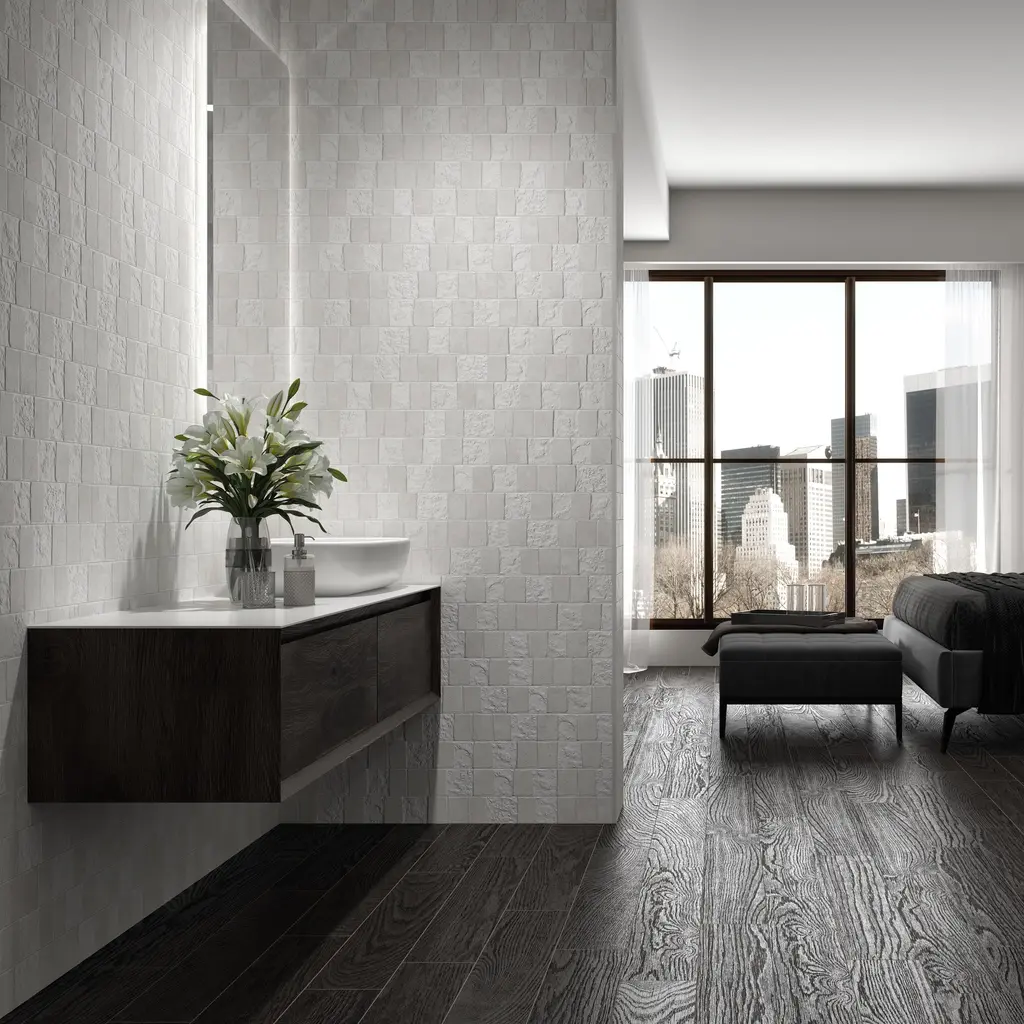 Replicating a terra cotta look, our Toscana Pienza Porcelain Floor and Wall Tile features a slightly textured, matte finish, providing decorative appeal that adapts to a variety of stylistic contexts. Containing 75 different print variations that are randomly distributed throughout each case, this white rectangle tile offers a one-of-a-kind look. With its impervious, frost-resistant features, this tile is an ideal selection for a variety of spaces including indoor and outdoor commercial and residential installations, kitchens, bathrooms, backsplashes, showers, hallways, entryways, patios, pools and fireplace facades. Discover more products from the Merola Tile Toscana Collection to complete your design. To ensure optimal results, please consult with your installer and review the product specifications to confirm that this tile meets the specific needs of your project. 11.57 square feet, 13 pieces per case. Case weight is 42.09 lbs. Grade 1, first-quality porcelain tile for floor and wall use 7.88 in. width x 15.88 in. length x 0.33 in. thick Glazed, slightly textured finish with a low sheen and moderate variation in tone PEI Rating V is suitable for both residential and high-traffic commercial use including extra heavy-duty floors and areas subject to severe pedestrian traffic over sustained periods with some dirt such as shopping centers, airport concourses, public walkways and industrial applications Impervious tiles have a water absorption of less than 0.5% for indoor and outdoor use and are frost resistant This tile is ADA approved for slip resistance with a DCOF value of 0.42 or higher. Completely frost resistant for indoor or outdoor applications; use a latex-modified thinset for acceptable bond strength Please note: A sample of this product may be a partial piece cut from the full size tile in order to provide an affordable and convenient way for customers to judge the quality and finish of this item. Samples are not returnable.