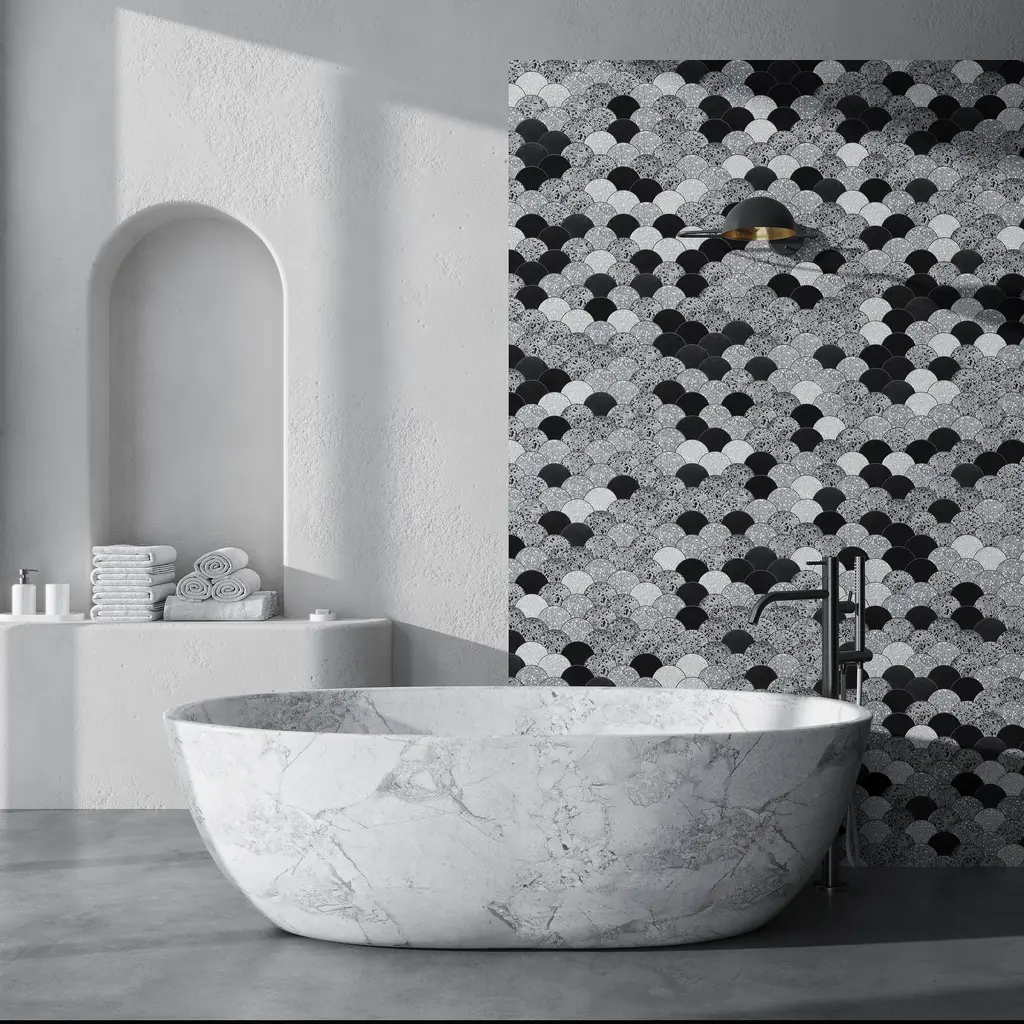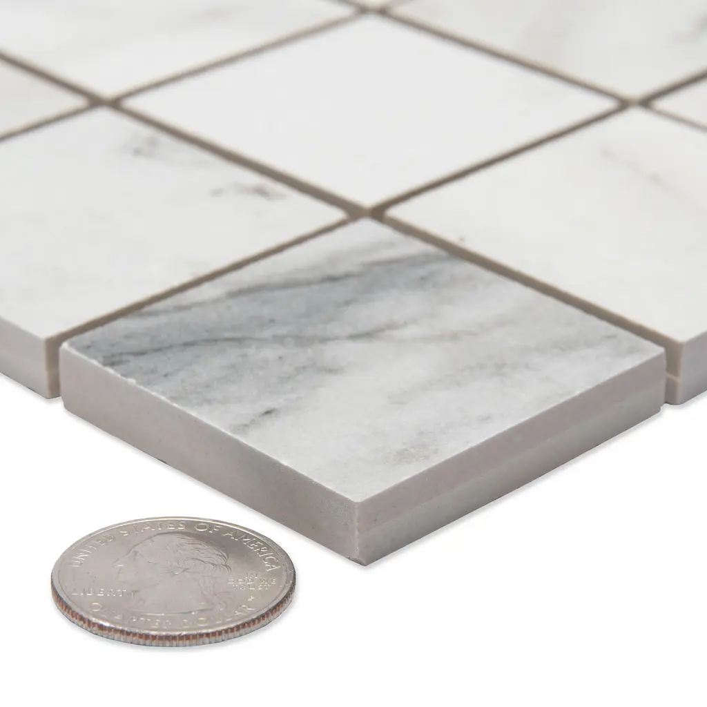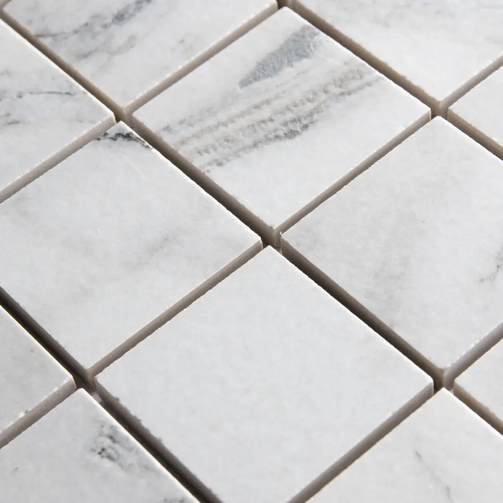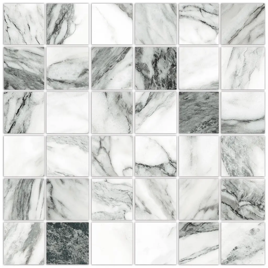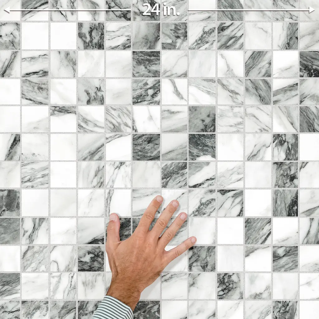 Capturing the appearance of a marble look, our Touche 2 in. Square Zebre Porcelain Floor and Wall Tile features a slightly textured, satin finish, providing decorative appeal that adapts to a variety of stylistic contexts. Inspired by high-end luxury marble, the Touche Collection captures porcelain's durability and realistic undulation, offering a bold, dramatic aesthetic with rectified edges, creating a timeless, sophisticated ambiance for serene, opulent experiences in any setting. Containing 2 different print variations that are randomly distributed throughout each case, this black square tile offers a one-of-a-kind look. With its impervious, frost-resistant features, this mosaic is an ideal selection for a variety of spaces including indoor and outdoor commercial and residential installations, kitchens, bathrooms, backsplashes, showers, hallways, entryways, patios and fireplace facades. This tile is a perfect choice on its own or with other products in the Merola Tile, Touche Collection. To ensure optimal results, please consult with your installer and review the product specifications to confirm that this tile meets the specific needs of your project.