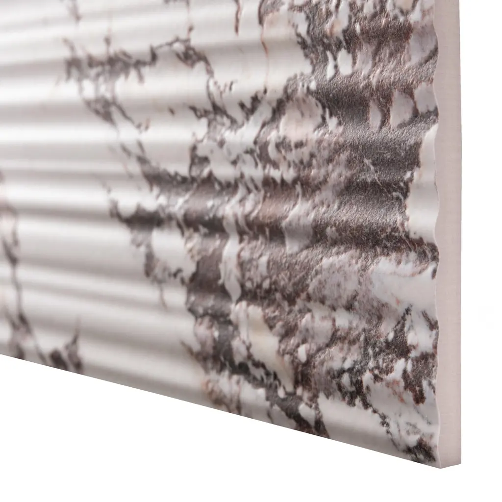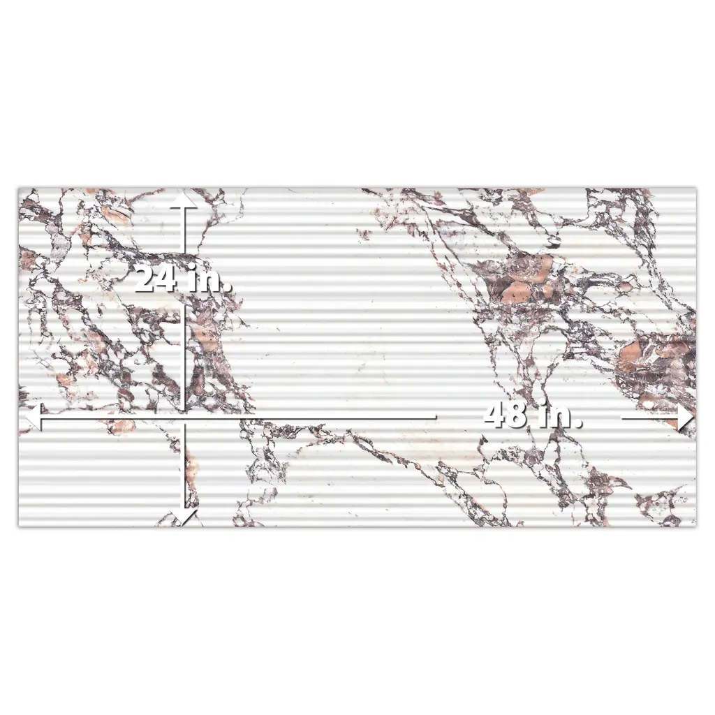 Offering a fluted look, our Touche Pleated Deco Rubis Porcelain Floor and Wall Tile features a slightly textured, satin finish, providing decorative appeal that adapts to a variety of stylistic contexts. Inspired by high-end luxury marble, the Touche Collection captures porcelain's durability and realistic undulation, offering a bold, dramatic aesthetic with rectified edges, creating a timeless, sophisticated ambiance for serene, opulent experiences in any setting. Containing 16 different print variations that are randomly distributed throughout each case, this red rectangle tile offers a one-of-a-kind look. With its impervious, frost-resistant features, this tile is an ideal selection for a variety of spaces including indoor and outdoor commercial and residential installations, kitchens, bathrooms, backsplashes, showers, hallways, entryways, patios and fireplace facades. This tile is a perfect choice on its own or with other products in the Merola Tile, Touche Collection. To ensure optimal results, please consult with your installer and review the product specifications to confirm that this tile meets the specific needs of your project.
