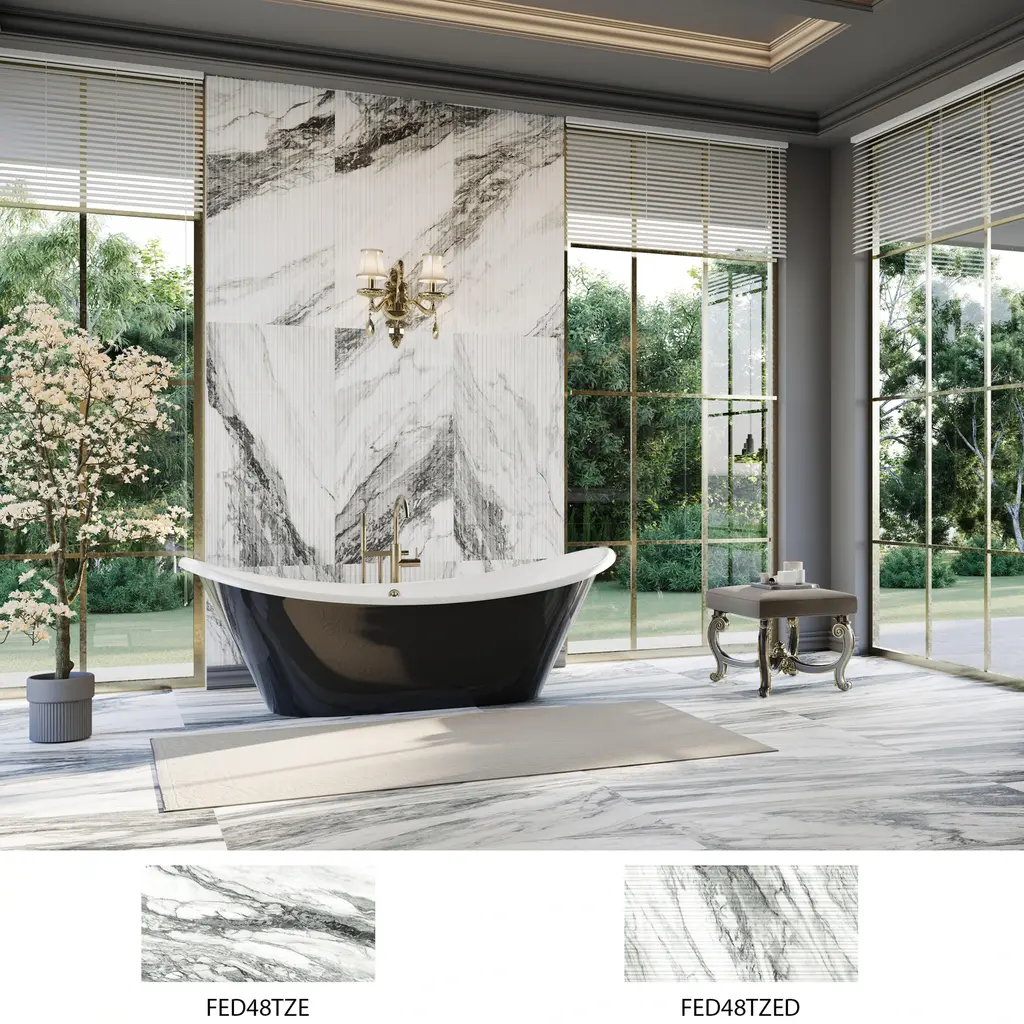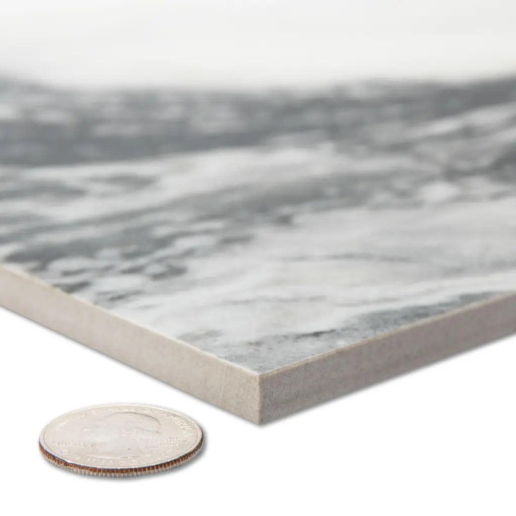 Capturing the appearance of a marble look, our Touche Zebre Porcelain Floor and Wall Tile features a slightly textured, satin finish, providing decorative appeal that adapts to a variety of stylistic contexts. Inspired by high-end luxury marble, the Touche Collection captures porcelain's durability and realistic undulation, offering a bold, dramatic aesthetic with rectified edges, creating a timeless, sophisticated ambiance for serene, opulent experiences in any setting. Containing 16 different print variations that are randomly distributed throughout each case, this black rectangle tile offers a one-of-a-kind look. With its impervious, frost-resistant features, this tile is an ideal selection for a variety of spaces including indoor and outdoor commercial and residential installations, kitchens, bathrooms, backsplashes, showers, hallways, entryways, patios and fireplace facades. This tile is a perfect choice on its own or with other products in the Merola Tile, Touche Collection. To ensure optimal results, please consult with your installer and review the product specifications to confirm that this tile meets the specific needs of your project.