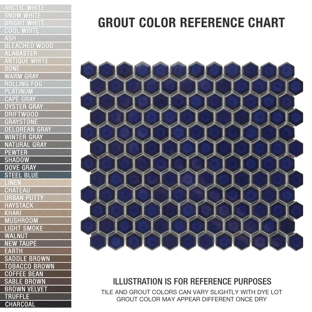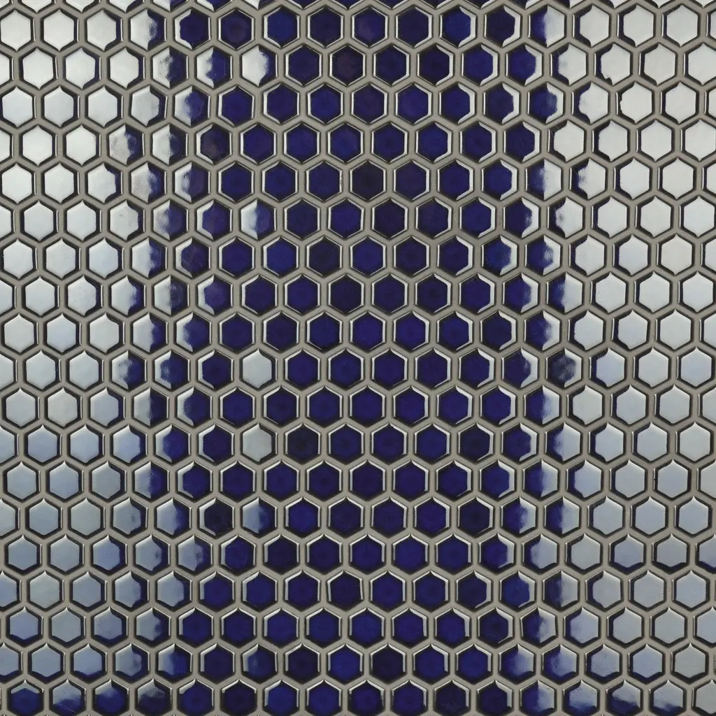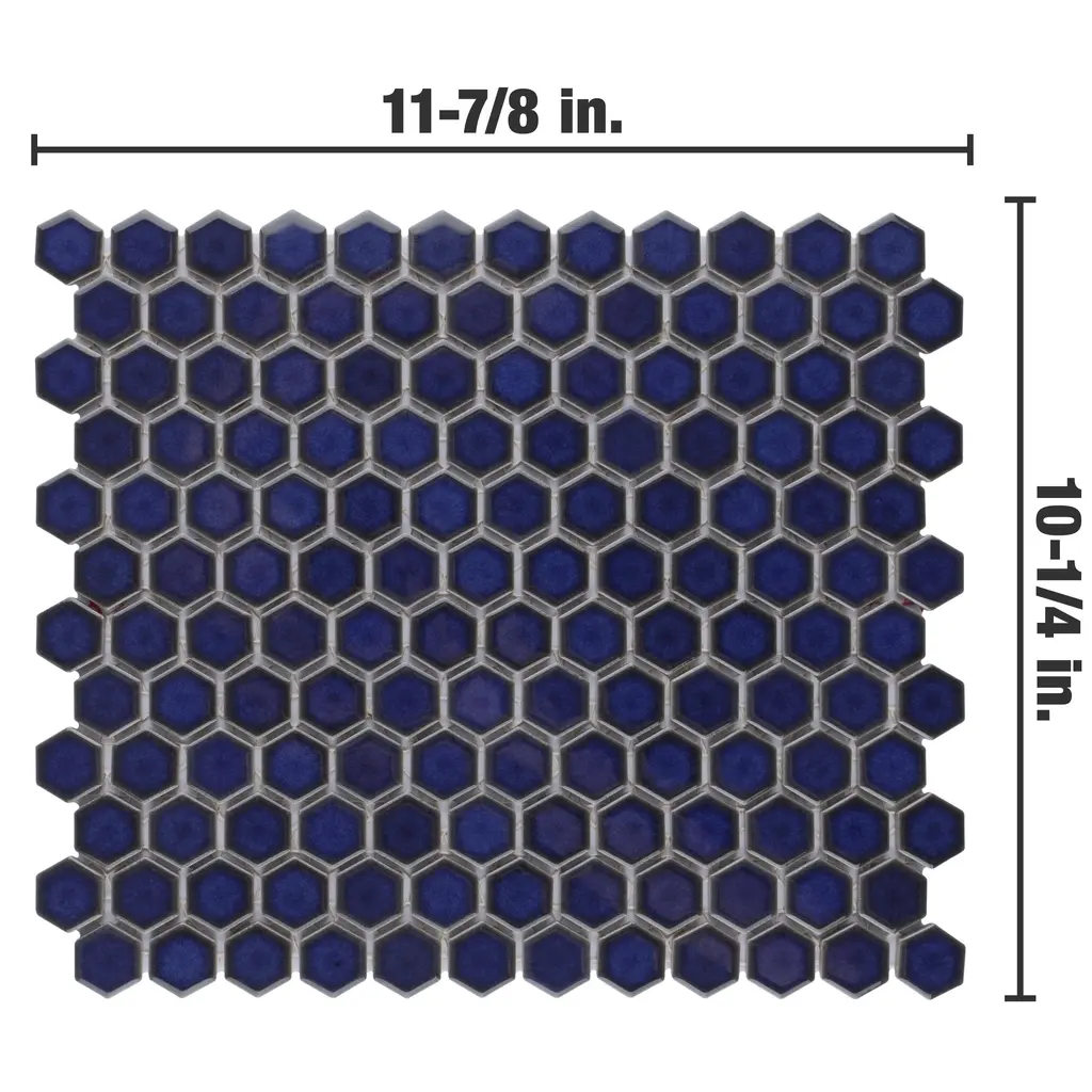 Our Tribeca 1" Hex Glossy Cobalt Porcelain Floor and Wall Mosaic Tile instantly elevates spaces through a refreshing dose of geometric design. With subtle variations in color tone that gradually fade to black around the border, each piece is truly unique. Its rich reactive glaze echoes dark to deep midnight blue hues with a high-gloss finish that is unique yet simplistic enough to integrate into any design, ranging from traditional style renovations to modern home projects. Its impervious and frost-resistant features make this an ideal tile for both indoor and outdoor residential use, including backsplashes, bathrooms, showers and kitchens. Tile is the better choice for your space. This tile is made from natural ingredients, making it a healthy choice as it is free from allergens, VOCs, formaldehyde and PVC. 8.6 square feet, 10 pieces per case. Case weight is 17.81 lbs. Grade 1, first-quality porcelain tile for floor and wall use 10.25 in. width x 11.88 in. length x 0.23 in. thick mesh-mounted mosaic Glazed, smooth finish with a high sheen and slight variation in tone PEI Rating II is suitable for all interior walls and light foot traffic such as powder rooms Impervious tiles have a water absorption of less than 0.5% for indoor and outdoor use and are frost resistant This tile has a COF wet rating less than or equal to 0.50 and is considered to have a marginally low skid resistance. This tile is not ADA approved for slip resistance. Completely frost resistant for indoor or outdoor applications; use a latex-modified thinset for acceptable bond strength Please note: A sample of this product may be a partial piece cut from the full size tile in order to provide an affordable and convenient way for customers to judge the quality and finish of this item. Samples are not returnable.