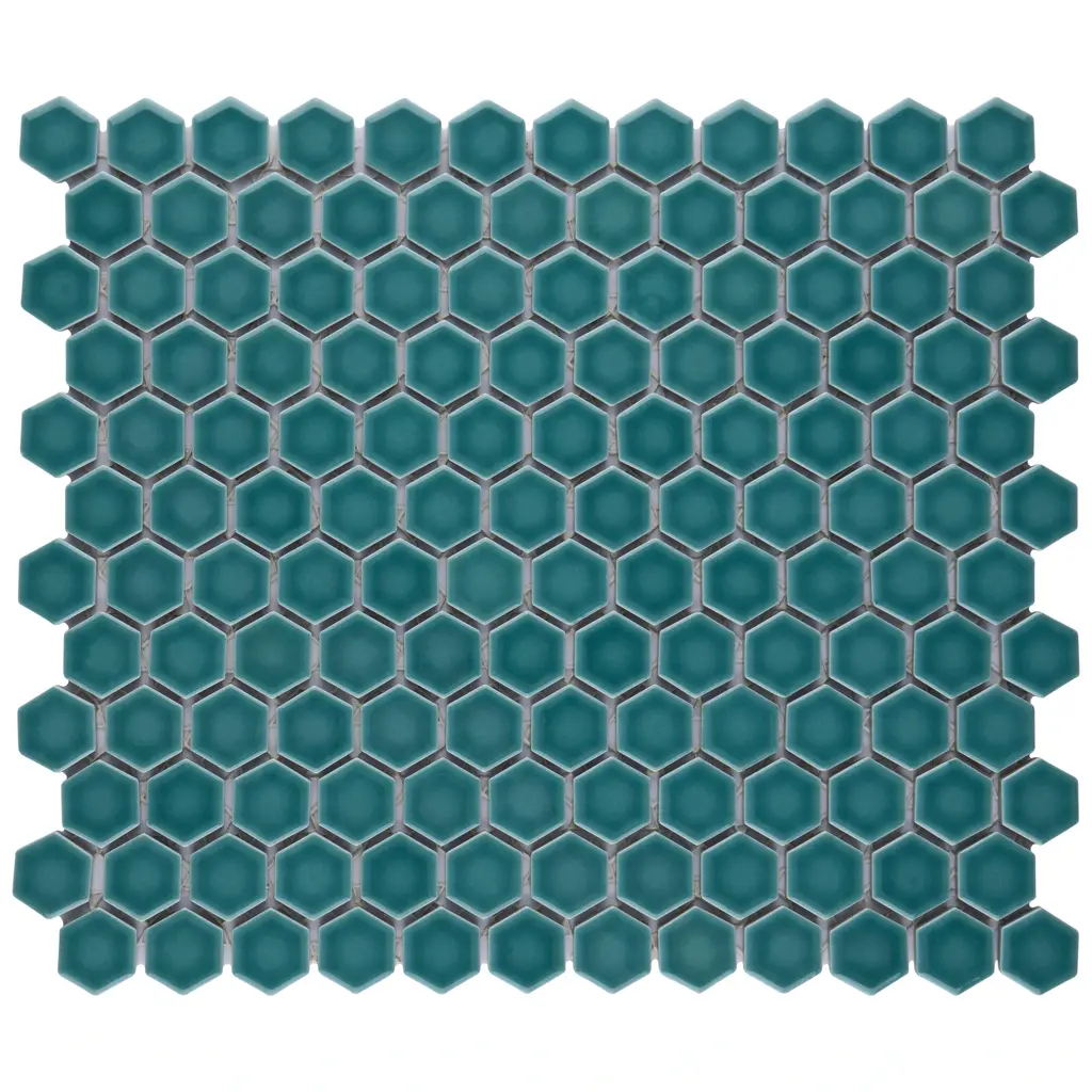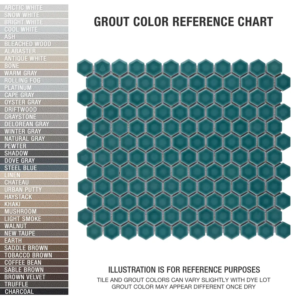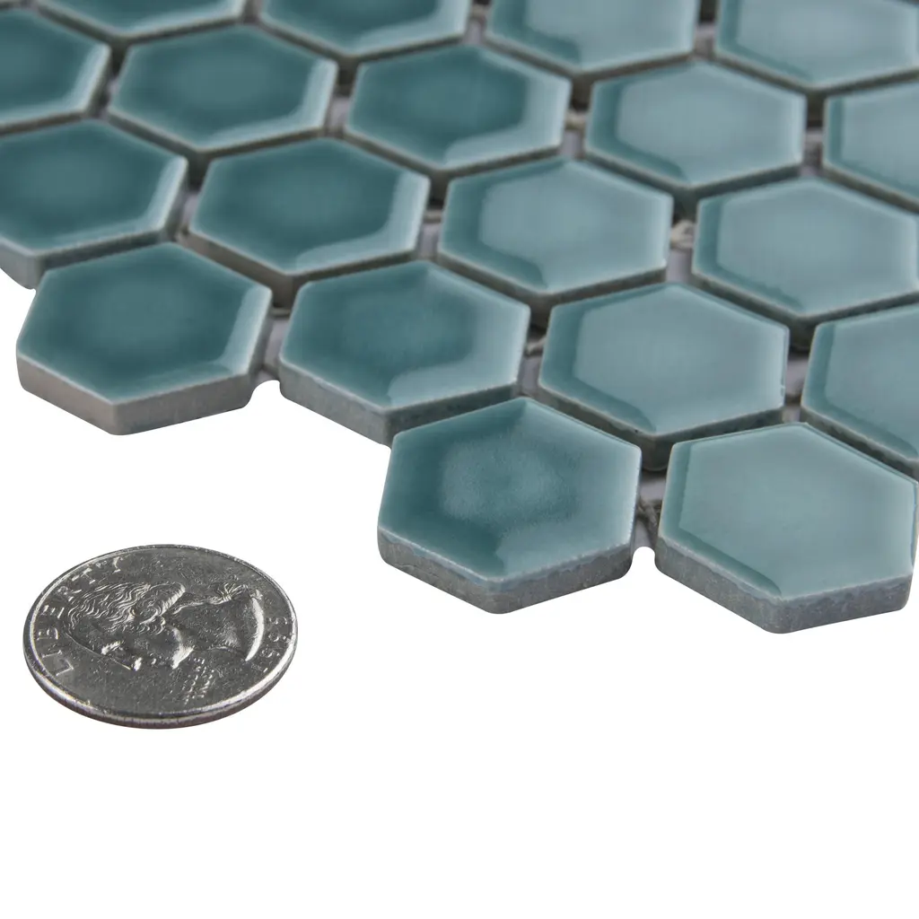 Lending a unique touch of color, our Tribeca 1 in. Hex Jade Porcelain Mosaic Floor and Wall Tile instantly elevates spaces through a refreshing dose of vivid geometric design. As an innovative twist on the classic hexagon, this mosaic is comprised of hexagonal chips in jade green tones with a smooth surface. Glossy hexagons are arranged on an interlocking mesh to create a seamless installation. This minimalistic geometric porcelain mosaic is unique yet simplistic enough to integrate into any design, ranging from traditional style renovations to modern home projects. Its impervious and frost-resistant features make this an ideal tile for both indoor and outdoor residential use, including backsplashes, bathrooms, showers and kitchens. This tile is a perfect choice on its own or paired with other products in the Tribeca Hex Mosaic Collection. Tile is the better choice for your space. This tile is made from natural ingredients, making it a healthy choice as it is free from allergens, VOCs, formaldehyde and PVC. 8.6 square feet, 10 pieces per case. Case weight is 17.81 lbs. Grade 1, first-quality porcelain tile for floor and wall use 10.25 in. width x 11.88 in. length x 0.23 in. thick mesh-mounted mosaic Glazed, smooth finish with a high sheen and slight variation in tone PEI Rating II is suitable for all interior walls and light foot traffic such as powder rooms Impervious tiles have a water absorption of less than 0.5% for indoor and outdoor use and are frost resistant This tile has a COF wet rating less than or equal to 0.50 and is considered to have a marginally low skid resistance. This tile is not ADA approved for slip resistance. Completely frost resistant for indoor or outdoor applications; use a latex-modified thinset for acceptable bond strength Please note: Samples are not returnable