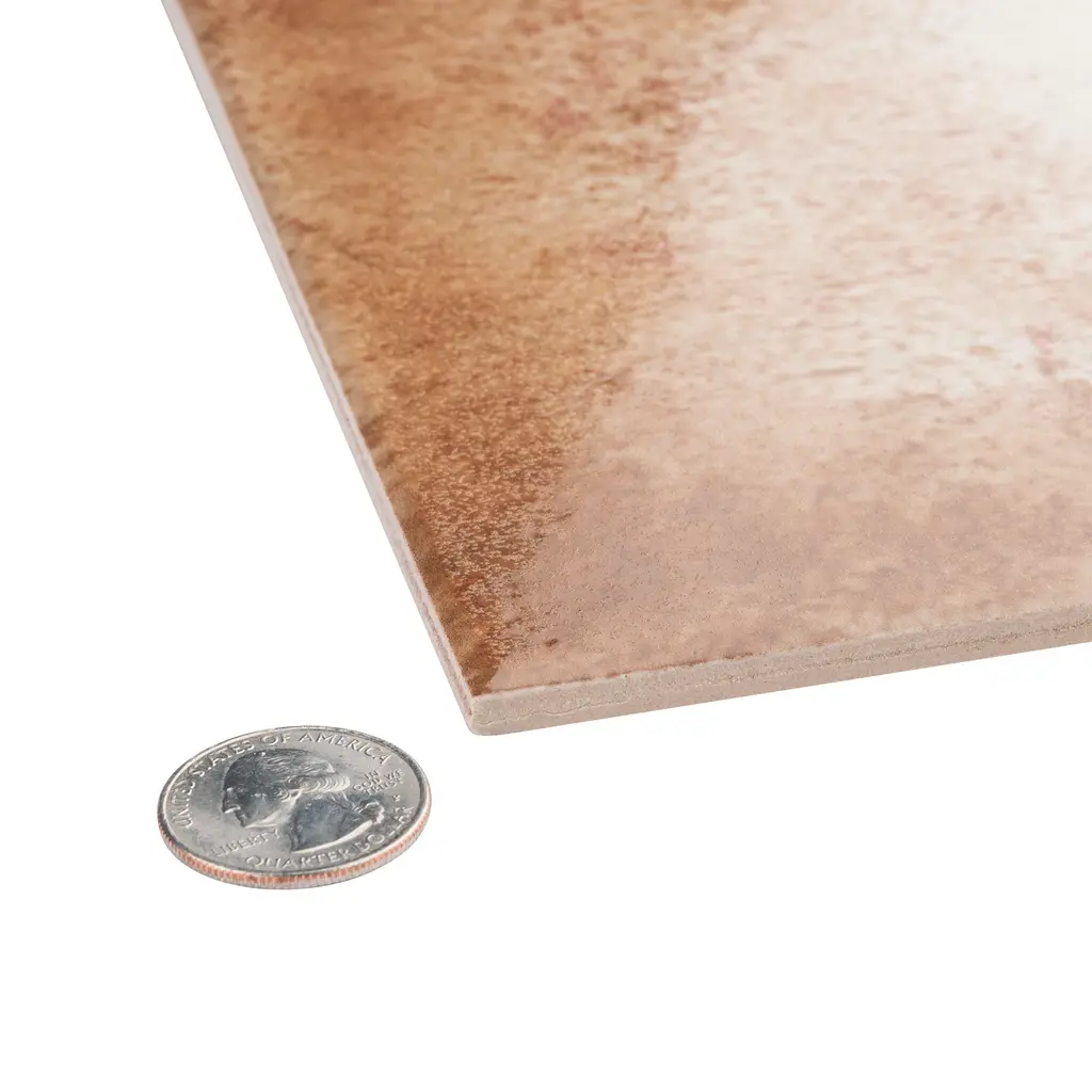 Bring the beauty of science to your living space with our True Ceramic Floor and Wall Tile. This tile recreates the natural art of chemical changes and their reactions, resulting in a variety of colors and random patterns. Featuring colors ranging from blue, pink, orange and everything in between, it is unique in many ways. Being that each piece is so different, you will always have a truly distinctive installation. The glazed, high sheen tile is great for modern or contemporary decors. Use alone or as an accent to many of our other products. It is suitable for indoor and outdoor installations including heavy-duty residential and commercial kitchens. 10.75 square feet, 25 pieces per case. Case weight is 26.85 lbs. Grade 1, first-quality ceramic tile for floor and wall use 7.75 in. width x 7.75 in. length x 0.25 in. thick Glazed, smooth finish with a high sheen and random variation in tone PEI Rating IV has high resistance to abrasion and is suitable for heavy-duty residential and commercial kitchens, hotels, exhibition and sales rooms with some dirt conditions Vitreous tiles have water absorption of more than 0.5% but less than 3% for indoor use and some outdoor applications and are frost resistant This tile has a COF wet rating less than or equal to 0.50 and is considered to have a marginally low skid resistance. This tile is not ADA approved for slip resistance. Completely frost resistant for indoor or outdoor applications; use a latex-modified thinset for acceptable bond strength Please note: A sample of this product may be a partial piece cut from the full size tile in order to provide an affordable and convenient way for customers to judge the quality and finish of this item. Samples are not returnable.