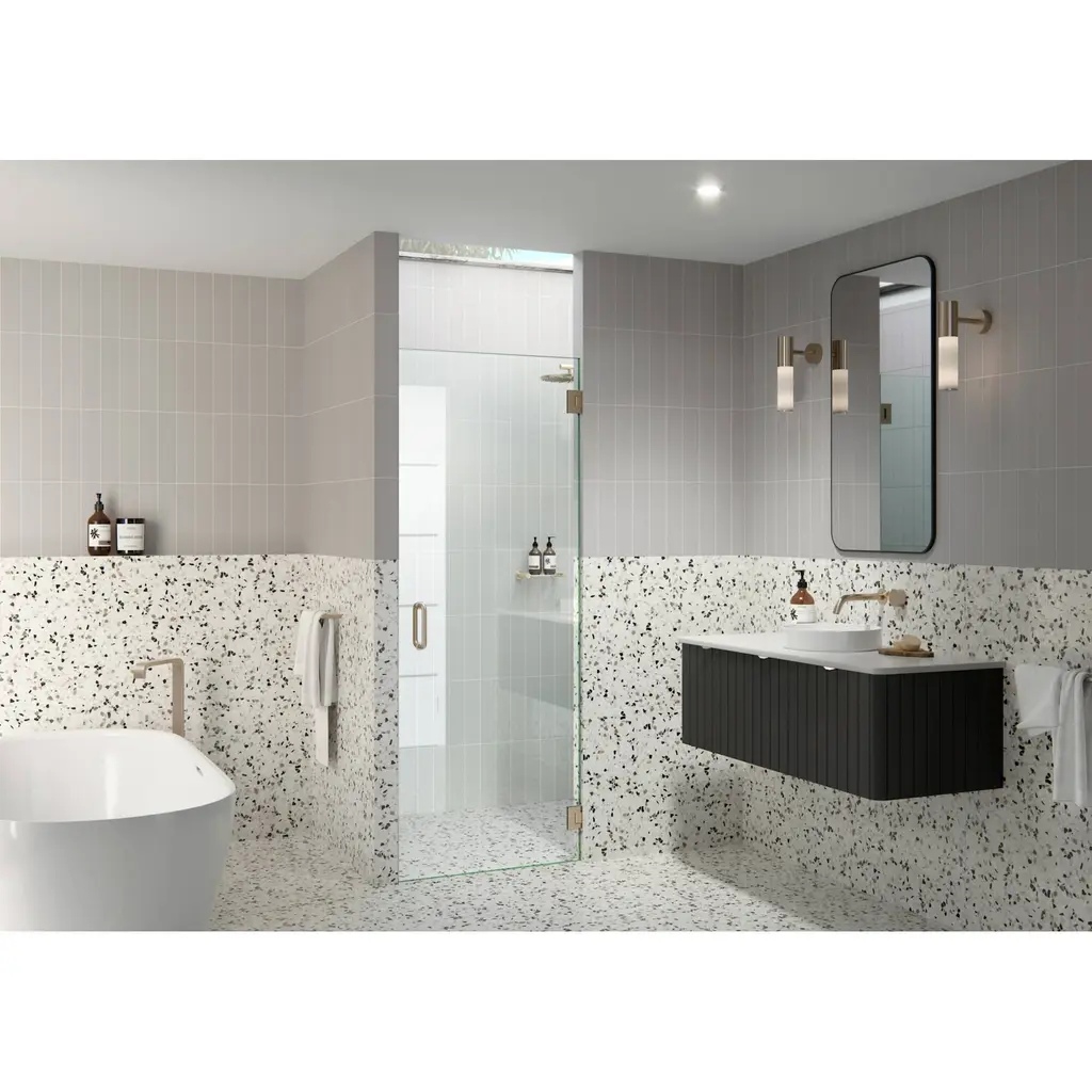 Offering a cement look, our Tucson Total White Porcelain Floor and Wall Tile features a medium textured, matte finish, providing decorative appeal that adapts to a variety of stylistic contexts. Containing 100 different print variations that are randomly distributed throughout each case, this white rectangle tile offers a one-of-a-kind look. With its impervious, frost-resistant features, this tile is an ideal selection for both indoor and outdoor commercial and residential installations, including kitchens, bathrooms, backsplashes, showers, hallways, entryways, patios and fireplace facades. This tile is a perfect choice on its own or paired with other products in the Tucson Collection. Tile is the better choice for your space! 8.29 square feet, 32 pieces per case. Case weight is 29.61 lbs. Grade 1, first-quality porcelain tile for floor and wall use 1.88 in. width x 17.75 in. length x 0.33 in. thick Glazed, medium textured finish with a low sheen and slight variation in tone PEI Rating V is suitable for both residential and high-traffic commercial use including extra heavy-duty floors and areas subject to severe pedestrian traffic over sustained periods with some dirt such as shopping centers, airport concourses, public walkways and industrial applications Impervious tiles have a water absorption of less than 0.5% for indoor and outdoor use and are frost resistant This tile is ADA approved for slip resistance with a DCOF value of 0.42 or higher. Completely frost resistant for indoor or outdoor applications; use a latex-modified thinset for acceptable bond strength Please note: A sample of this product may be a partial piece cut from the full size tile in order to provide an affordable and convenient way for customers to judge the quality and finish of this item. Samples are not returnable