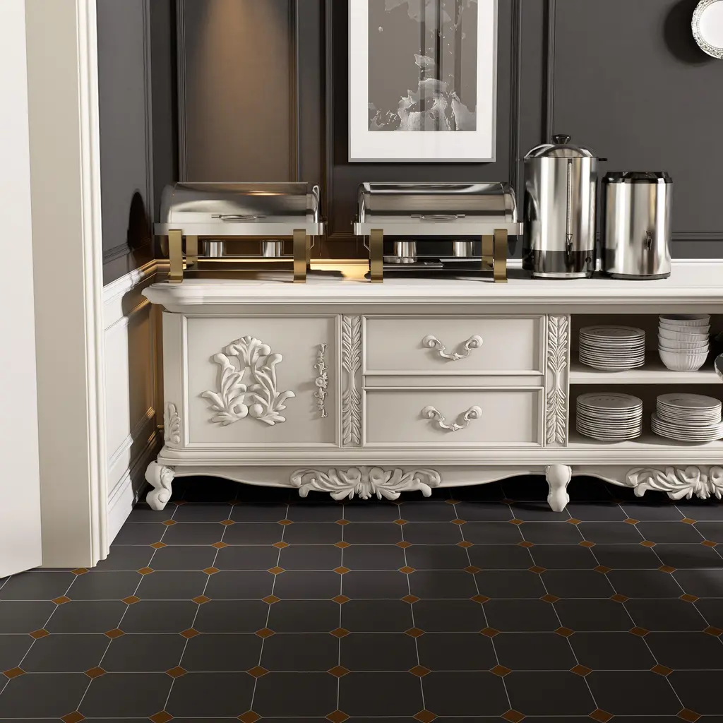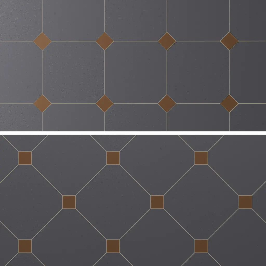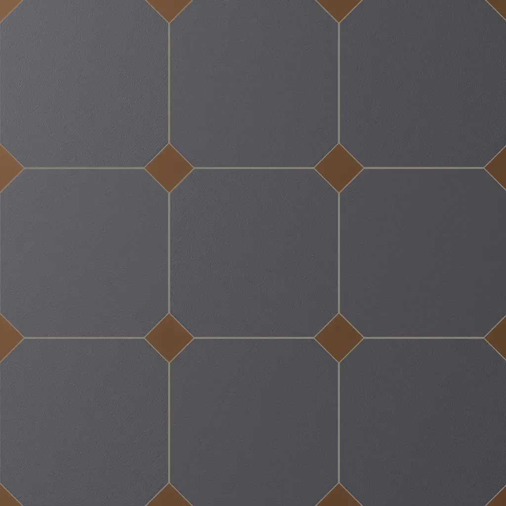 Offering a simplistic look, our Vaudeville Octagon Antracita with Taco Marron Porcelain Floor and Wall Tile features a slightly textured, matte finish, providing decorative appeal that adapts to a variety of stylistic contexts. Inspired by Victorian-era Vaudeville, these geometric octagon tiles with a matte finish and customizable vibrant colors capture timeless elegance and vintage charm, creating a sophisticated, lively space reminiscent of the colorful variety acts of Vaudeville theatres. Containing 4 different print variations that are randomly distributed throughout each case, this gray specialty tile offers a one-of-a-kind look. With its impervious, frost-resistant features, this tile is an ideal selection for a variety of spaces including indoor and outdoor residential installations, bathrooms, backsplashes, showers, hallways, pools and fireplace facades. This tile is a perfect choice on its own or with other products in the Merola Tile, Vaudeville Collection. To ensure optimal results, please consult with your installer and review the product specifications to confirm that this tile meets the specific needs of your project.