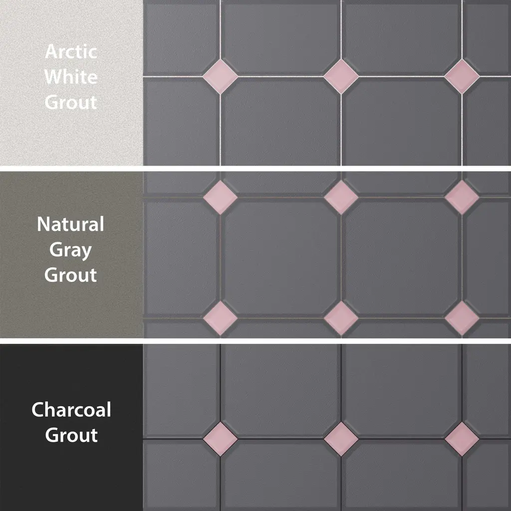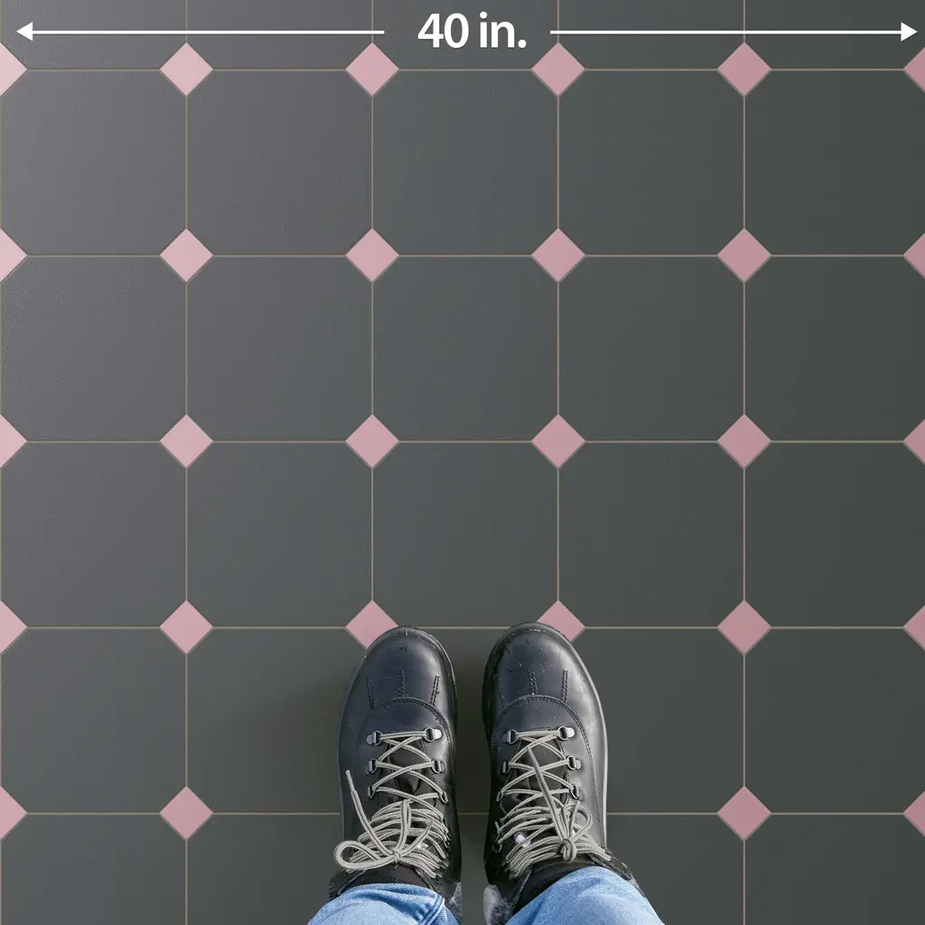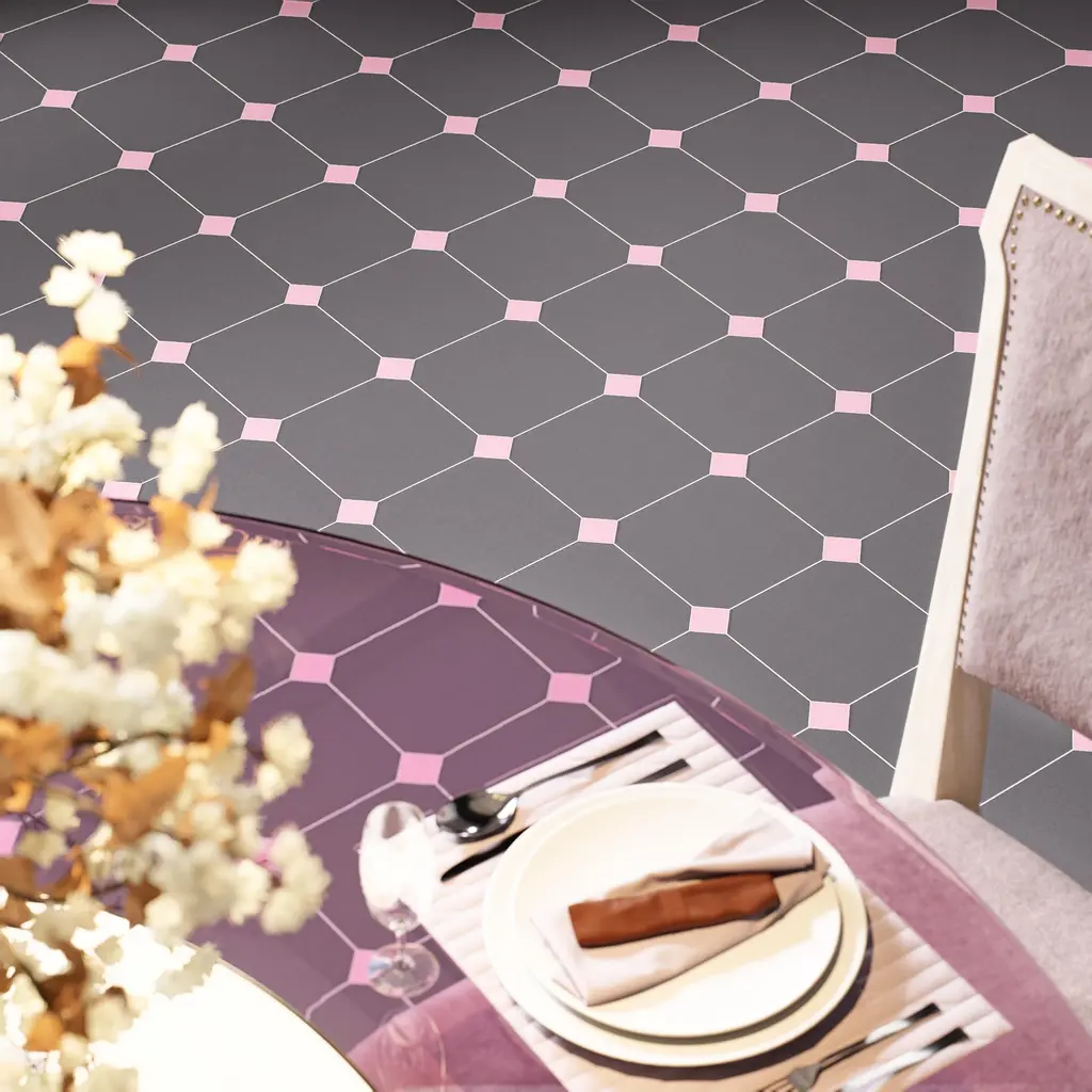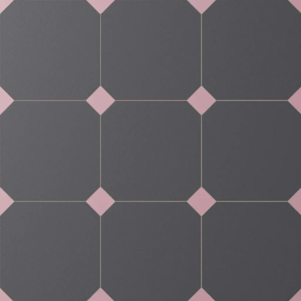 Offering a simplistic look, our Vaudeville Octagon Antracita with Taco Pink Porcelain Floor and Wall Tile features a slightly textured, matte finish, providing decorative appeal that adapts to a variety of stylistic contexts. Inspired by Victorian-era Vaudeville, these geometric octagon tiles with a matte finish and customizable vibrant colors capture timeless elegance and vintage charm, creating a sophisticated, lively space reminiscent of the colorful variety acts of Vaudeville theatres. Containing 4 different print variations that are randomly distributed throughout each case, this gray specialty tile offers a one-of-a-kind look. With its impervious, frost-resistant features, this tile is an ideal selection for a variety of spaces including indoor and outdoor residential installations, bathrooms, backsplashes, showers, hallways, pools and fireplace facades. This tile is a perfect choice on its own or with other products in the Merola Tile, Vaudeville Collection. To ensure optimal results, please consult with your installer and review the product specifications to confirm that this tile meets the specific needs of your project.