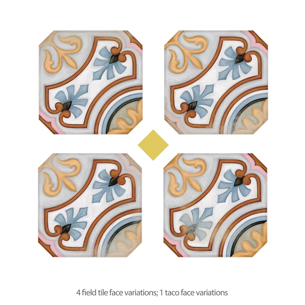 Merola Tile Vaudeville Octagon Deco Diglas With Taco Lima 7-7/8" X 7-7/8" Porcelain Floor And Wall Tile - Case (50 Tiles)