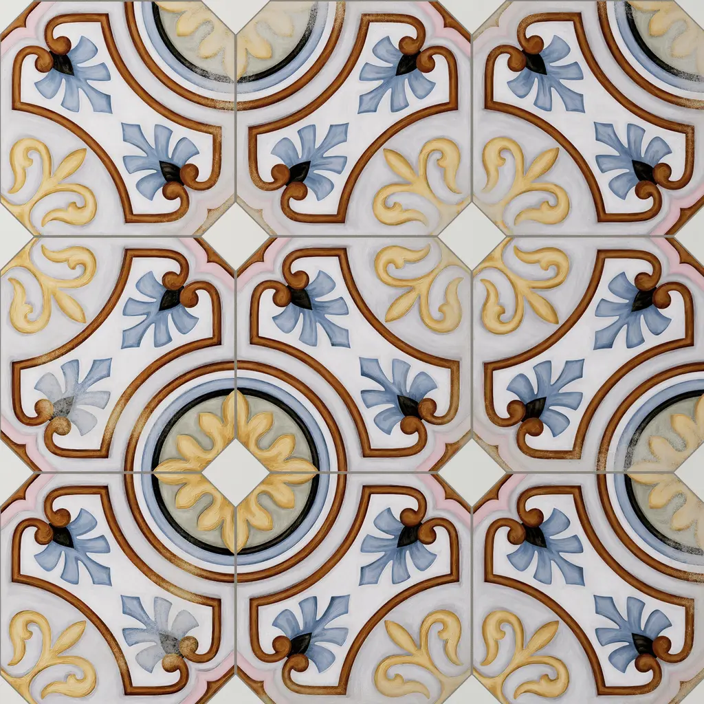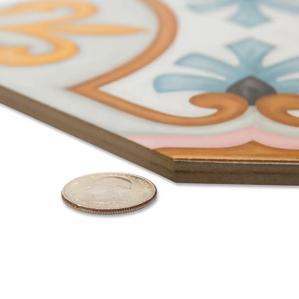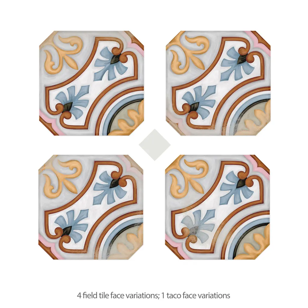 Merola Tile Vaudeville Octagon Deco Diglas With Taco Nacar 7-7/8" X 7-7/8" Porcelain Floor And Wall Tile - Case (50 Tiles)