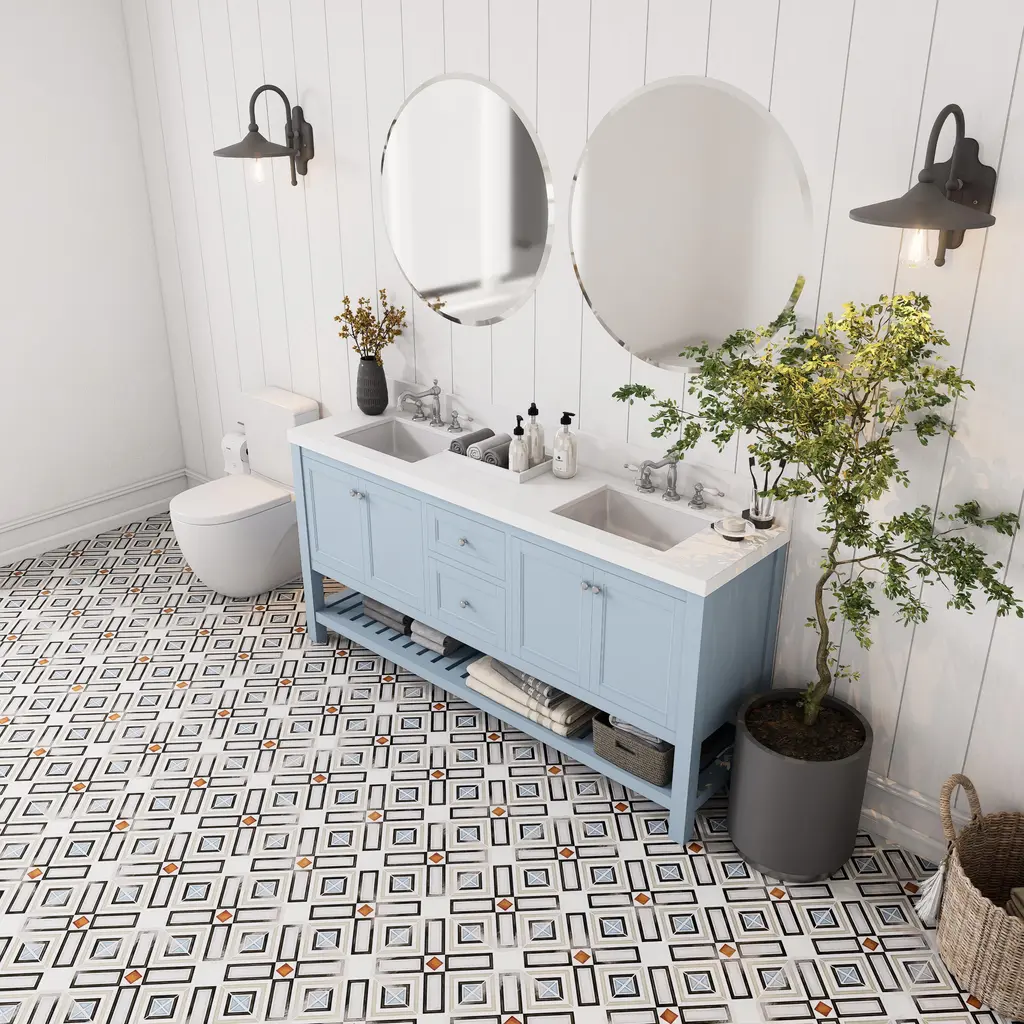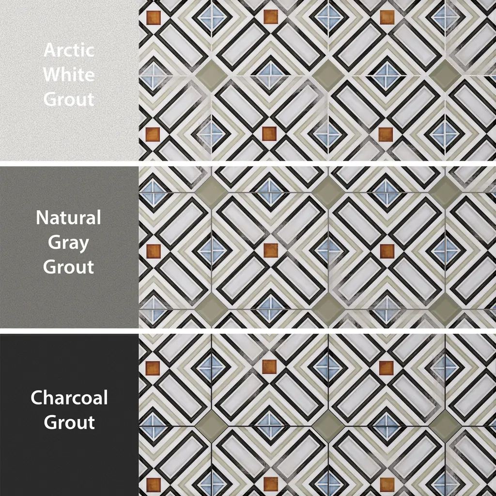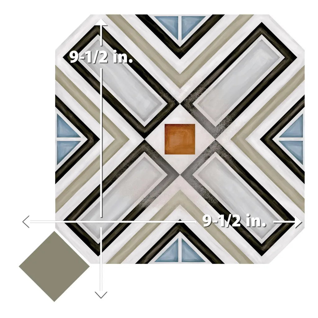 Inspired by a hand painted look, our Vaudeville Octagon Deco Ritter with Taco Oliva Porcelain Floor and Wall Tile features a slightly textured, matte finish, providing decorative appeal that adapts to a variety of stylistic contexts. Inspired by Victorian-era Vaudeville, these geometric octagon tiles with a matte finish and customizable vibrant colors capture timeless elegance and vintage charm, creating a sophisticated, lively space reminiscent of the colorful variety acts of Vaudeville theatres. Containing 5 different print variations that are randomly distributed throughout each case, this white specialty tile offers a one-of-a-kind look. With its impervious, frost-resistant features, this tile is an ideal selection for a variety of spaces including indoor and outdoor residential installations, kitchens, bathrooms, backsplashes, showers, hallways, pools and fireplace facades. This tile is a perfect choice on its own or with other products in the Merola Tile, Vaudeville Collection. To ensure optimal results, please consult with your installer and review the product specifications to confirm that this tile meets the specific needs of your project.