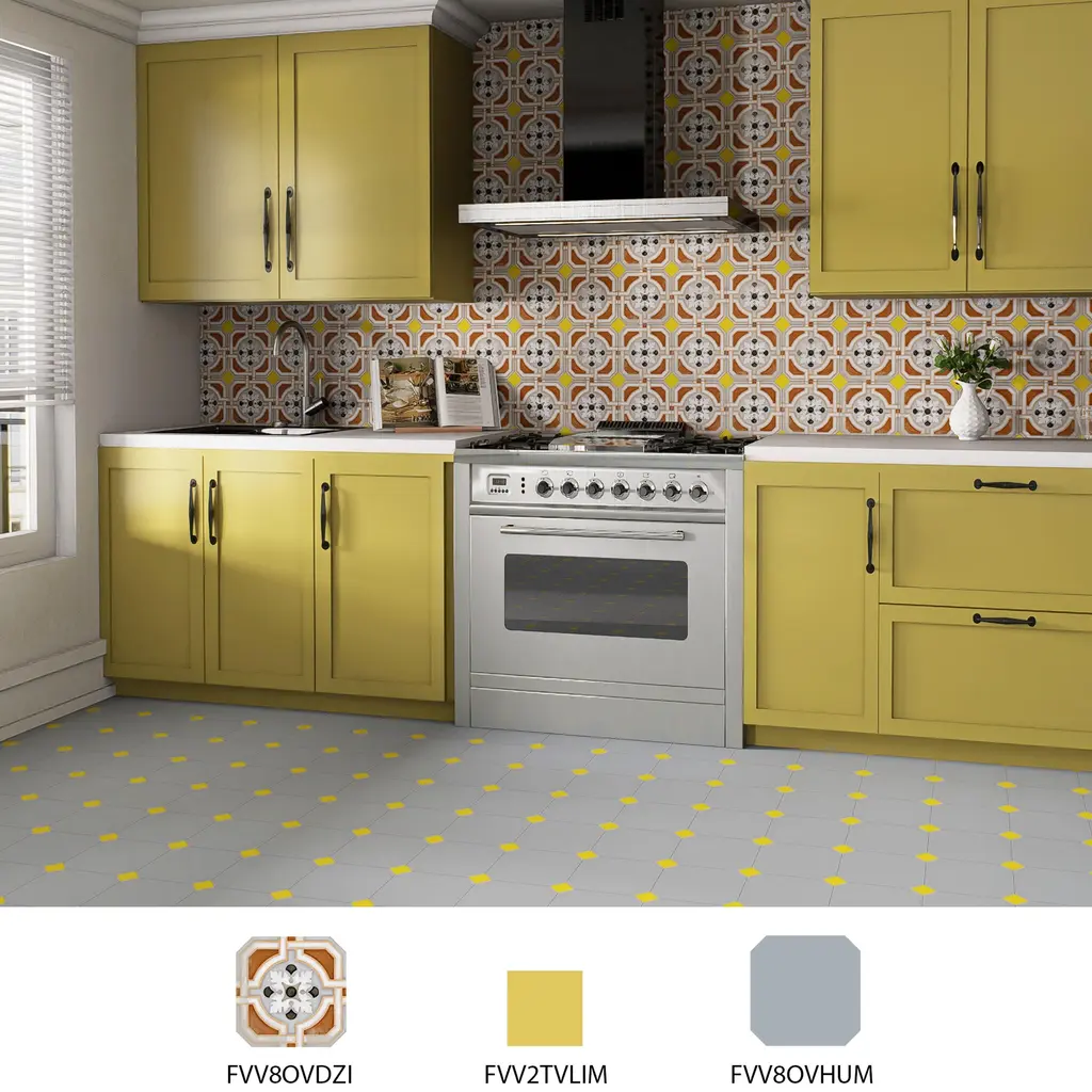Merola Tile Vaudeville Octagon Deco Zimmer With Taco Lima 7-7/8" X 7-7/8" Porcelain Floor And Wall Tile - Case (50 Tiles)