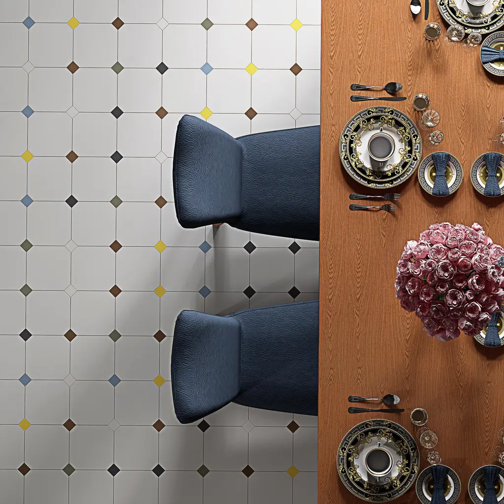 Offering a simplistic look, our Vaudeville Octagon Nacar with Taco Multi Porcelain Floor and Wall Tile features a slightly textured, matte finish, providing decorative appeal that adapts to a variety of stylistic contexts. Containing 8 different print variations that are randomly distributed throughout each case, this gray specialty tile offers a one-of-a-kind look. With its impervious, frost-resistant features, this tile is an ideal selection for a variety of spaces including indoor and outdoor residential installations, bathrooms, backsplashes, showers, hallways, pools and fireplace facades. This tile is a perfect choice on its own or with other products in the Merola Tile, Vaudeville Collection. To ensure optimal results, please consult with your installer and review the product specifications to confirm that this tile meets the specific needs of your project.