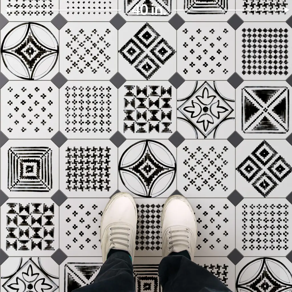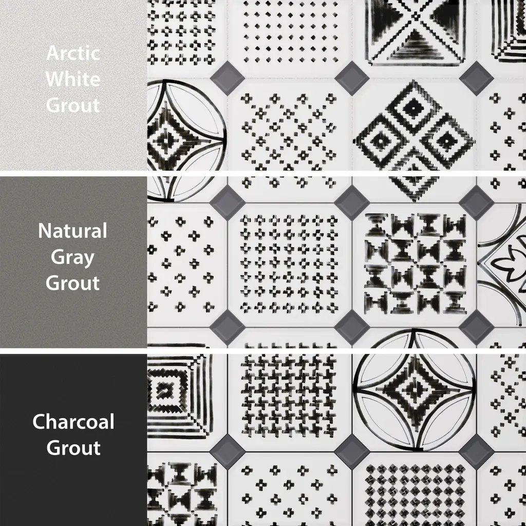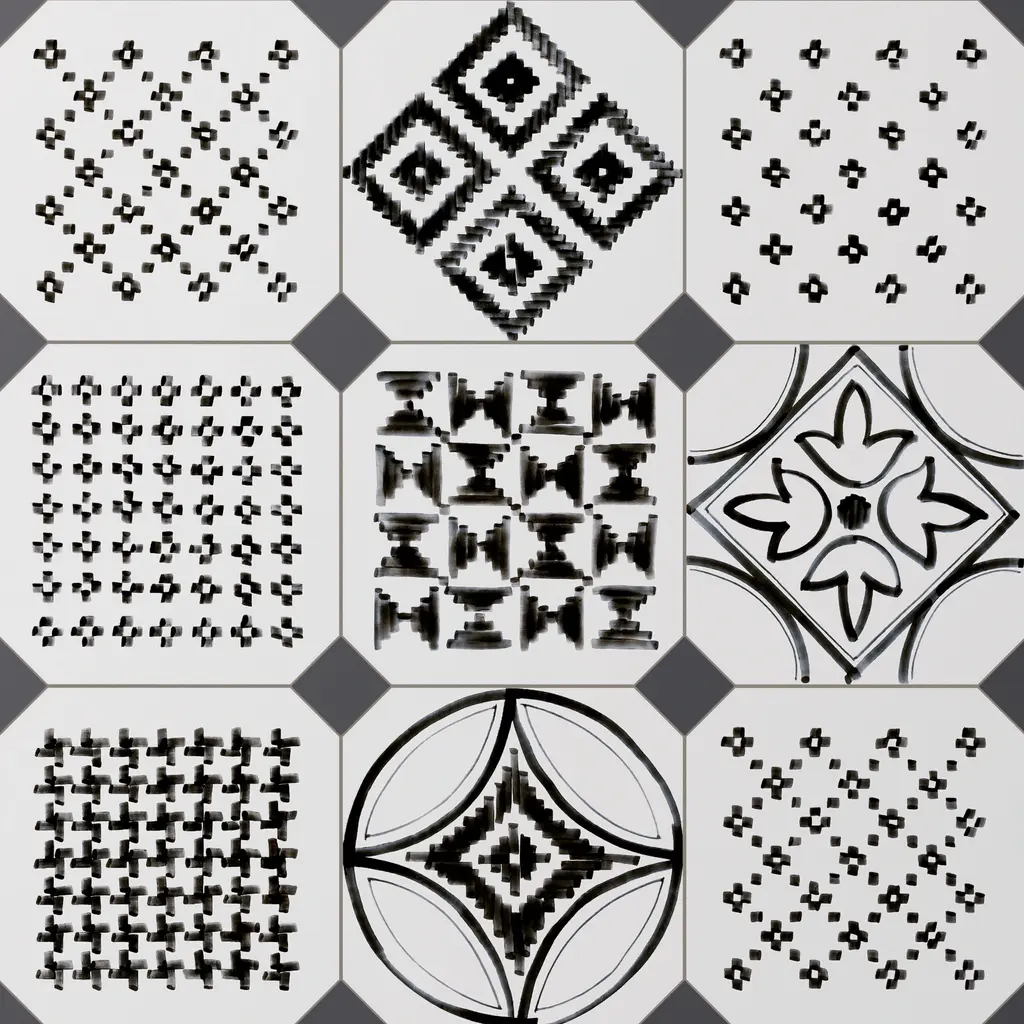 Inspired by a hand painted look, our Vaudeville Octagon Sombra with Taco Antracita Porcelain Floor and Wall Tile features a slightly textured, matte finish, providing decorative appeal that adapts to a variety of stylistic contexts. Inspired by Victorian-era Vaudeville, these geometric octagon tiles with a matte finish and customizable vibrant colors capture timeless elegance and vintage charm, creating a sophisticated, lively space reminiscent of the colorful variety acts of Vaudeville theatres. Containing 37 different print variations that are randomly distributed throughout each case, this white specialty tile offers a one-of-a-kind look. With its impervious, frost-resistant features, this tile is an ideal selection for a variety of spaces including indoor and outdoor residential installations, bathrooms, backsplashes, showers, hallways, pools and fireplace facades. This tile is a perfect choice on its own or with other products in the Merola Tile, Vaudeville Collection. To ensure optimal results, please consult with your installer and review the product specifications to confirm that this tile meets the specific needs of your project.