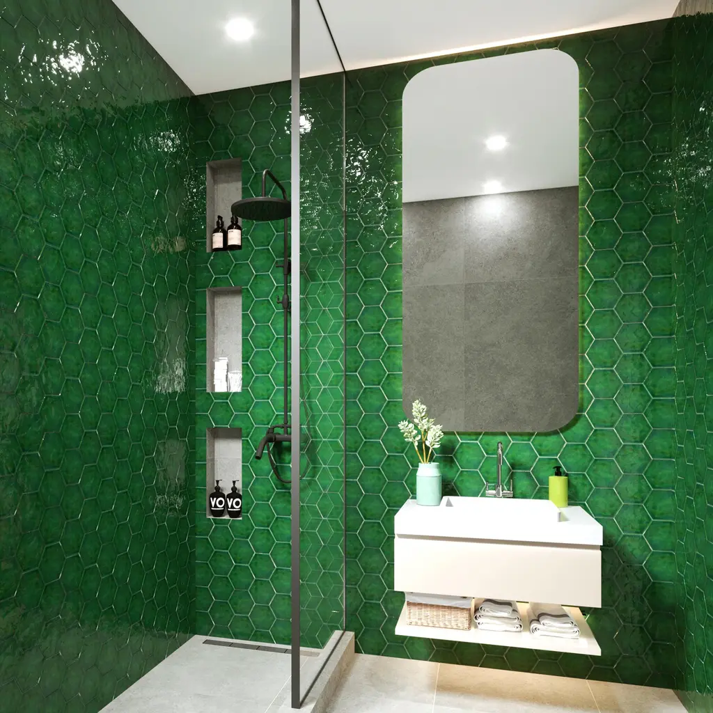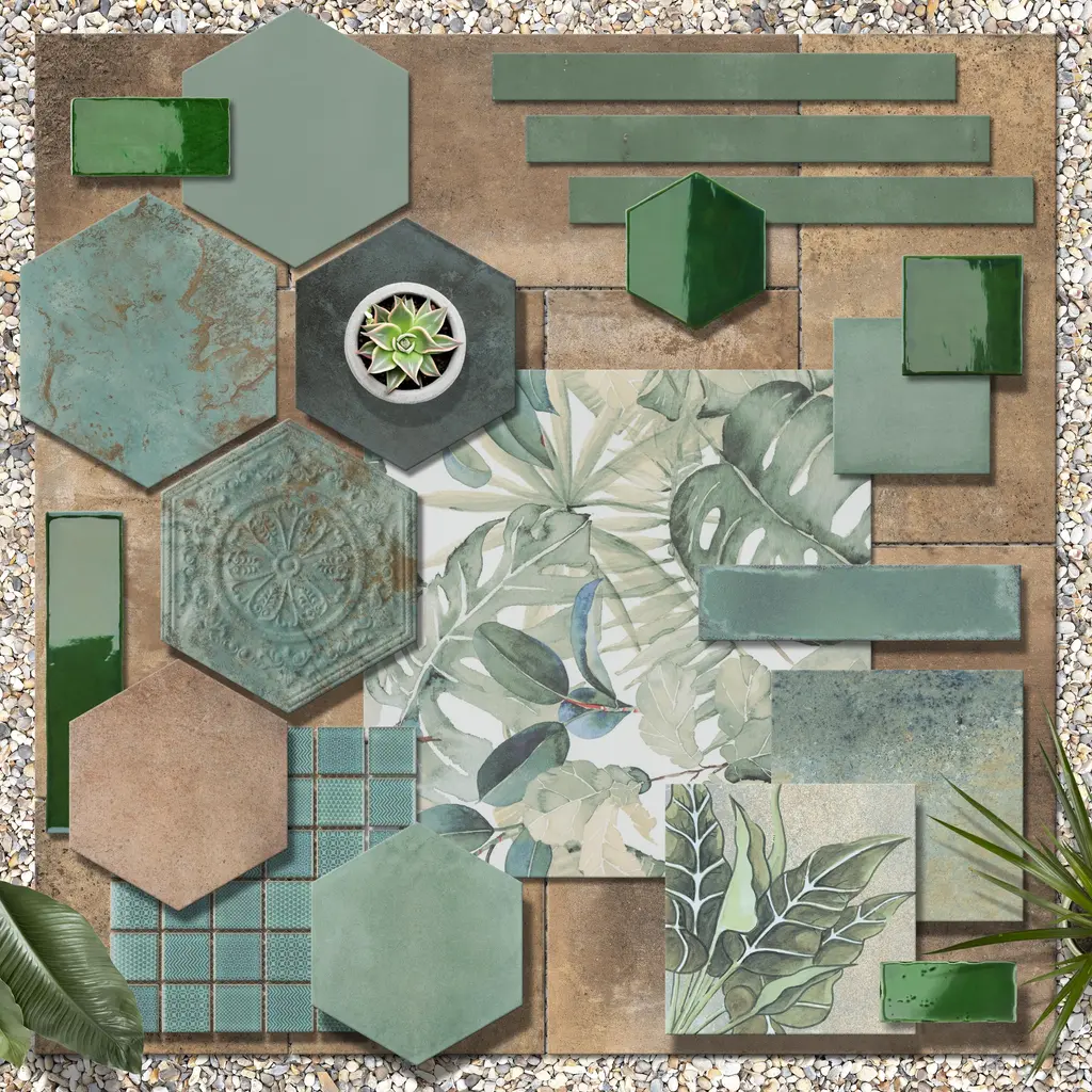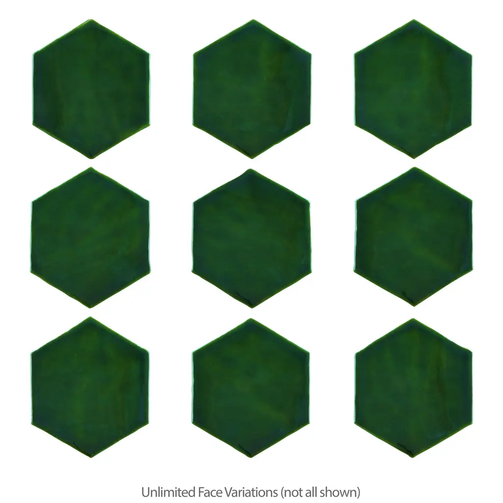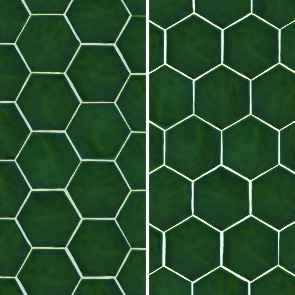 Replicating a handmade look, our Viva Hex Antic Verde Ceramic Wall Tile features a smooth, glossy finish, providing decorative appeal that adapts to a variety of stylistic contexts. Containing 4 different print variations that are randomly distributed throughout each case, this green hexagon tile offers a one-of-a-kind look. With its non-vitreous features, this tile is an ideal selection for indoor commercial and residential installations, including kitchens, bathrooms, backsplashes, showers, hallways and fireplace facades. This tile is a perfect choice on its own or paired with other products in the Viva Collection. Tile is the better choice for your space!