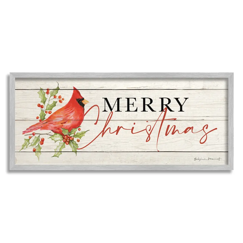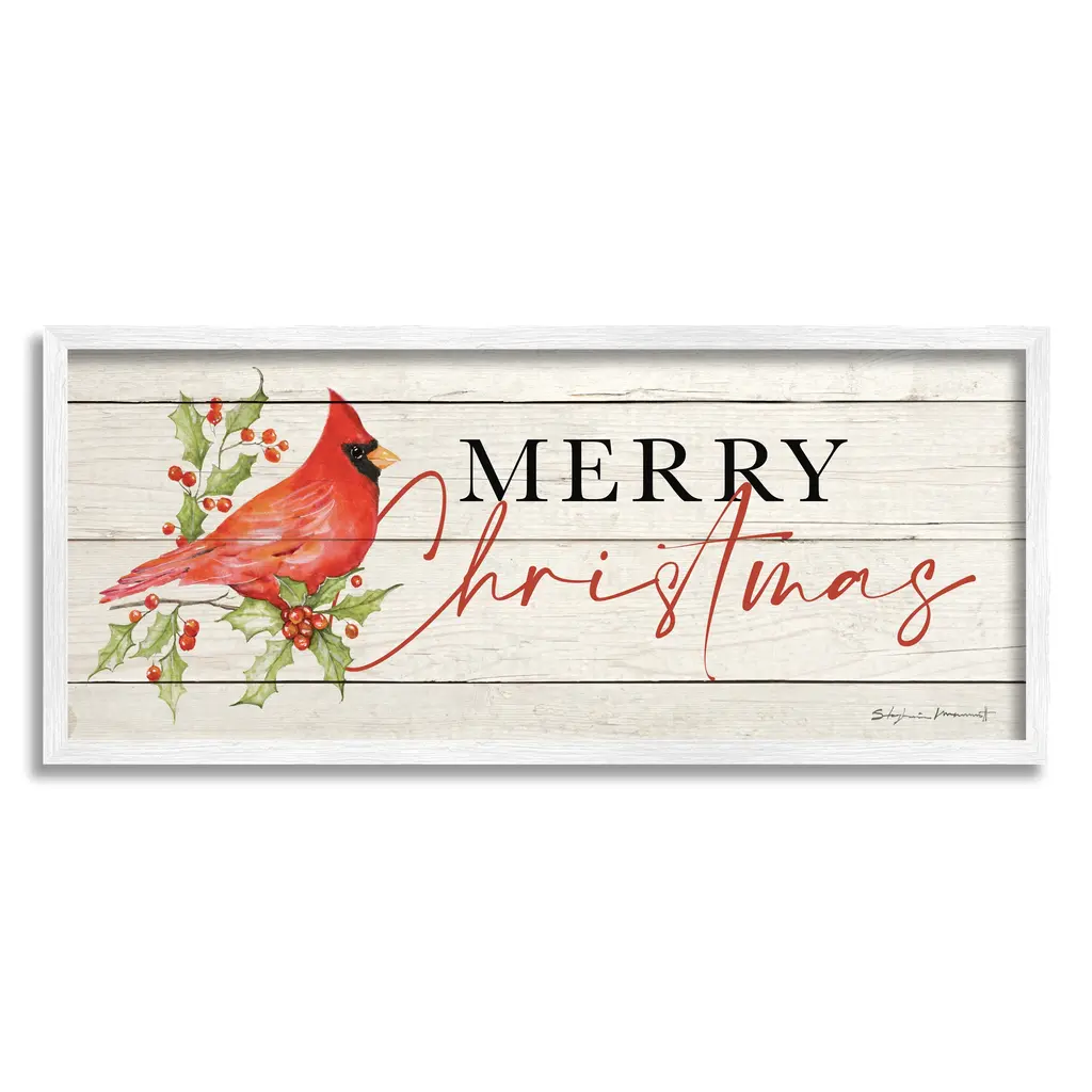 Merry Christmas Cardinal Square Hanger - H - 6.00 In. W - 6.00 In. L - 6.00 In. - White - Red