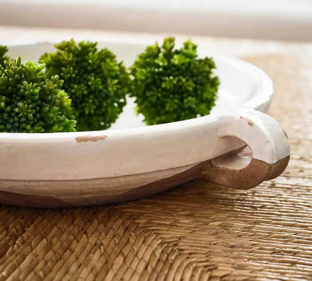 Add an artisanal moment to a console or mantel with this handcrafted, watertight vessel. Resembling ancient ceramics, it juxtaposes a glossy glaze with earthenware surfaces. Place bowls individually around your home or group them, brimming with floating flowers or artfully empty like beloved, collected objects.