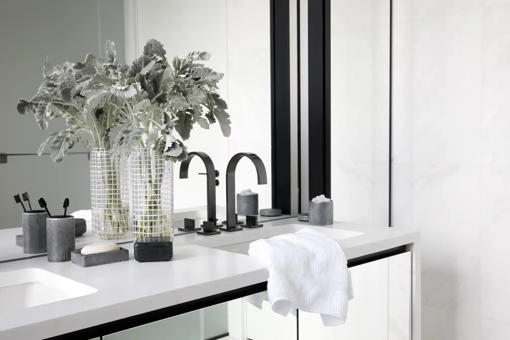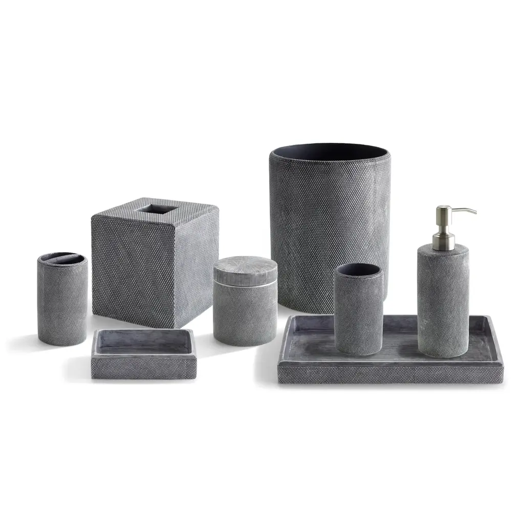 Crafted from finely sculpted resin, our Mesh bath accessories replicate perforated metal, giving each collection piece a uniquely industrial appeal that transforms the bath into a lair of luxury.
