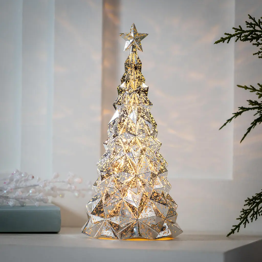 Layers upon layers of luxuriously create a full, dimensional silhouette. Each ruffle is meticulously gathered and shaped, resulting in a soft, cloud-like appearance bursting with volume and movement.. Built around a sturdy conical form, the tree maintains a perfect, full-bodied shape from base to tip.. The ruffled texture and sparkling mesh inherently evoke holiday warmth and celebration.. Effortless Impact: Requires no fluffing or assembly! Simply place it and enjoy instant, drama-free sophistication.. Measurement:6.5x6.5x20.1(Inches), Weight:0.6lbs.. Product Details: 80% METAL,20% PLASTIC