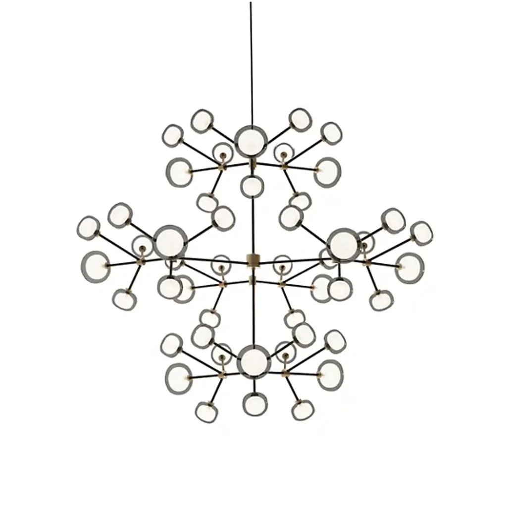 A lamp of great theatrical impact whose almost transparent structure, composed of a network of flexible cables with LED sources positioned at their intersections, conceals the complexity of the design, dematerializing it to make room for only the light, the true protagonist. Available in three different dimensions (diameter 55, 80 and 100 cm) Mesh suspension guarantees an optimal distribution of light in rooms. Features