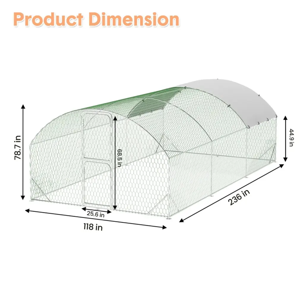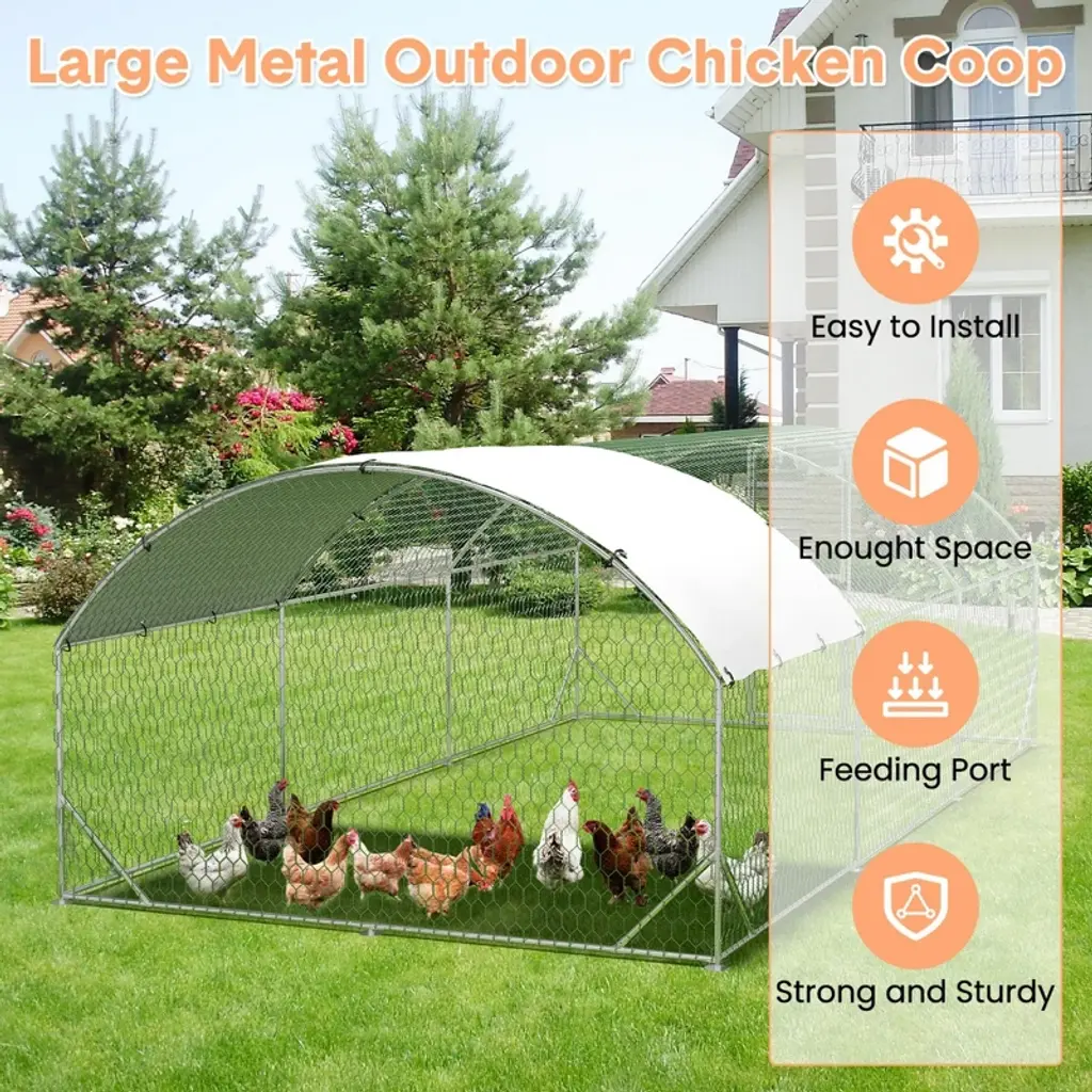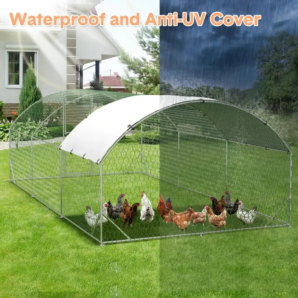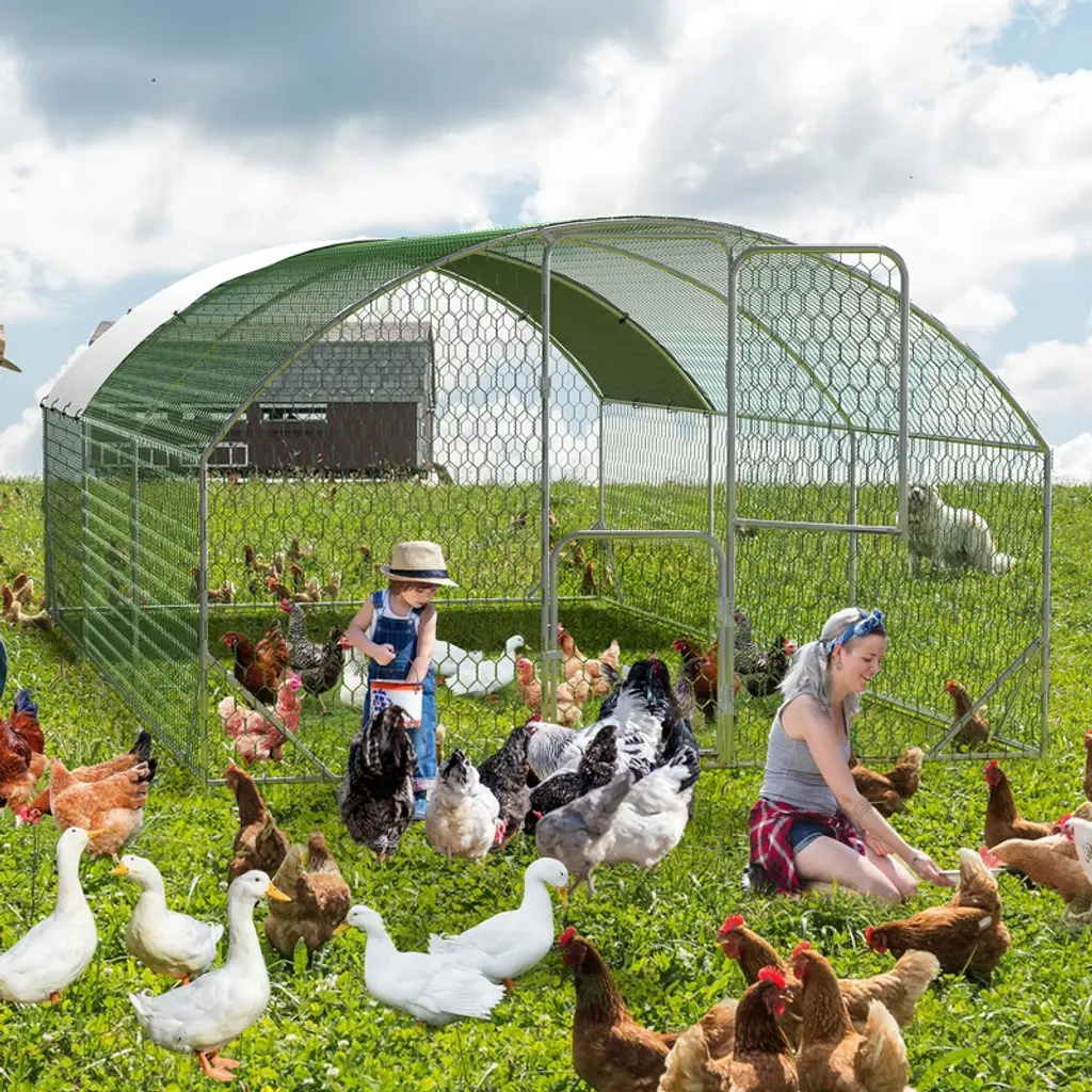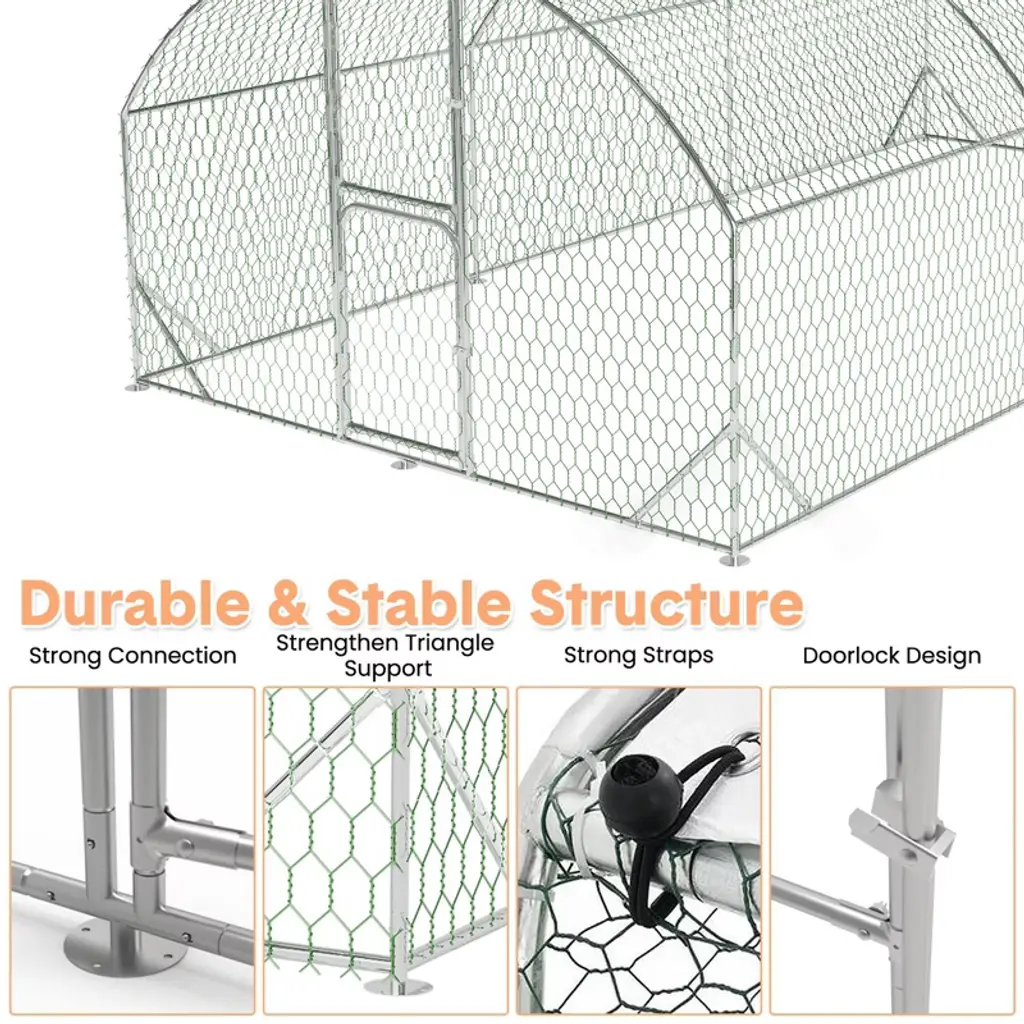 Metal Chicken Coop, Large Chicken Run With Double Door And Upgrade Tri-supporting, Chicken Runs For Yard With Cover, Outdoor Poultry Pen