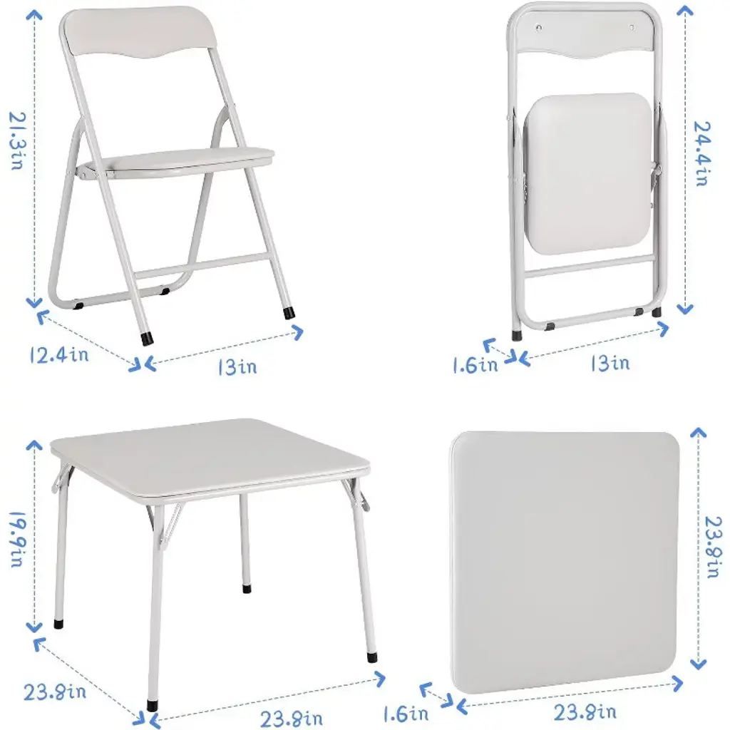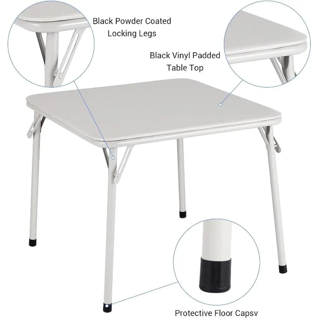 Metal Folding Chairs And Table Set Of 3, Upholstered Children's Activity Table Set, Portable Children's Activity Table And Chairs Set, White